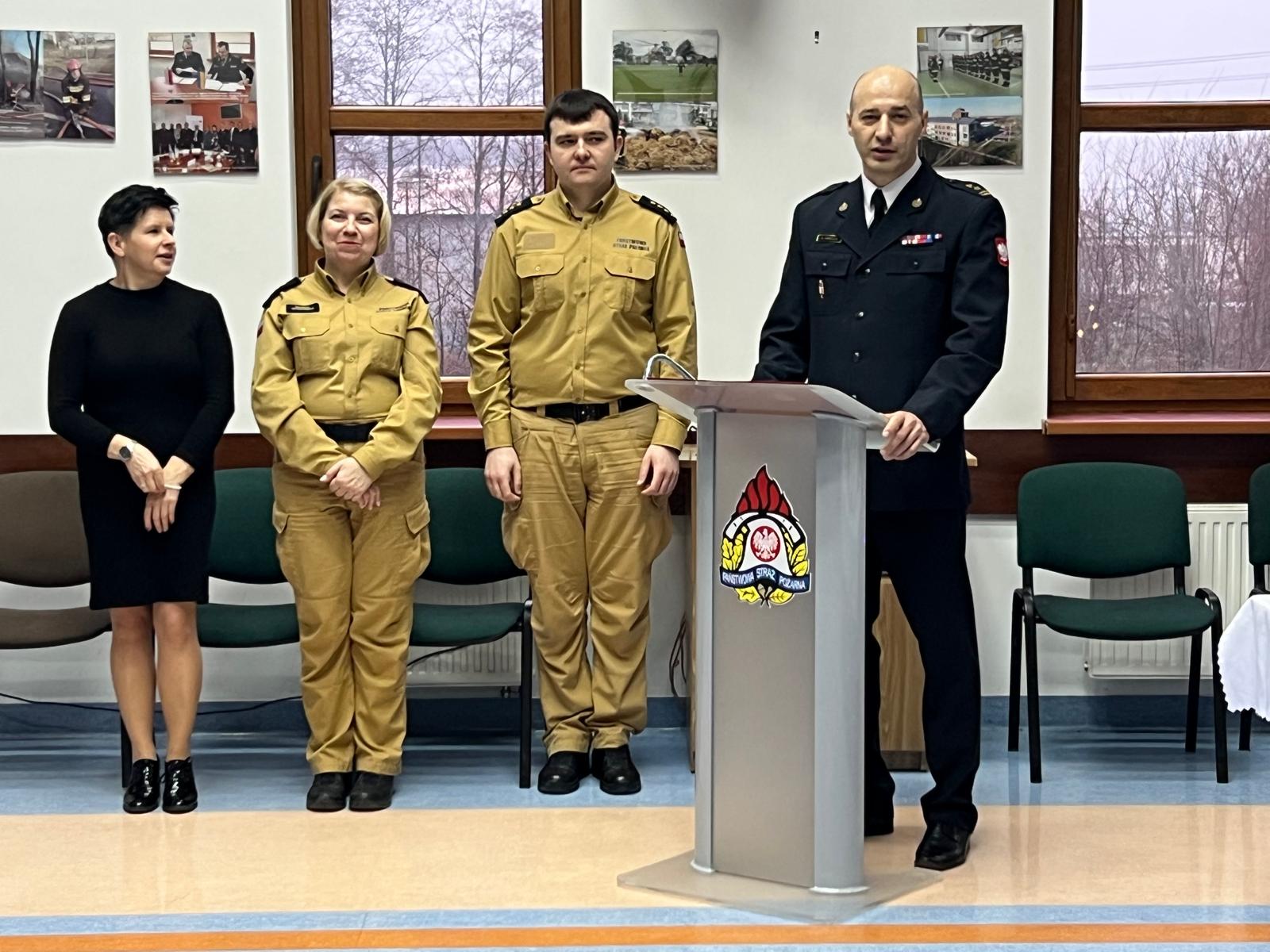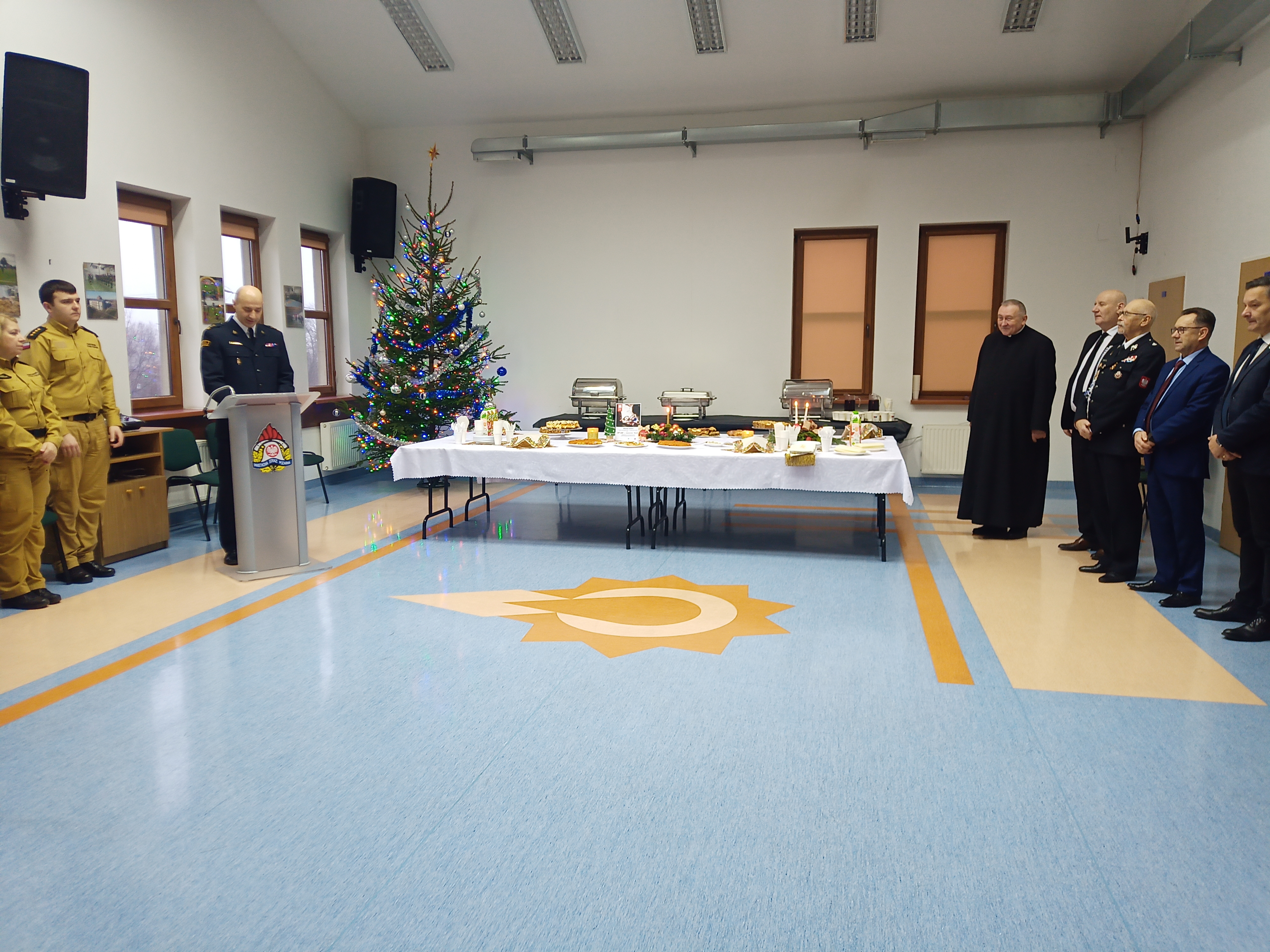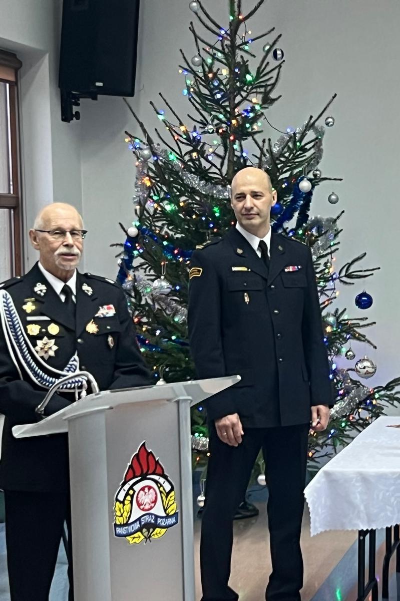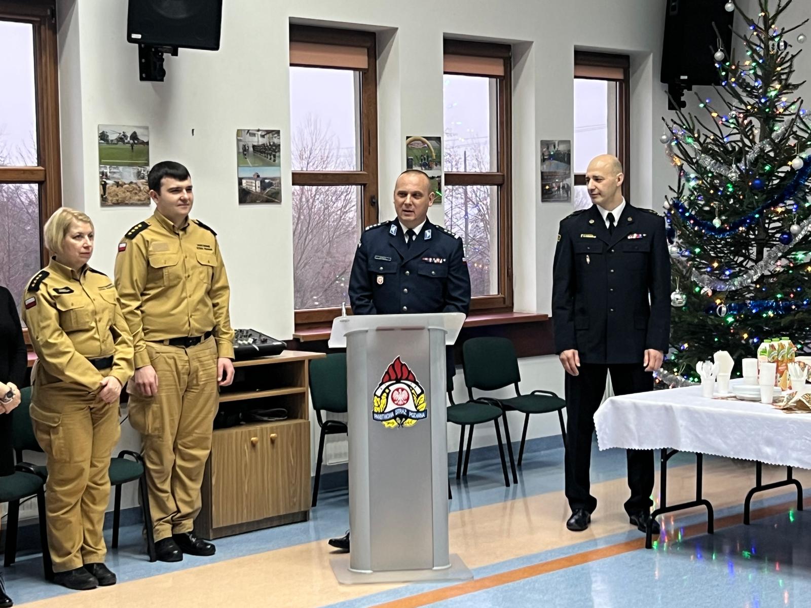 Komendant Powiatowy Państwowej Straży Pożarnej w Sokołowie Podlaskim bryg. Marcin Tomczuk w swoim wystąpieniu podziękował za zaangażowanie w pracę w ciągu mijającego roku, a także przekazał wszystkim funkcjonariuszom i pracownikom cywilnym oraz ich rodzinom życzenia bożonarodzeniowe i noworoczne. Nie zabrakło także życzeń świątecznych i noworocznych od zaproszonych gości. Błogosławieństwo boże przekazał wszystkim obecnym na spotkaniu kapelan powiatowy sokołowskich strażaków ks. kan. Dariusz Kujawa, po czym nastąpiło wspólne odśpiewanie kolęd i przełamanie się poświęconym opłatkiem.
