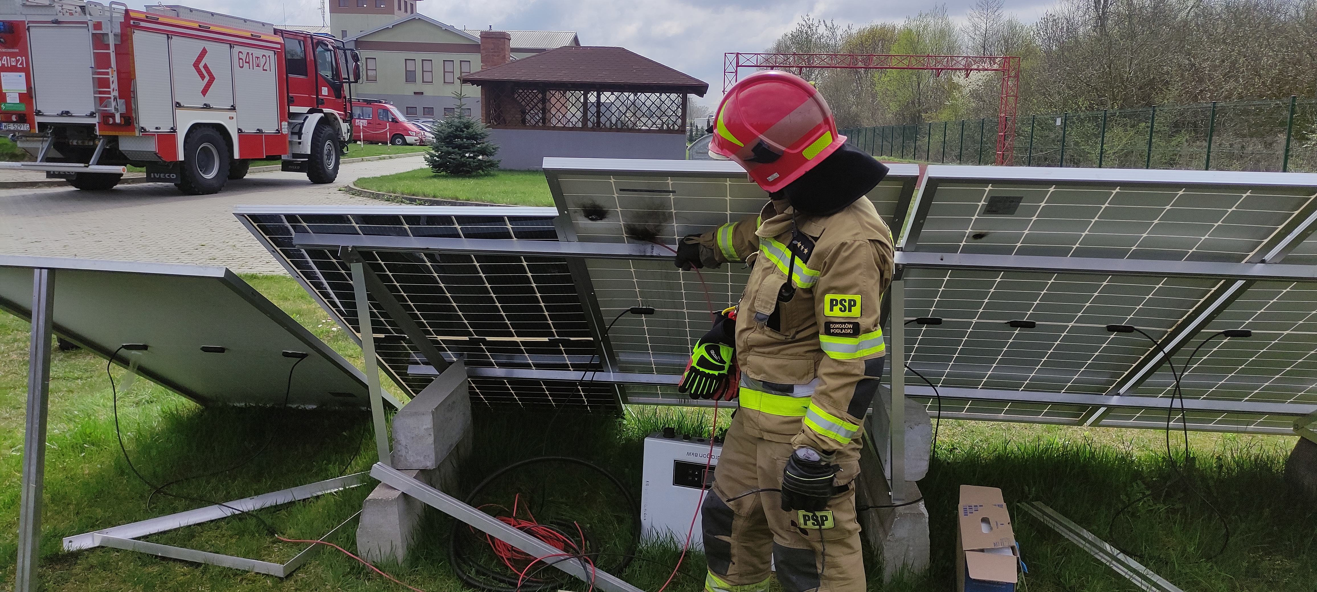 Na zakończenie szkoleń odbyły się pokazy praktycznego funkcjonowania instalacji fotowoltaicznej i związanych z tym zagrożeń oraz działań ratowniczo-gaśniczych w obrębie tych instalacji.