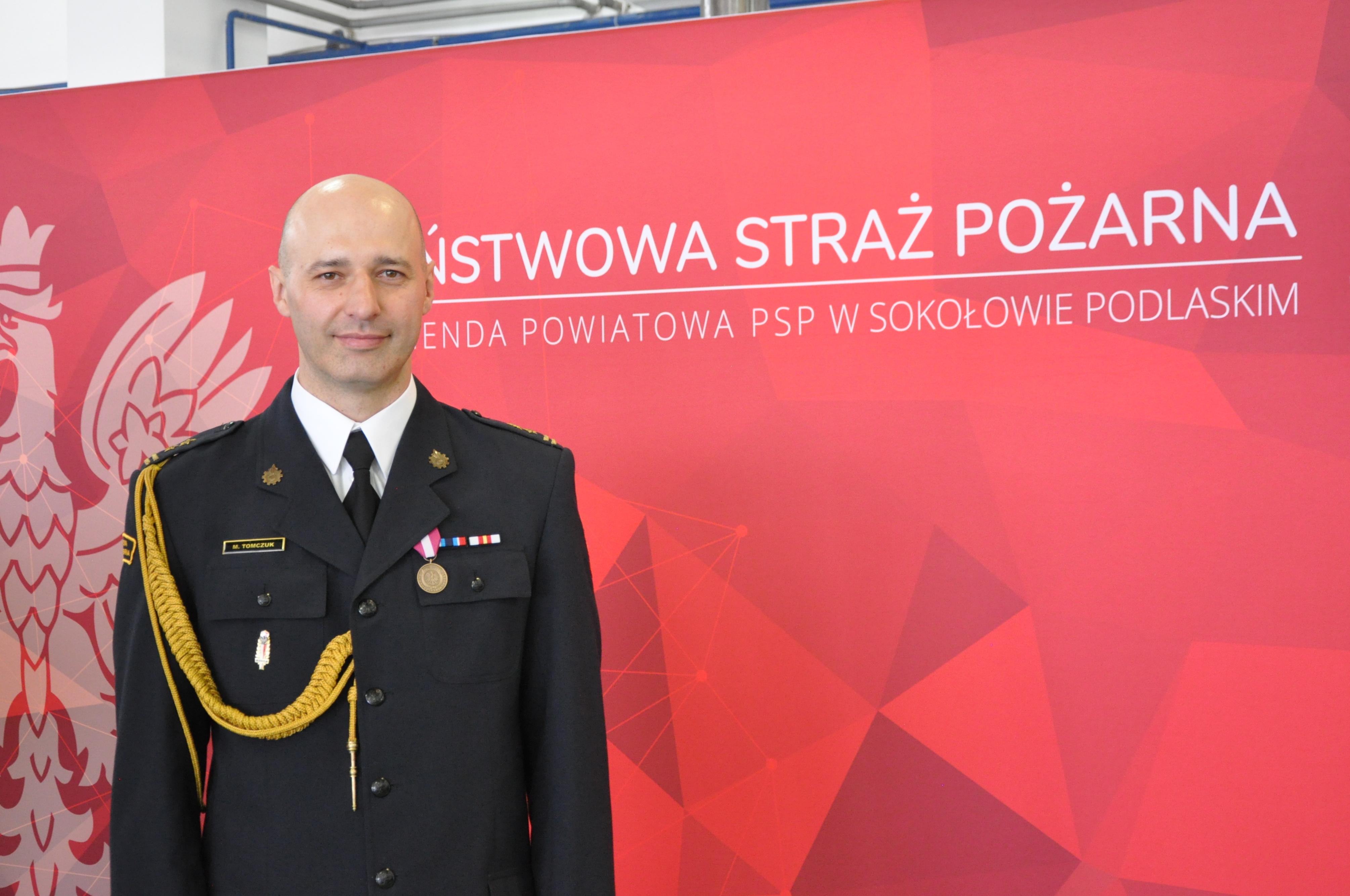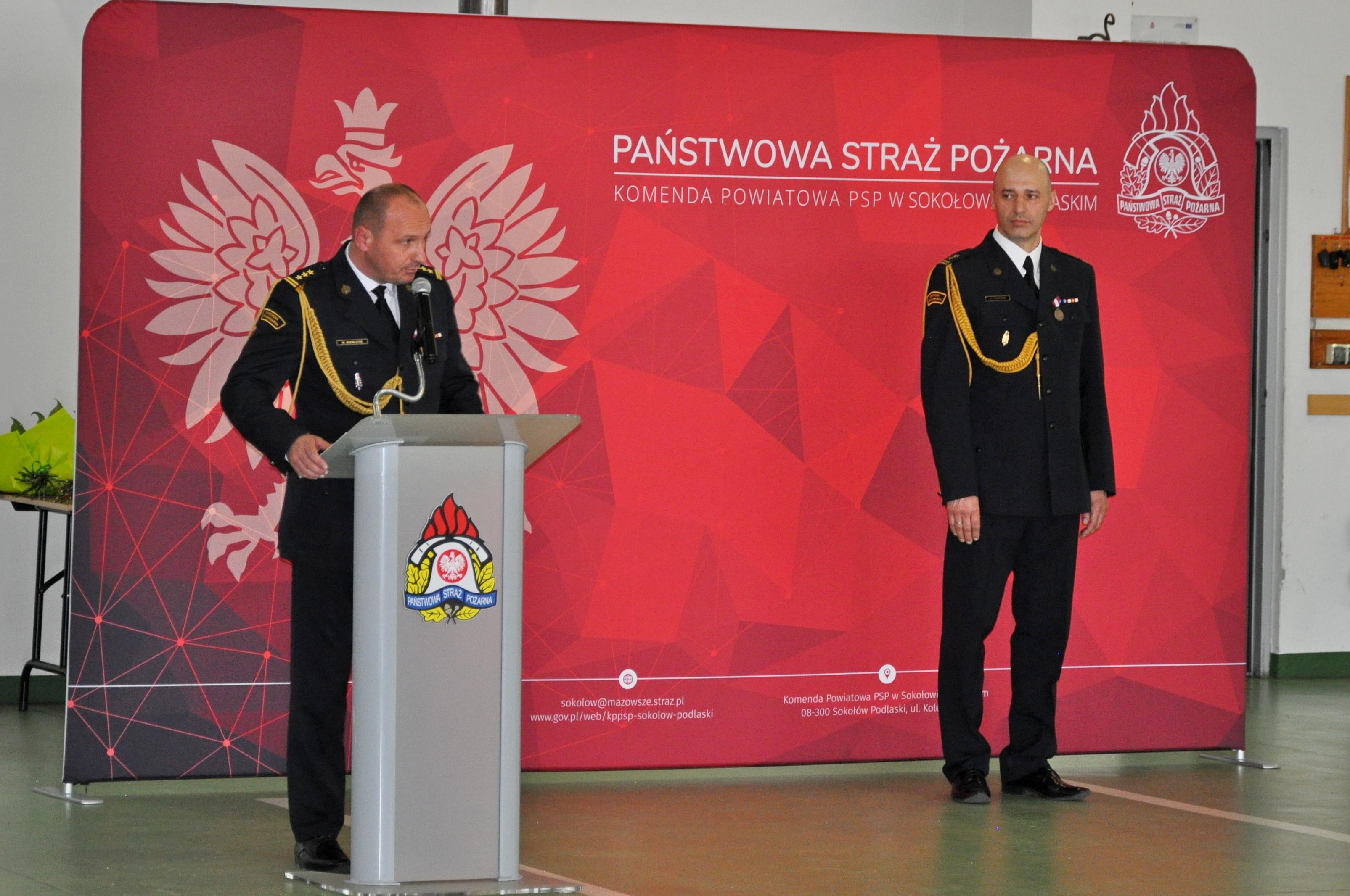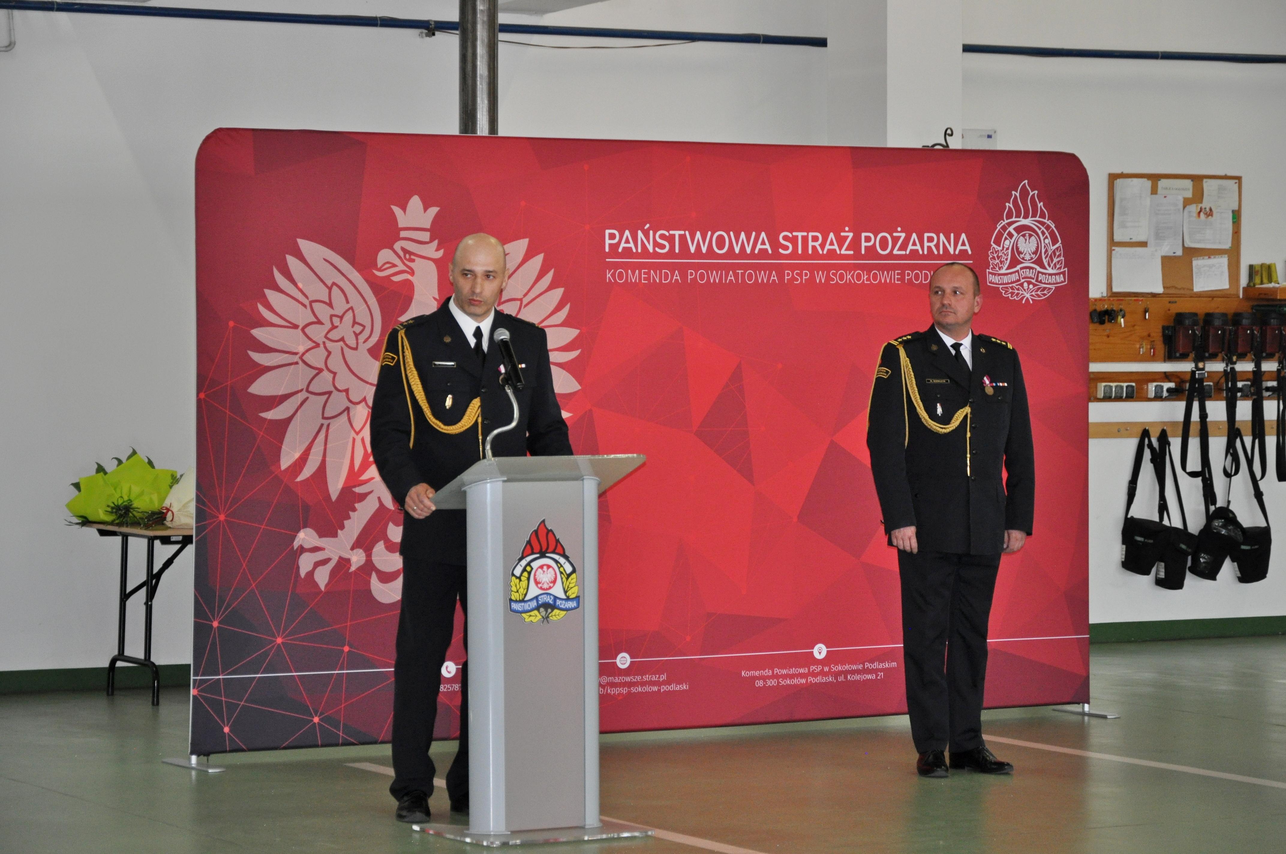 Kulminacyjnym punktem uroczystości było odczytanie aktu powołania bryg. Marcina Tomczuka z dniem 13 maja 2024 roku na stanowisko Komendanta Powiatowego Państwowej Straży Pożarnej w Sokołowie Podlaskim. Następnie nowo powołany Komendant symbolicznie przywitał się ze sztandarem Komendy Powiatowej PSP w Sokołowie Podlaskim i złożył meldunek o przyjęciu obowiązków.