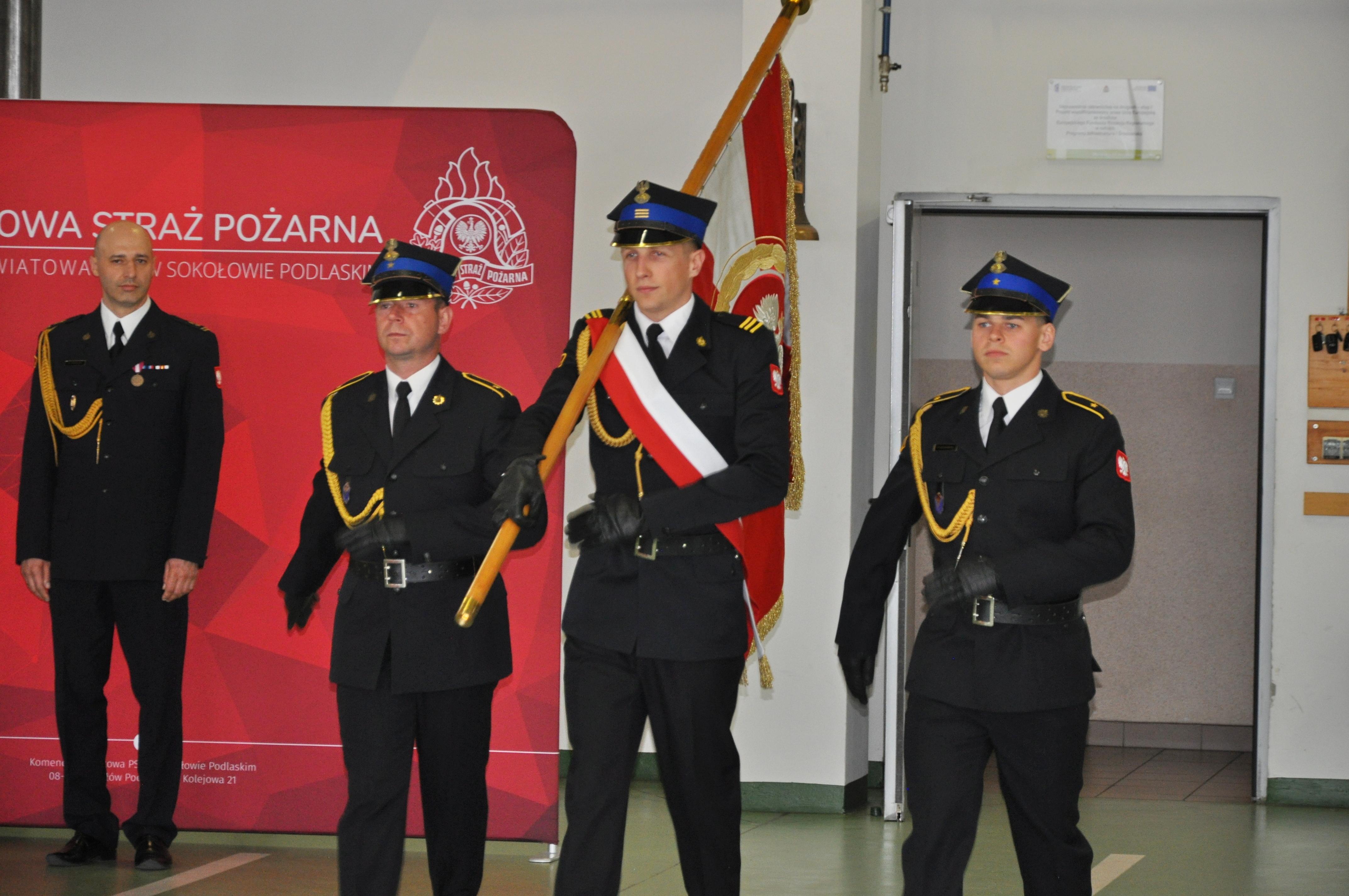 Zbiórka rozpoczęła się złożeniem meldunku st. bryg. mgr inż. Maciejowi Bieńczykowi - Zastępcy Mazowieckiego Komendanta Wojewódzkiego Państwowej Straży Pożarnej. Następnie wprowadzony został poczet sztandarowy Komendy Powiatowej Państwowej Straży Pożarnej w Sokołowie Podlaskim oraz odśpiewano Hymn Państwowy.