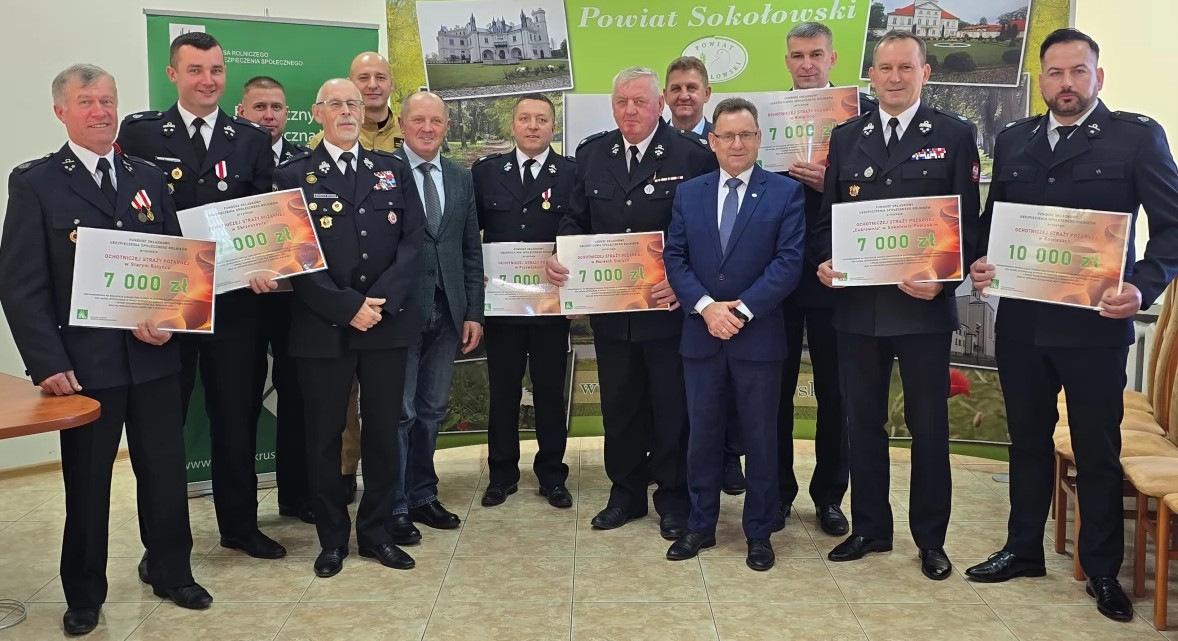 Pieniądze otrzymali przedstawiciele 8 jednostek z terenu powiatu sokołowskiego od kwoty 7 tys. zł do kwoty 10 tys. złotych – OSP Kiełpiniec, OSP Kowiesy, OSP Mursy Stare, OSP Przywózki, OSP Skrzeszew, OSP Cukrownia w Sokołowie Podlaskim, OSP Stary Ratyniec, OSP Wólka Okrąglik.