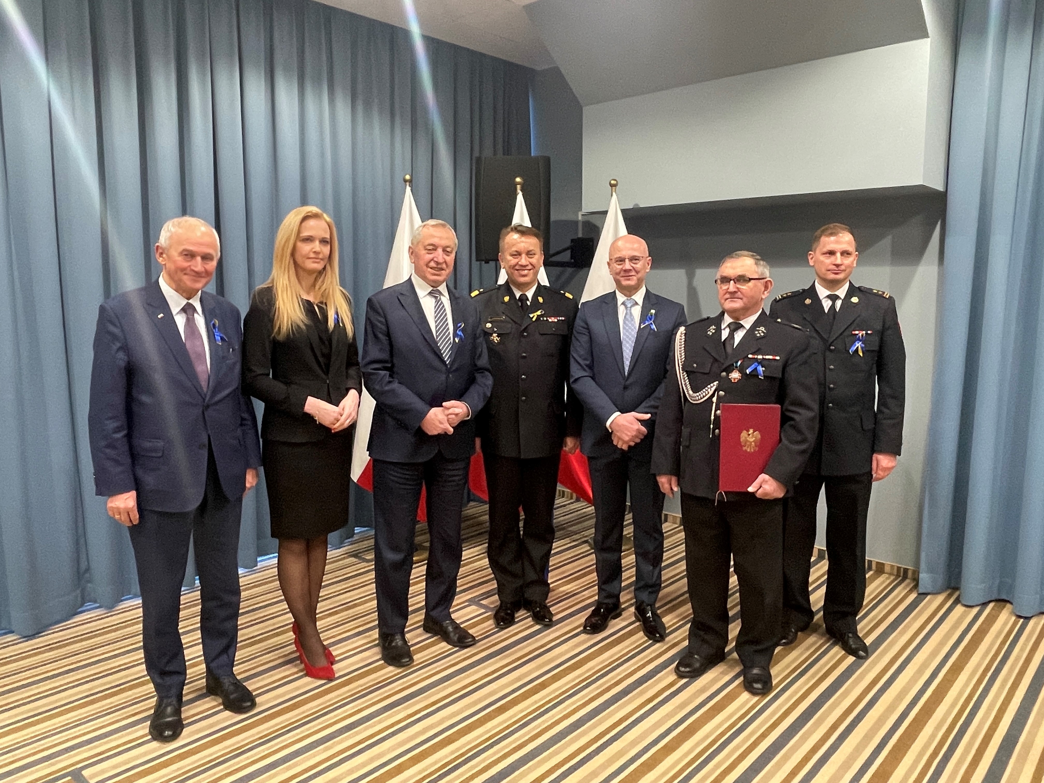 Mazowiecki Komendant Wojewódzki PSP nadbryg. Jarosław Nowosielski wraz z: