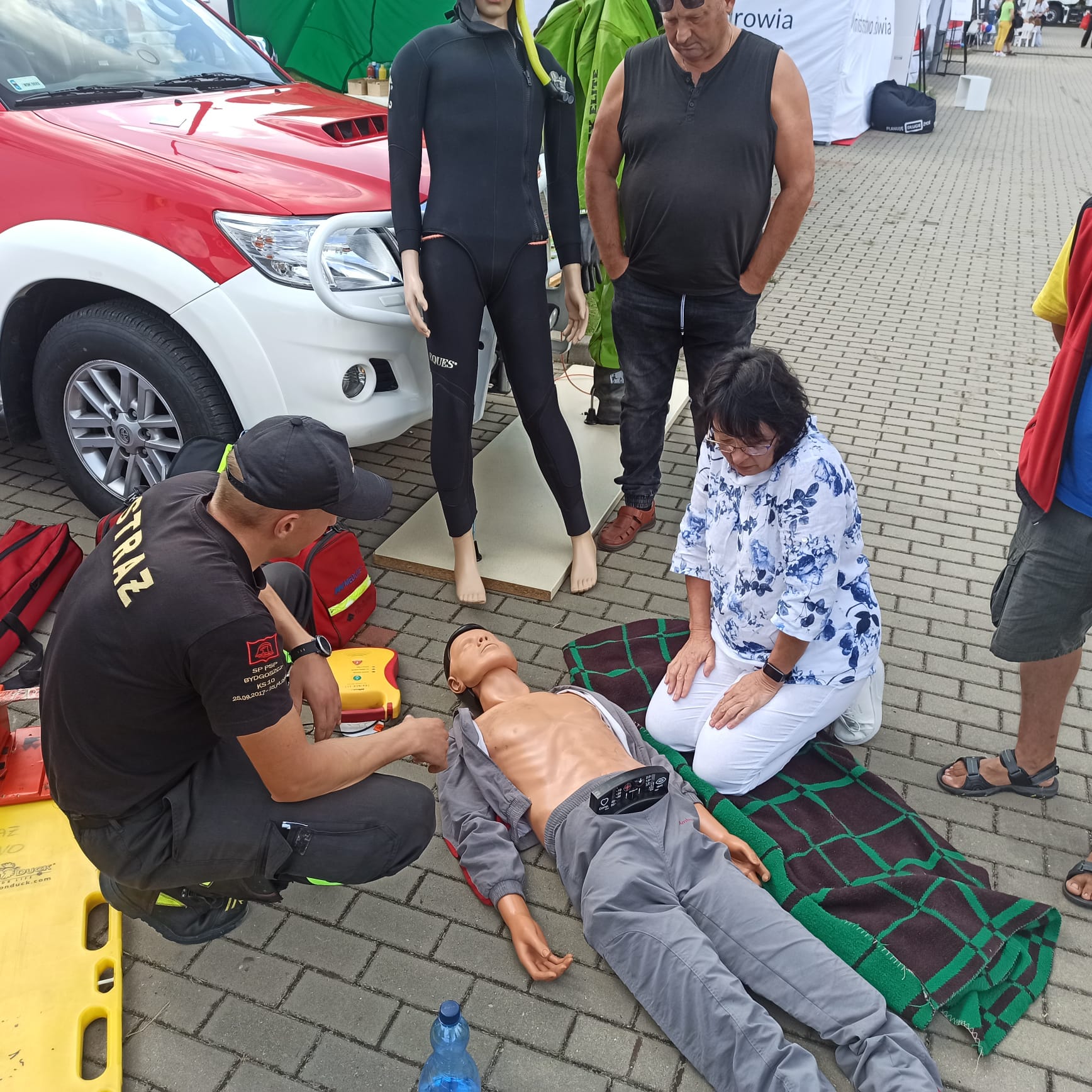 Do akcji przyłączyli się też sokołowscy strażacy Państwowej Straży Pożarnej promując zasady postępowania w przypadku zagrożenia oraz udzielania pierwszej pomocy.