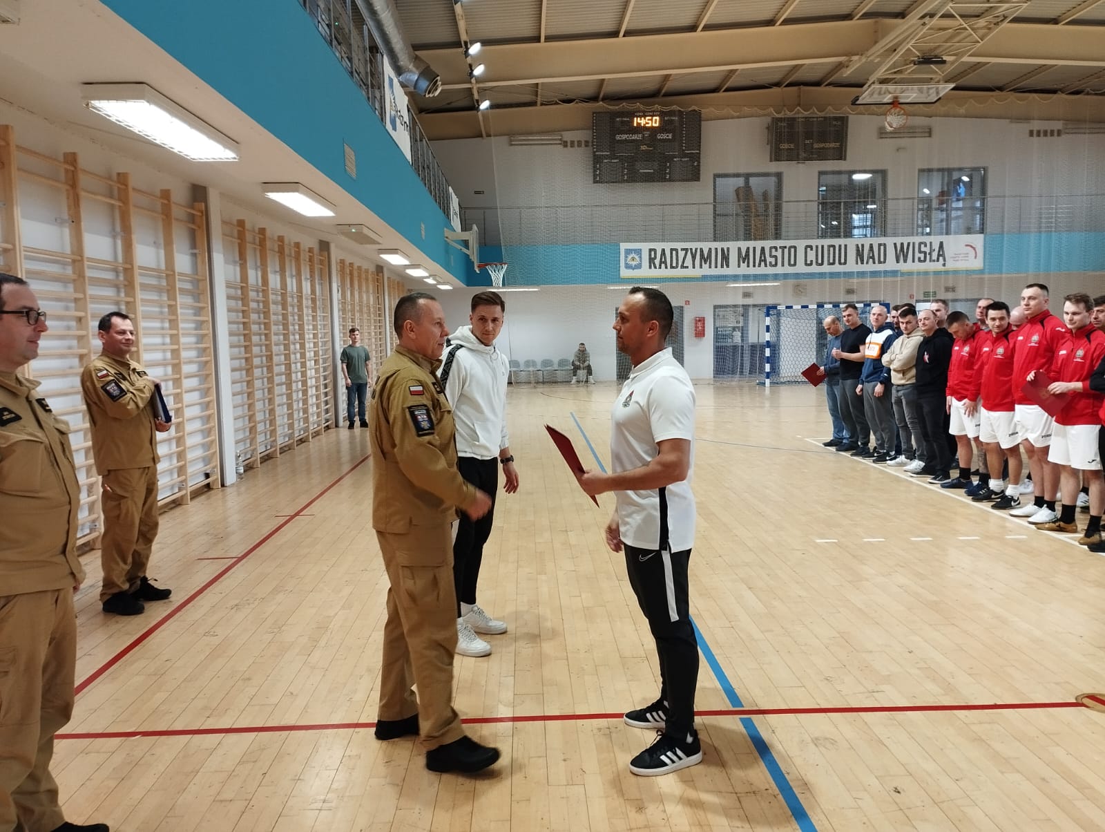 Zwycięska drużyna z Sokołowa Podlaskiego weźmie udział w finałach Mistrzostw Województwa Mazowieckiego Strażaków PSP w Halowej Piłce Nożnej, które odbędą się 22 marca 2024 roku w Węgrowie.