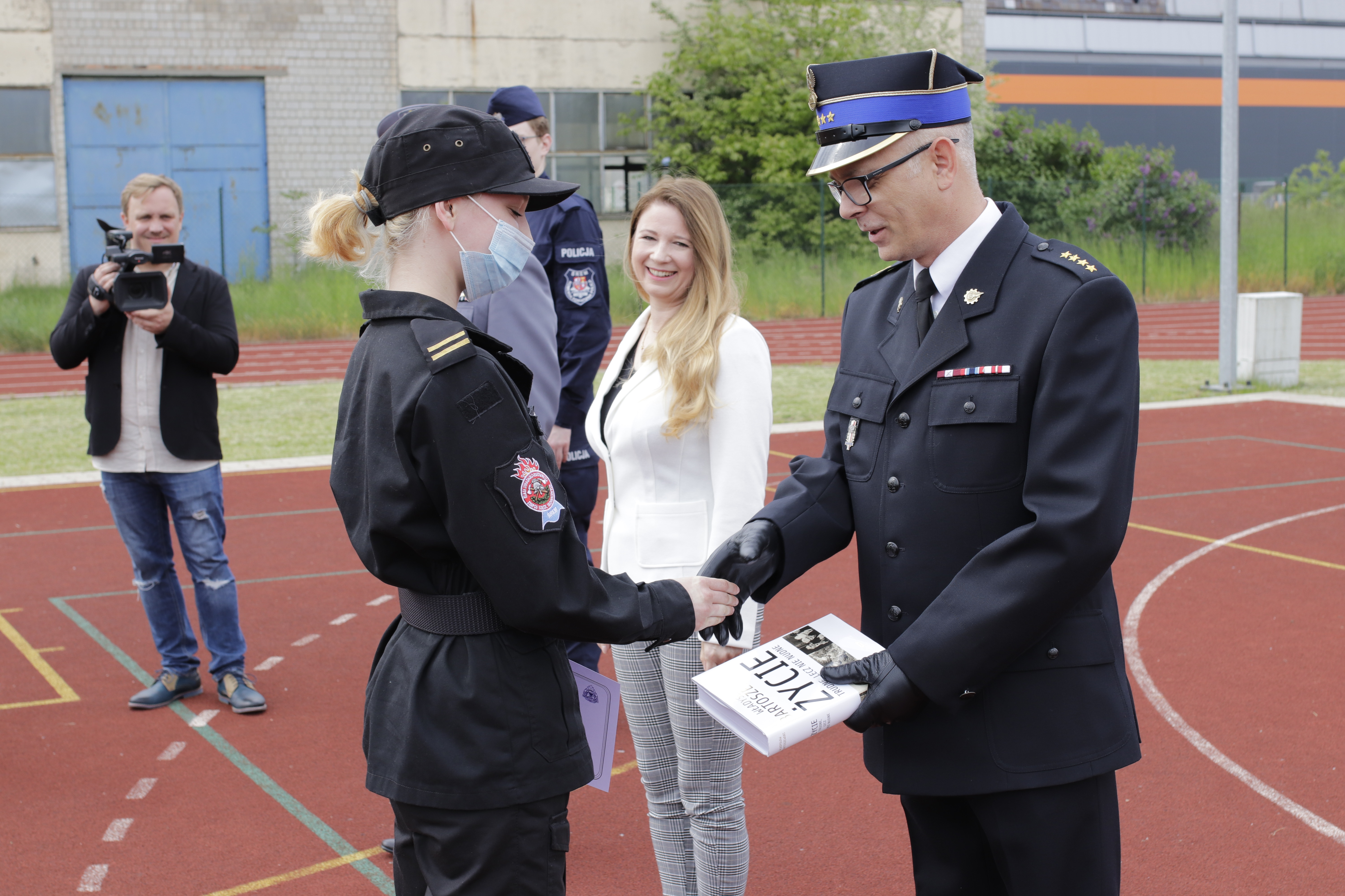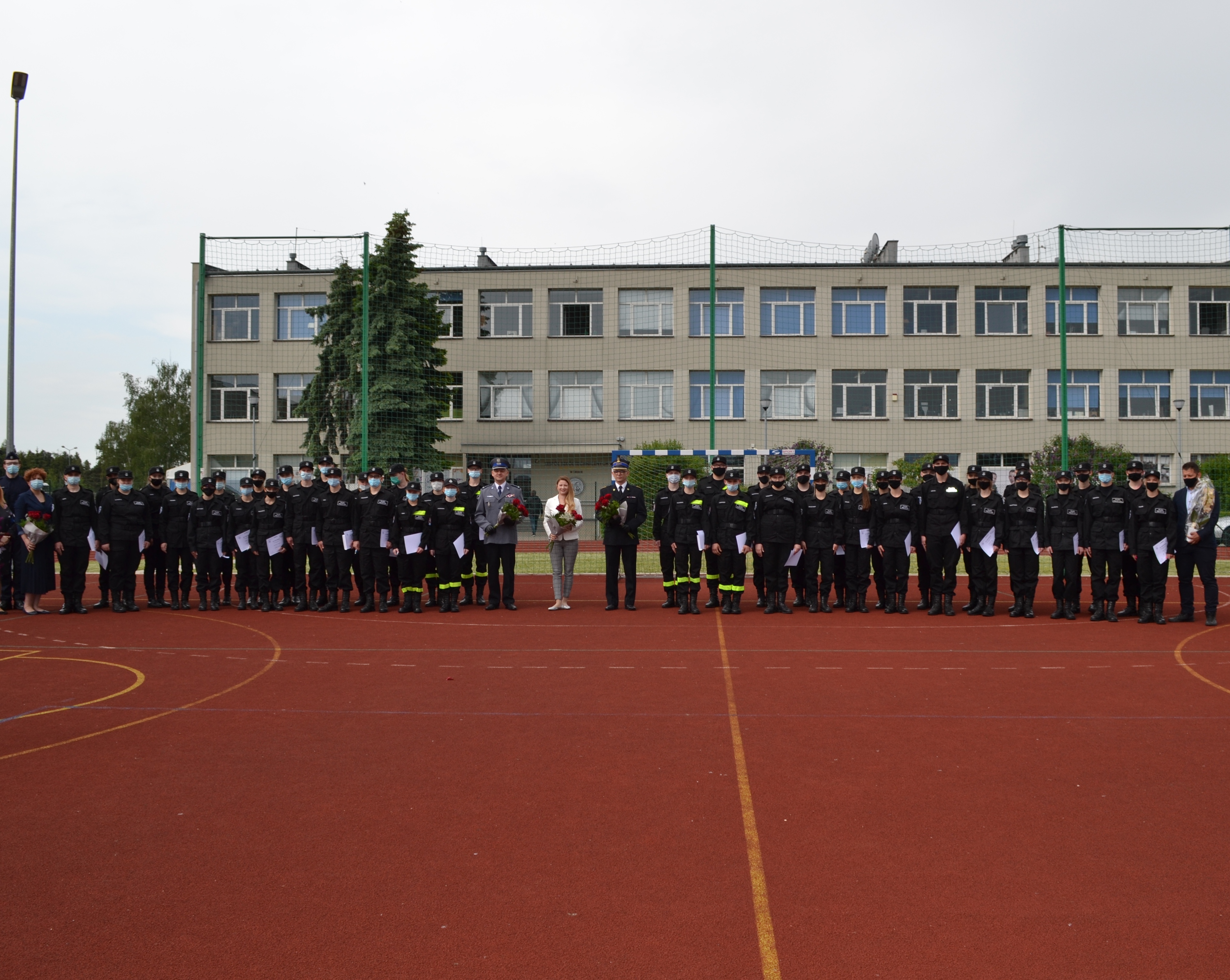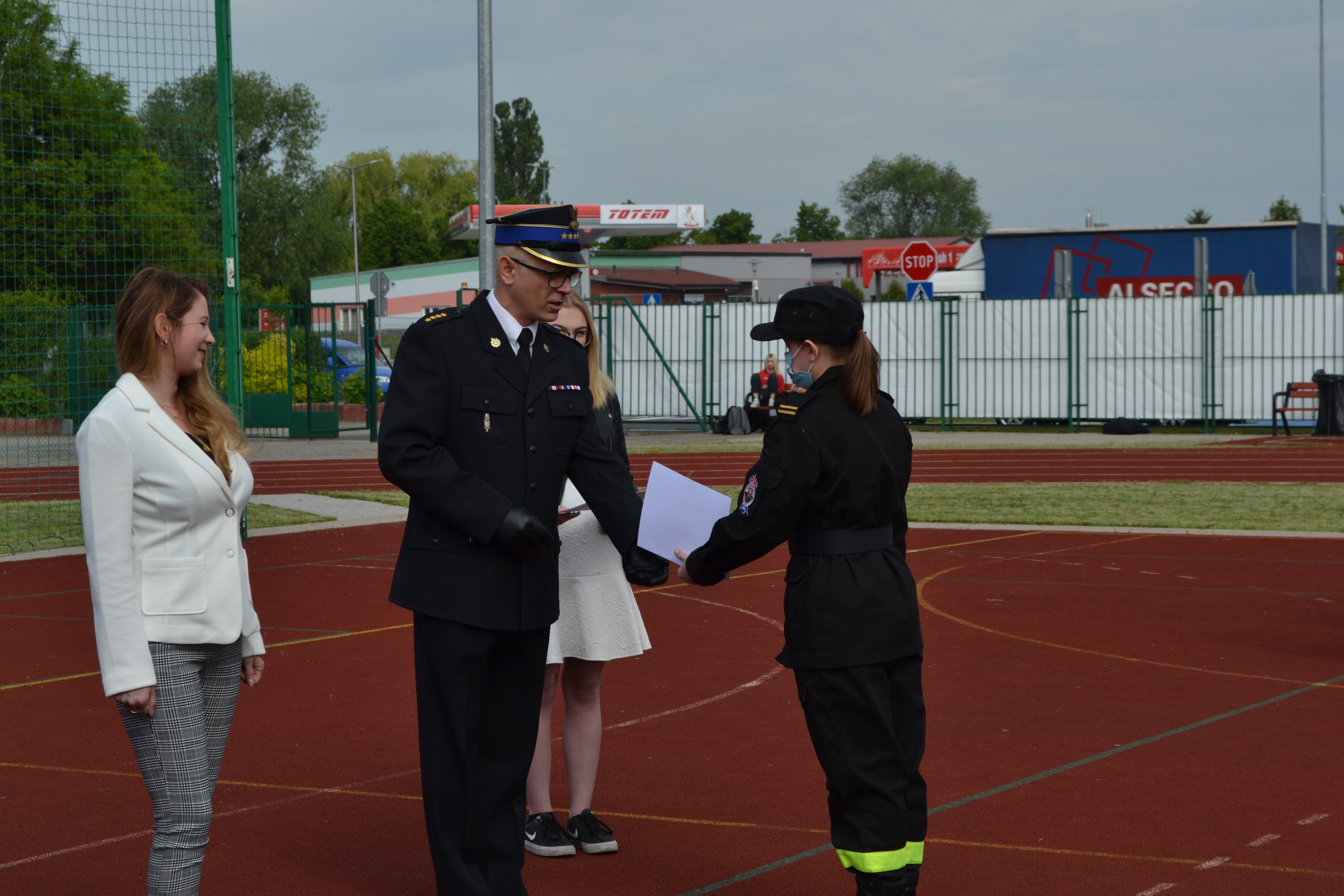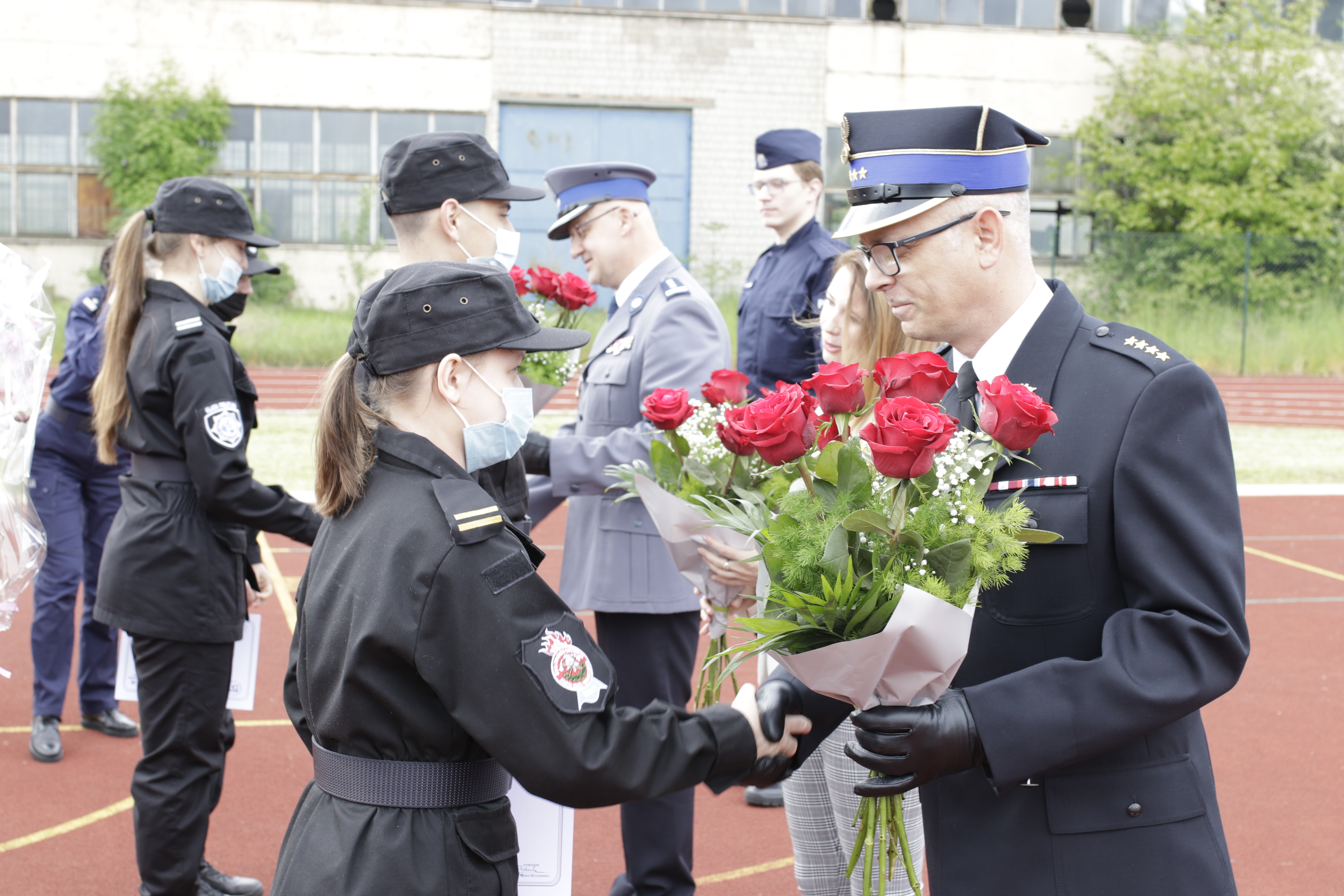 W uroczystym apelu udział wzięli Dyrektor Szkoły Pani Maria Bychawska, Komendant Powiatowy Państwowej Straży Pożarnej w Śremie st.kpt. Tomasz Kierzek, Komendant Powiatowy Policji w Śremie insp. Sławomir Jądrzak oraz awansowani w korpusie kadetów uczniowie z wychowawcami klas. W klasie strażacko-ratowniczej awans otrzymało 9 uczniów z czego na stopień starszego kadeta 7 uczniów a 2 uczniów na stopień kadeta. Aktów wręczenia w klasie o profilu strażacko – ratowniczym dokonał Komendant Powiatowy PSP w Śremie st.kpt. Tomasz Kierzek, zaś w klasach o profilu policyjnym Komendant Powiatowy Policji w Śremie insp. Sławomir Jądrzak. Za dobre wyniki w nauce, zaangażowanie wyróżnieni uczniowie otrzymali nagrody. Następnie uczniowie wręczyli kwiaty Komendantom Powiatowym oraz Pani Dyrektor Szkoły dziękując w imieniu wszystkich uczniów za cenne nauki, wiedzę oraz wsparcie jakie otrzymują w murach szkoły. Wszystkim uczniom klasy o profilu strażacko – ratowniczym oraz pozostałym awansowanym pogratulował Komendant Powiatowy Państwowej Straży Pożarnej w Śremie, Komendant Powiatowy Policji w Śremie oraz Dyrektor Szkoły Pani Maria Bychawska życząc dalszych sukcesów w nauce i kolejnych awansów oraz samych pomyślności.