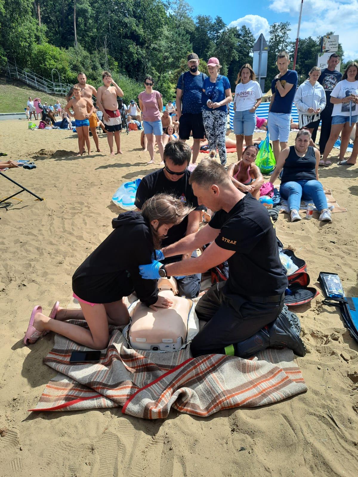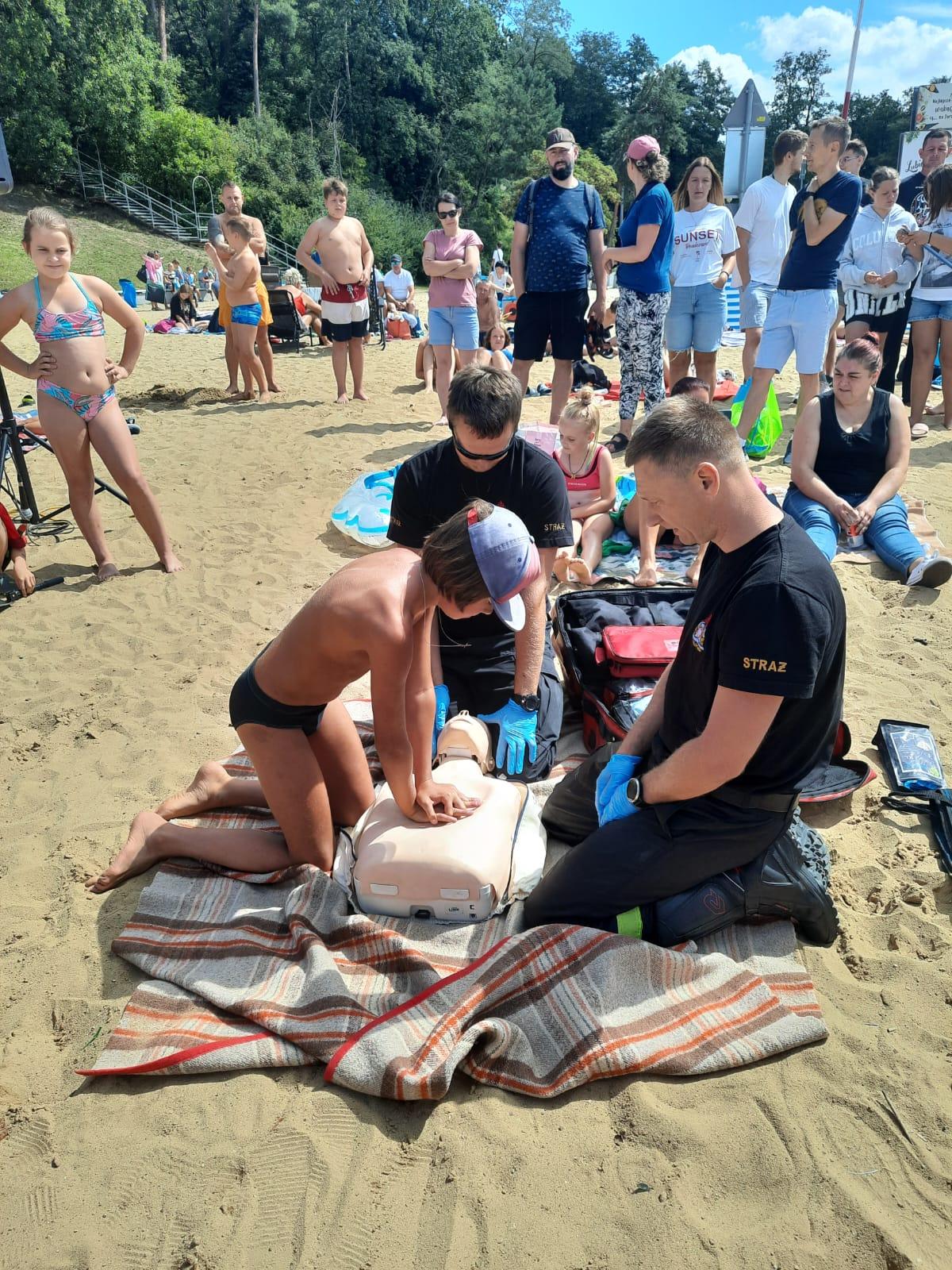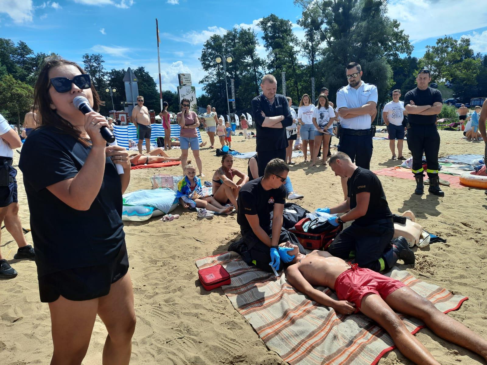 W ramach akcji „Bezpieczne wakacje” odbyły się pokazy z zakresu ratownictwa wodnego. Ponadto dzieci wraz z towarzyszącymi im opiekunami miały możliwość zapoznania się ze sprzętem, z którego na co dzień korzystają strażacy czy policjanci. Strażacy z naszej komendy zaprezentowali i wyjaśnili na czym polega udzielenie kwalifikowanej pierwszej pomocy przy podtopieniach, zaprezentowali jak prawidłowo przeprowadzić resuscytację krążeniowo-oddechową. Jak zawsze każdy chętny mógł zdobytą wiedze wykorzystać w praktyce na miejscu na specjalnie przystosowanym do tego celu stanowisku z manekinem ćwiczebnym.