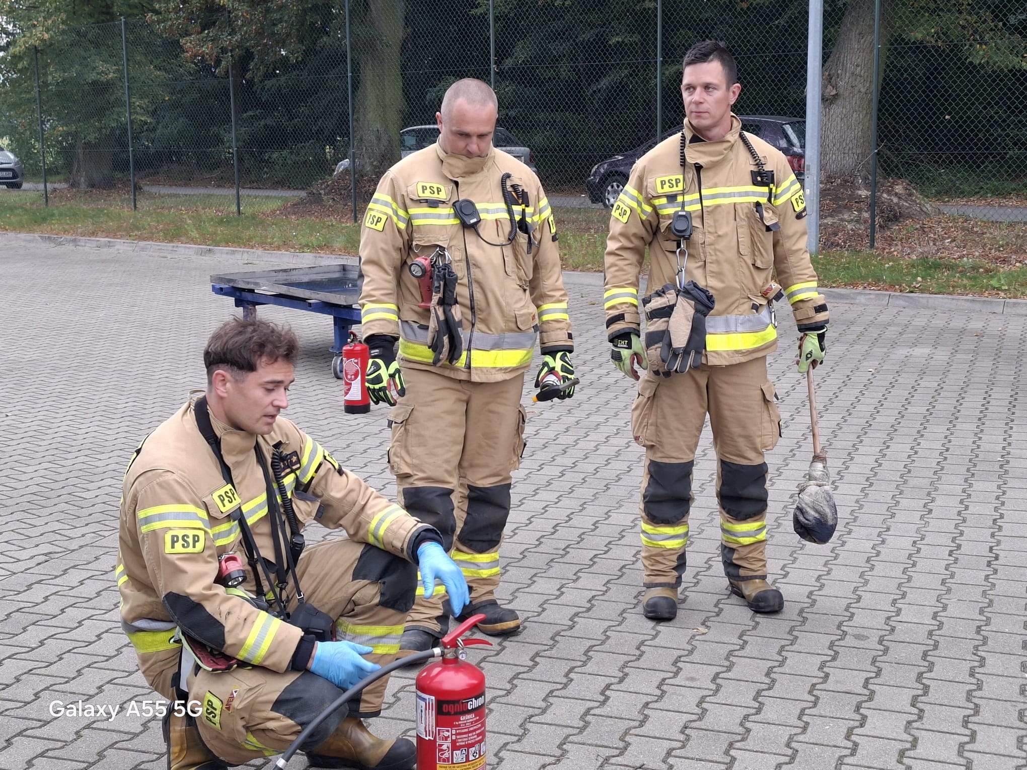 Po zakończeniu ćwiczeń przeprowadzono krótkie podsumowanie oraz szkolenie z użycia podręcznego sprzętu gaśniczego tj. gaśnicy proszkowej, a także pokaz użycia defibrylatora. W działaniach udział brały GBARt, GCBARt, SH24 JRG Śrem.