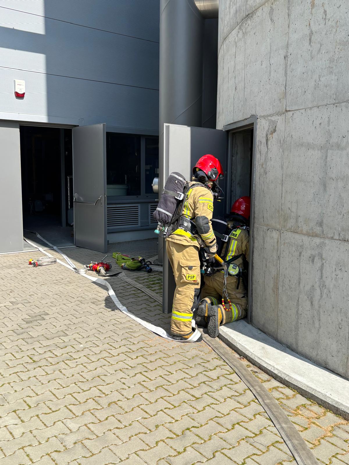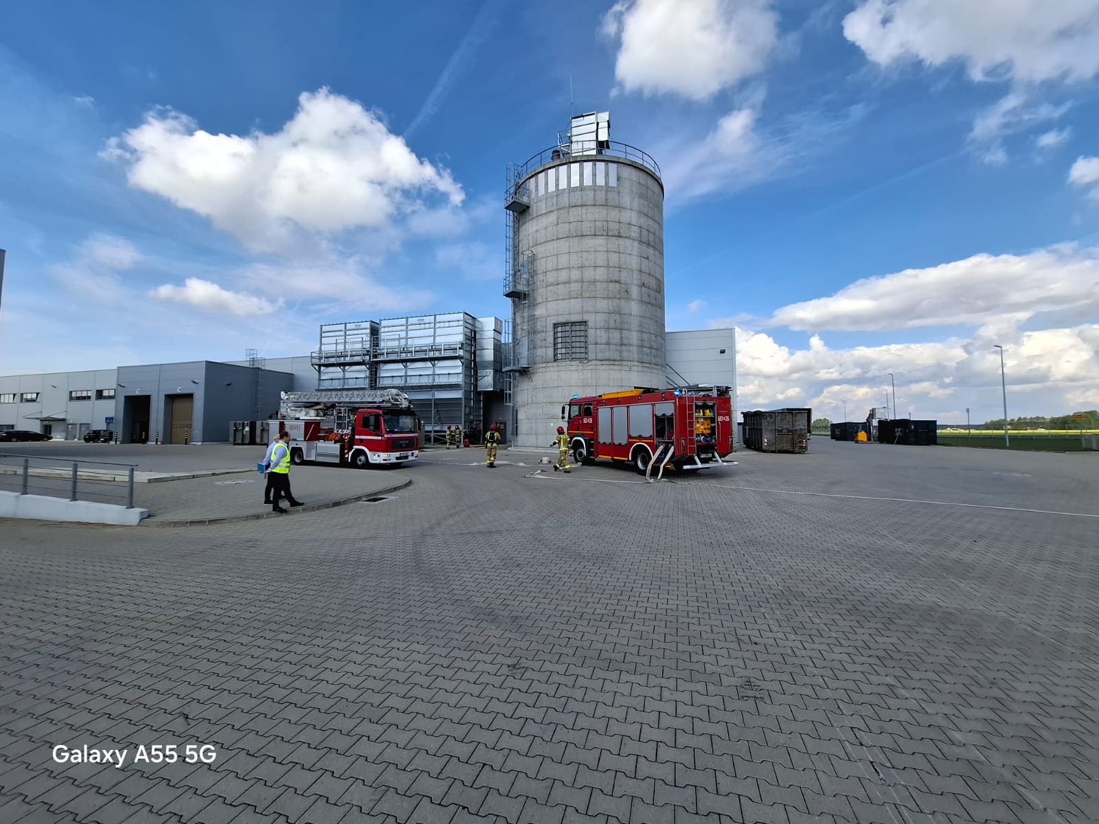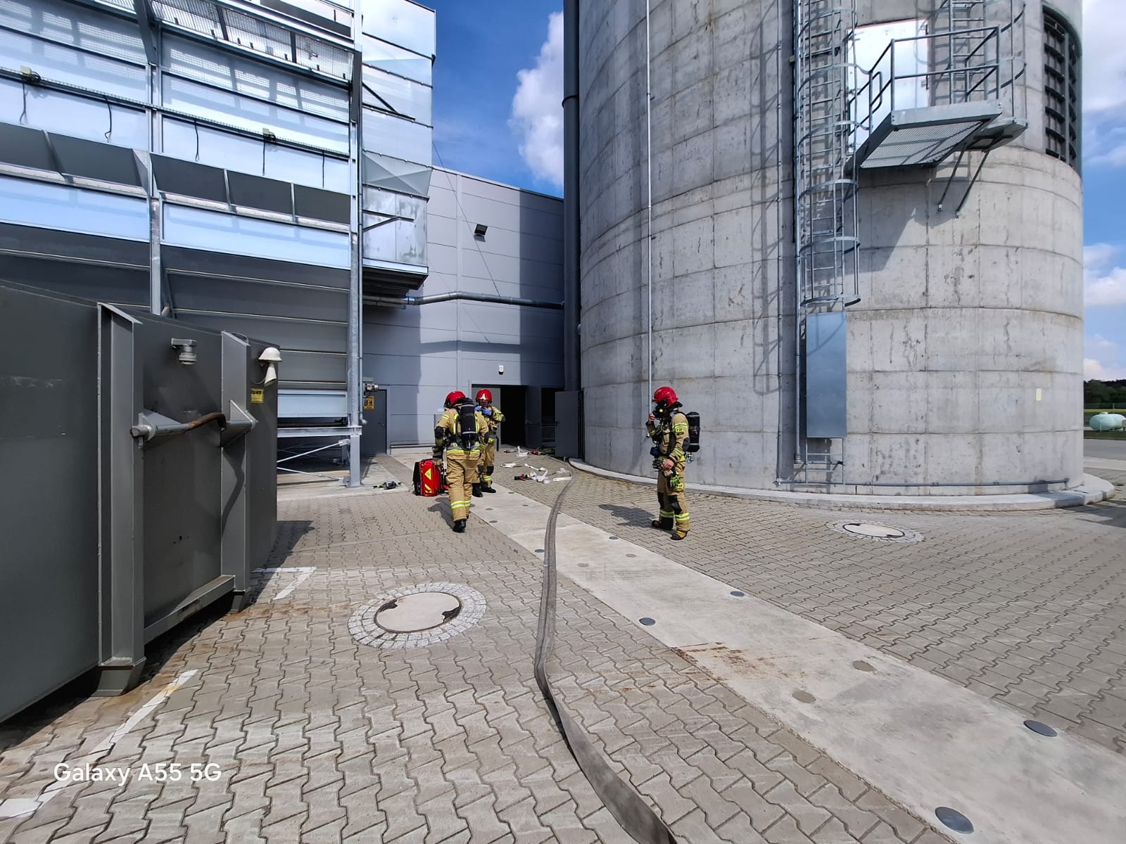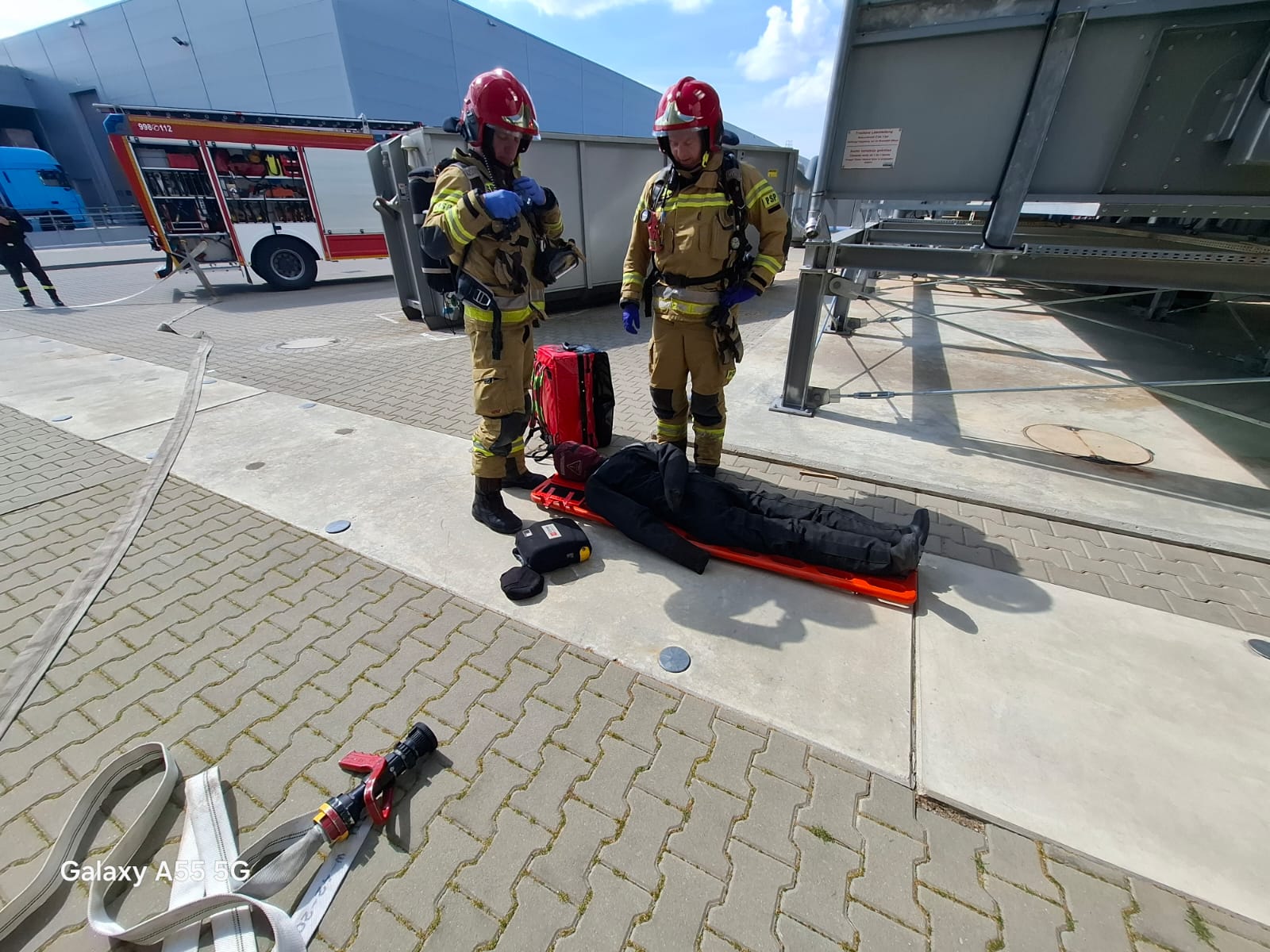 Scenariusz zakładał pożar kotłowni i znajdującą się w tym pomieszczeniu jedną osobę poszkodowaną do ewakuacji. Druga z osób poszkodowanych doznała urazu podczas ewakuacji i została wewnątrz hali produkcyjnej. Jeszcze przed przyjazdem JOP ewakuacje przeprowadzili pracownicy firmy.