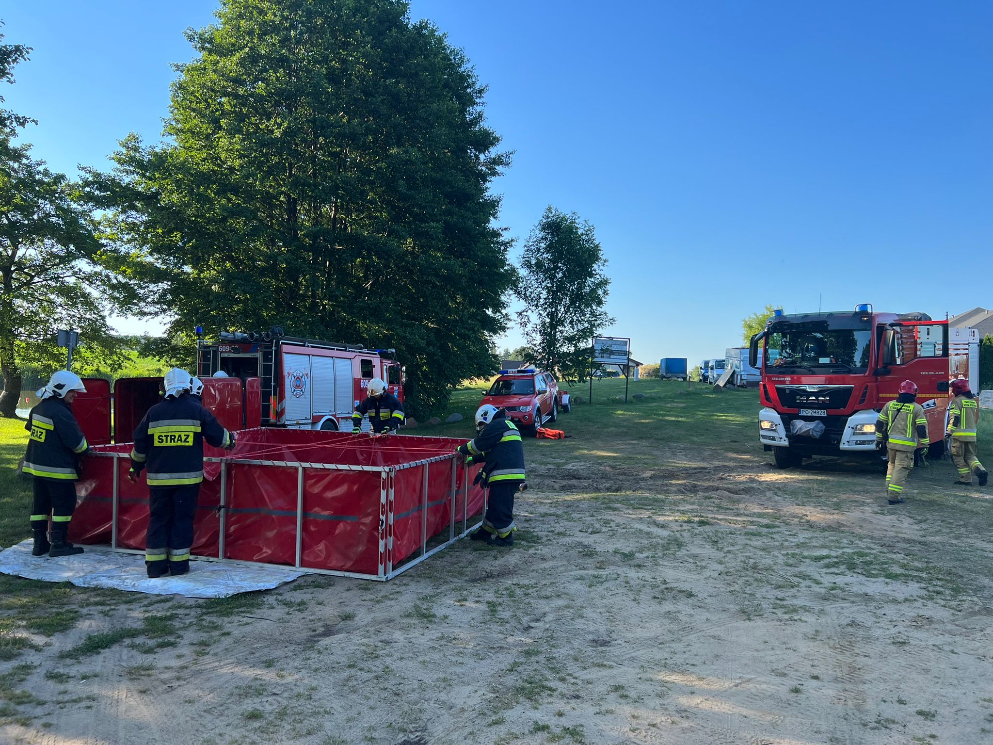 Ciągłość podawania wody nie została zaburzona a cel ćwiczeń został osiągnięty. Punkt czerpania wody realizowano ze zbiornika naturalnego tj. jeziora przy wykorzystaniu pomp szlamowych oraz zbiornika brezentowego o pojemności 13tys. l. będącego na wyposażeniu OSP Dolsk. Po zakończeniu ćwiczeń podsumowano je na wspólnej odprawie, dziękując za duże zaangażowanie przybyłych jednostek OSP. Tego typu ćwiczenia pozwalają zgrać podległe jednostki podczas działań, co przenosi się bezpośrednio na podniesienie bezpieczeństwa w gminie oraz powiecie śremskim.