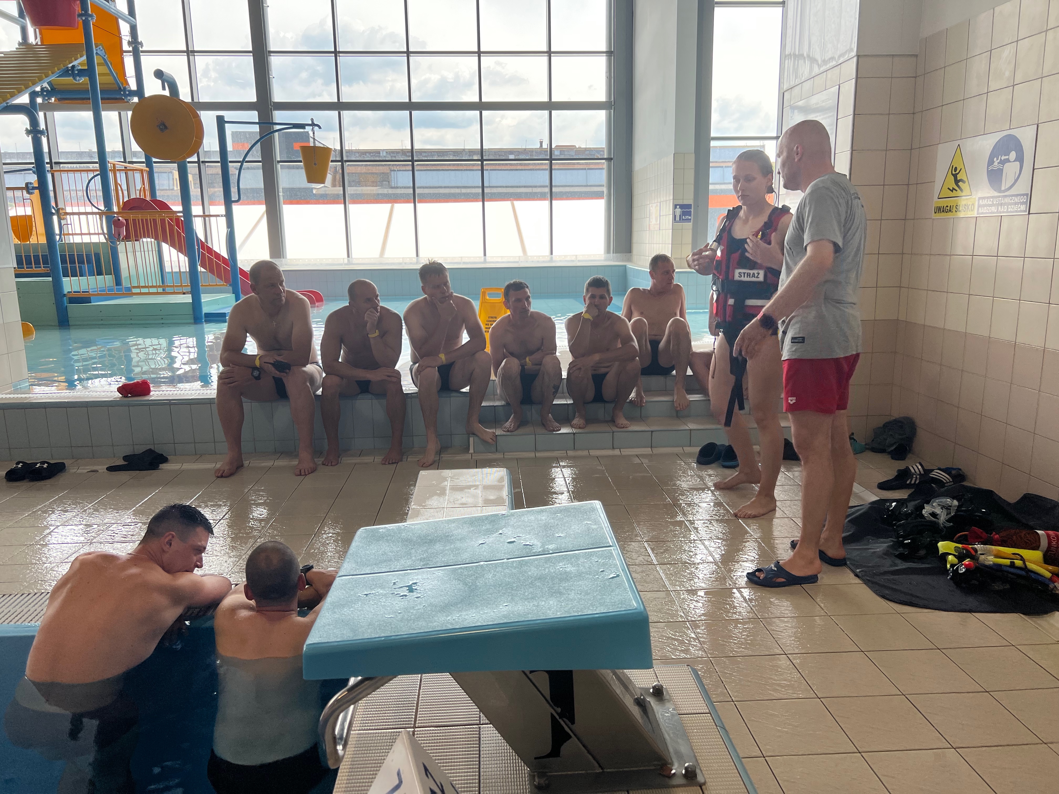 Biorąc pod uwagę zbliżający się okres wakacyjny jak również wypoczynku nad wodą śremscy strażacy ćwiczyli teoretycznie i praktycznie zakres ratownictwa wodnego na basenie w Śremskim Sporcie.