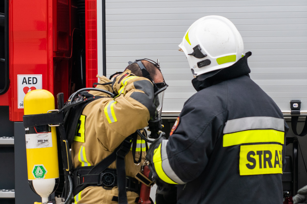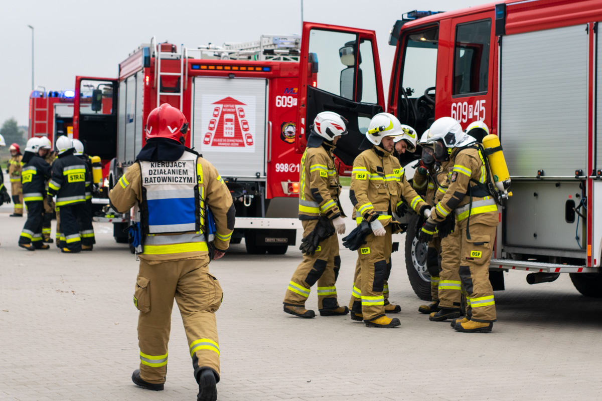 Po przybyciu JOP i otrzymaniu meldunku od kierownika ewakuacji o braku dwóch pracowników wykonano rozpoznanie miejsca zdarzenia pod kątem pożarowym oraz ustalono ewentualną możliwość przebywania osób poszkodowanych. Wstępnie przyjęto, że znajdują się one na swoim stanowisku pracy co okazało się trafną tezą. Następnie roty wyposażone w aparaty OUO dokonały przeszukania pomieszczeń, zlokalizowały osoby poszkodowane, ewakuowały je na zewnątrz po czym przystąpiono do udzielania KPP. W międzyczasie podano z drabiny mechanicznej prąd wody w natarciu na palący się budynek kotłowni, oraz zbudowano zasilanie pojazdu z istniejącej na terenie zakładu sieci wodociągowej.