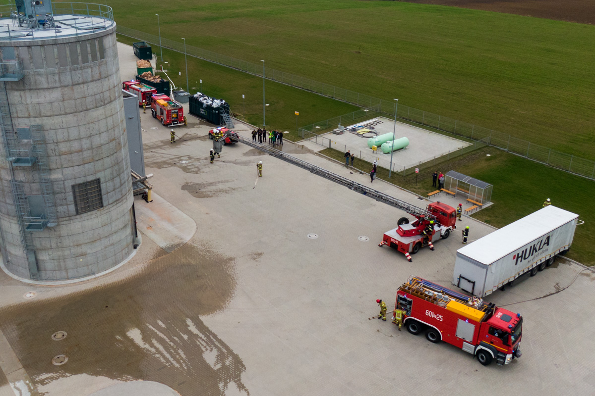 Po zakończeniu ćwiczeń przedstawiciel firmy Leopol wraz z zastępami biorącymi udział w inspekcji dokonali wizji lokalnej zakładu z uwzględnieniem miejsc najbardziej niebezpiecznych pożarowo, wskazał zabezpieczenia przeciwpożarowe w które zakład jest wyposażony, omówił zasadę działania sieci hydrantowej oraz przeciwpożarowego zbiornika wodnego. W ćwiczeniach brały udział: JRG Śrem, OSP Książ Wlkp., OSP Niesłabin, OSP Chrząstowo, OSP Żabno