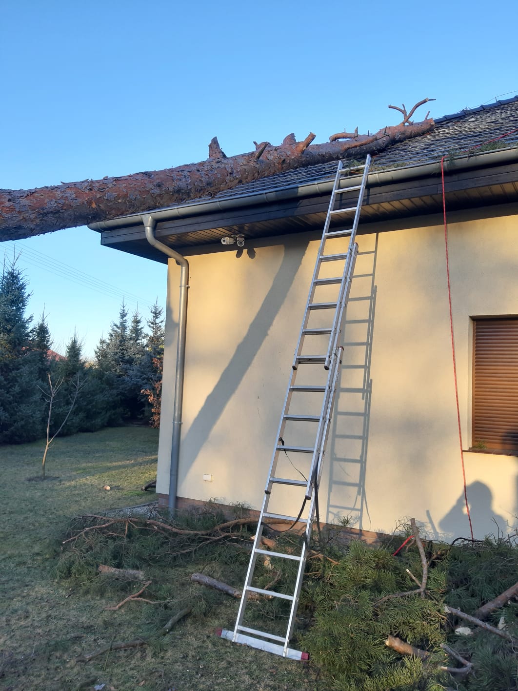 O godzinie 14:27 dyżurny SKKP przyjął informację o powalonym przez podmuchy wiatru drzewie, które opadło na dach budynku.