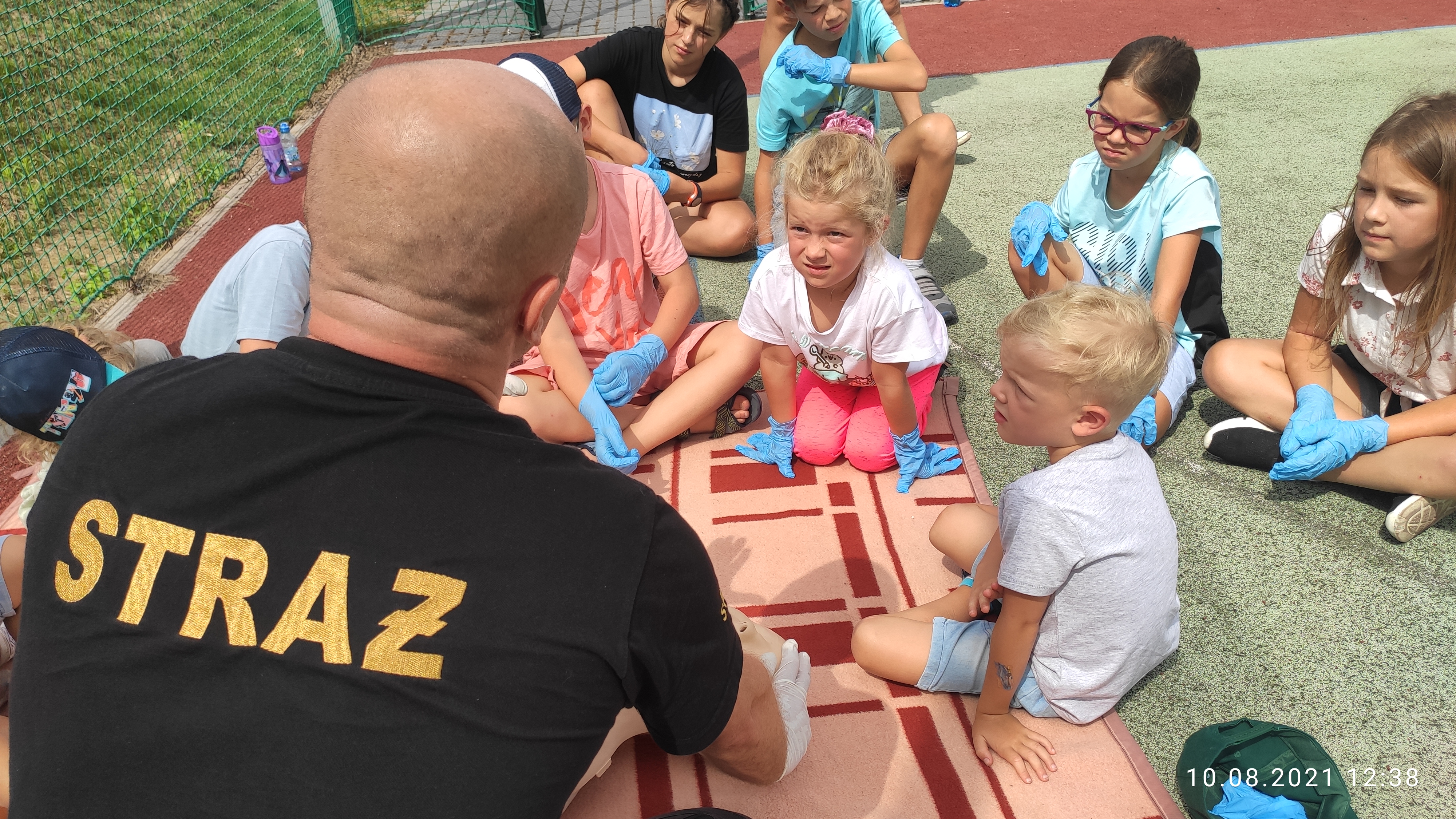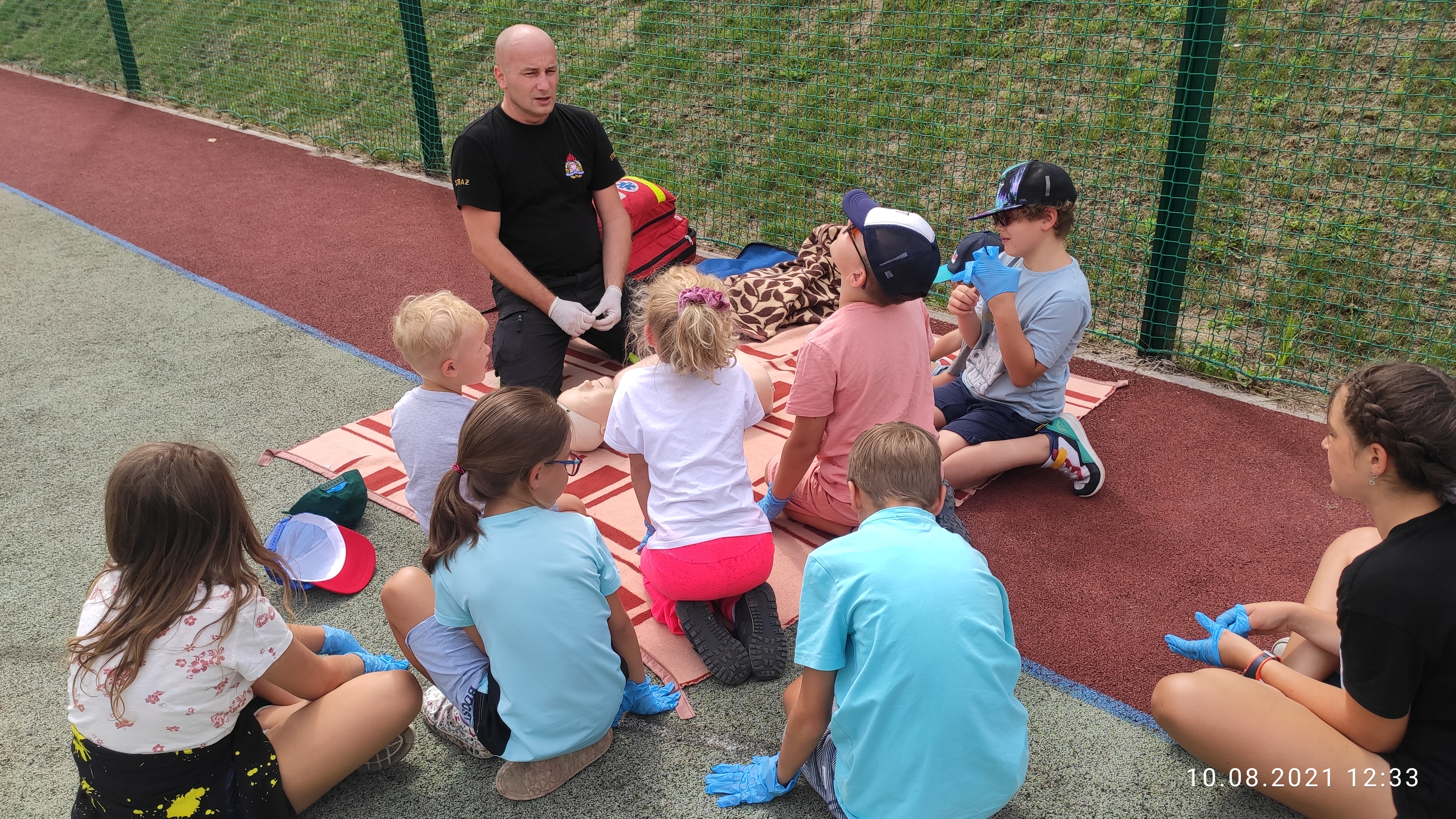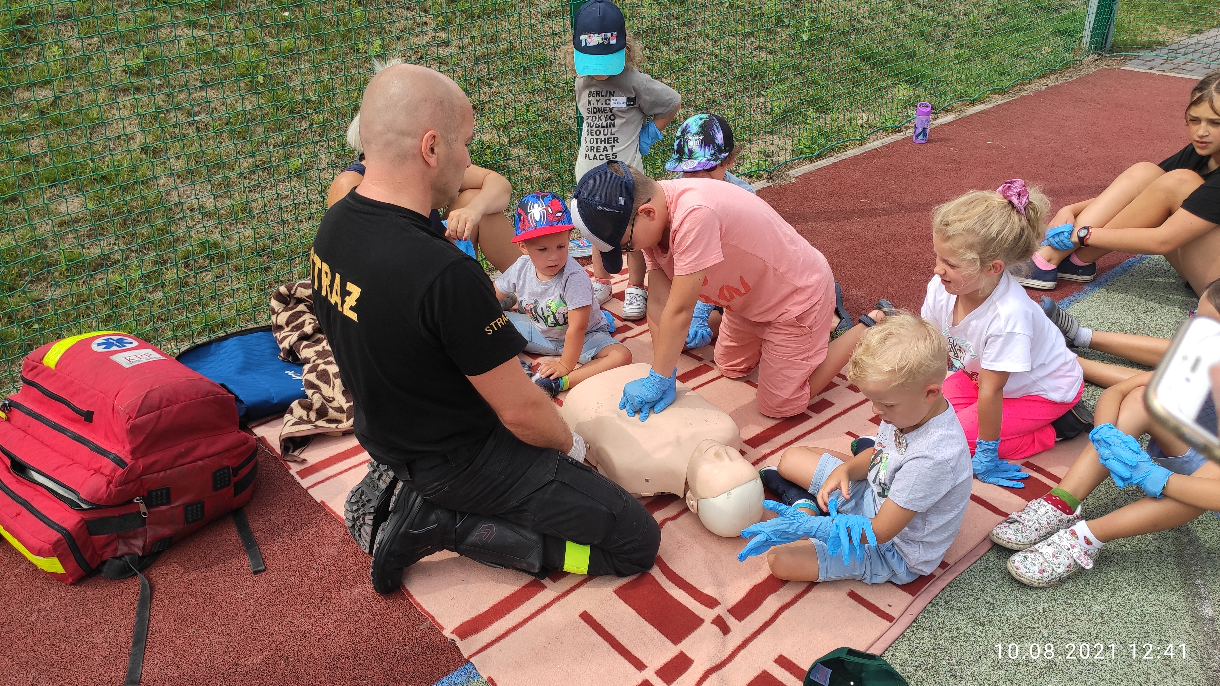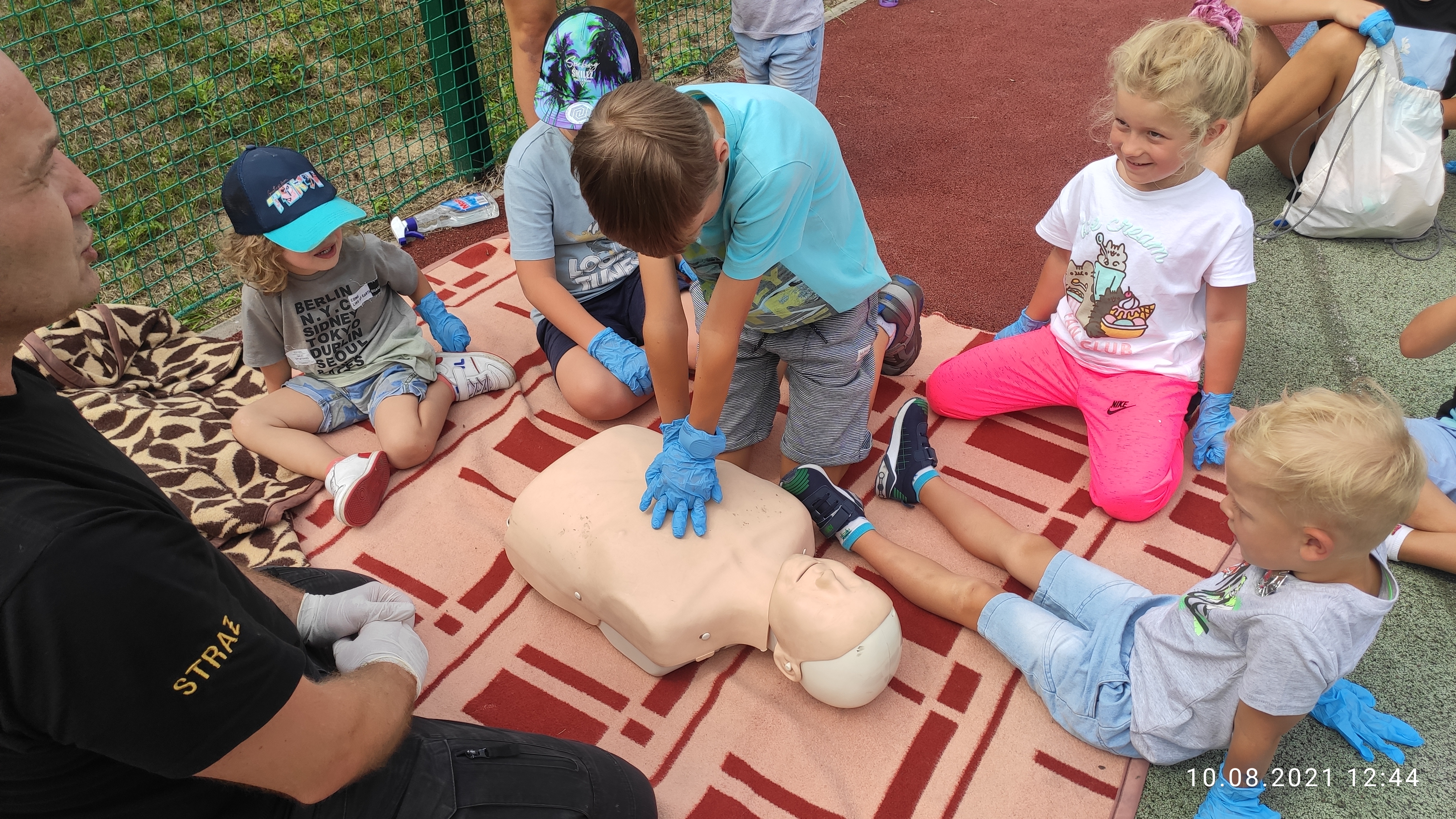 Podczas ostatniej scenki dzieci miały okazję uczestniczyć w zajęciach z zakresu ratownictwa medycznego, gdzie funkcjonariusz śremskiej jednostki przybliżył małym gościom zasady postępowania w obliczu zagrożenia medycznego. Określone zostały zasady wzywania pomocy poprzez numer ratunkowy 112 oraz przeprowadzono ćwiczenia z prowadzenia resuscytacji krążeniowo-oddechowej.