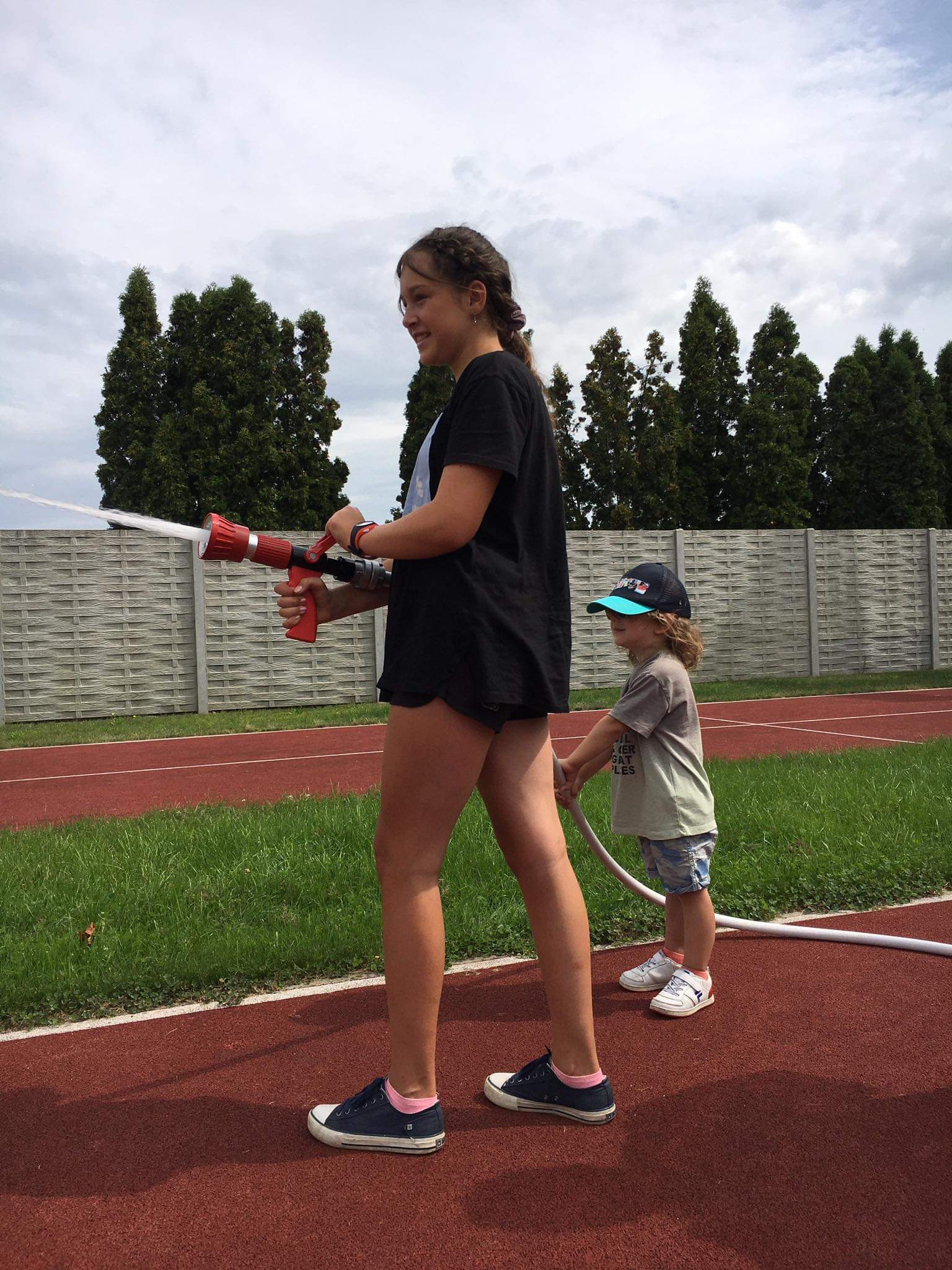 Na koniec wizyty dzieci miały okazję zapoznać się ze sprzętem będącym na wyposażeniu pojazdów ratowniczych jak również mogły się wcielić w rolę strażaków operując prądownicą.