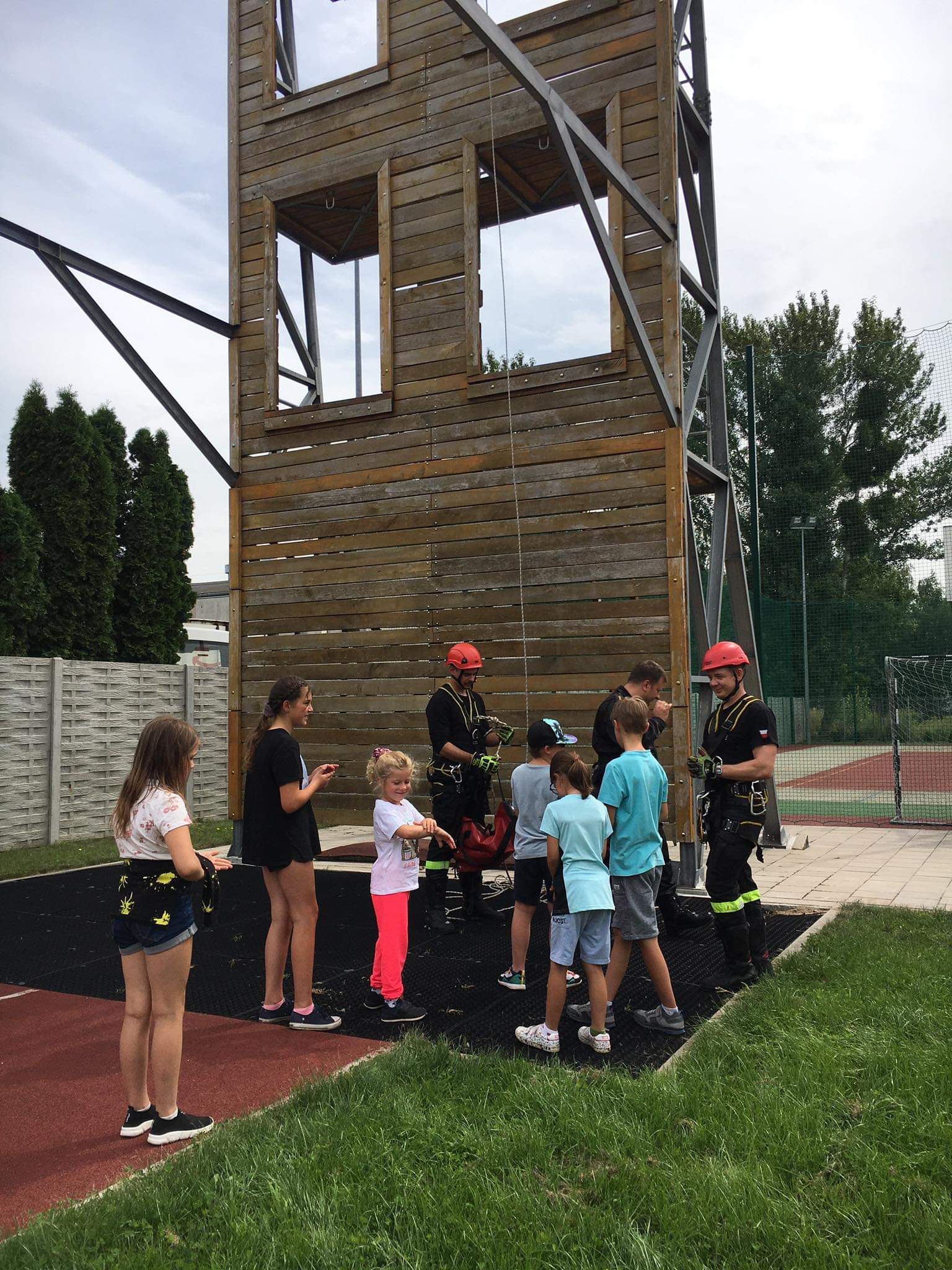 W kolejnej części pokazów ratownicy zaprezentowali techniki zjazdowe wykorzystywane podczas działań z zakresu ratownictwa wysokościowego. Tutaj również dzieci miały okazję zobaczyć jak wygląda specjalistyczny sprzęt oraz zadać pytania ratownikom.