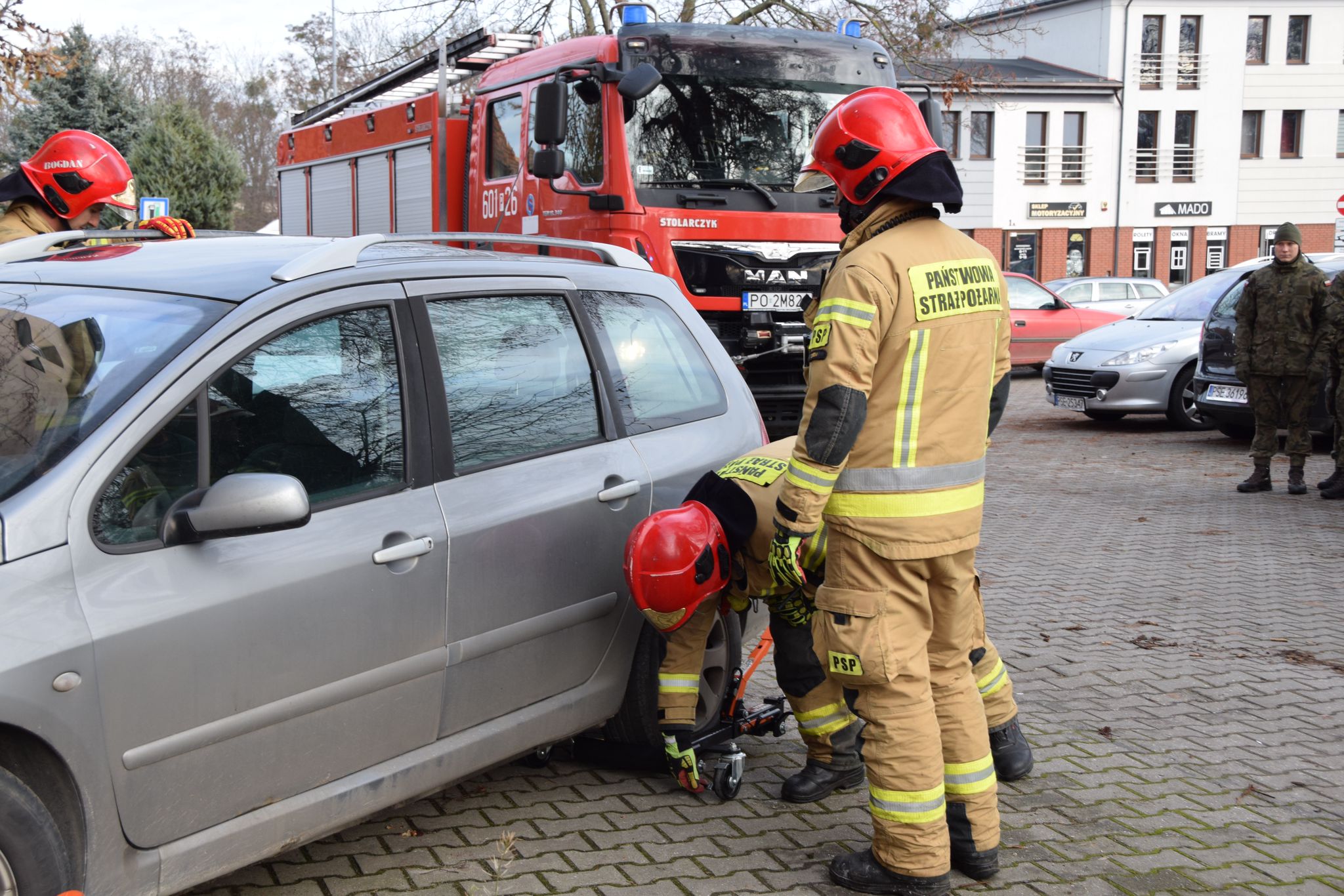 15 grudnia 2023 roku zmiana służbowa brała udział w ćwiczeniach z ewakuacji klubu garnizonowego w Jednostce Wojskowej nr 4430 w Śremie. Scenariusz zakładał pożar w pomieszczeniu biblioteki. Działania polegały na ewakuacji dwóch uwięzionych przez pożar osób. Jedną z nich ewakuowano przez okno na 2 piętrze budynku przy użyciu podnośnika mechanicznego. Drugą po przeszukaniu pomieszczeń odnaleziono w jednym z pomieszczeń na najwyższej kondygnacji. Obie osoby przekazano medykom, ugaszono pożar oraz przewietrzono budynek. Po zakończeniu ćwiczeń przeprowadzono krótkie podsumowanie. W działaniach udział brały GBARt, GCBARt, SH24 JRG Śrem, ambulans JW4430.