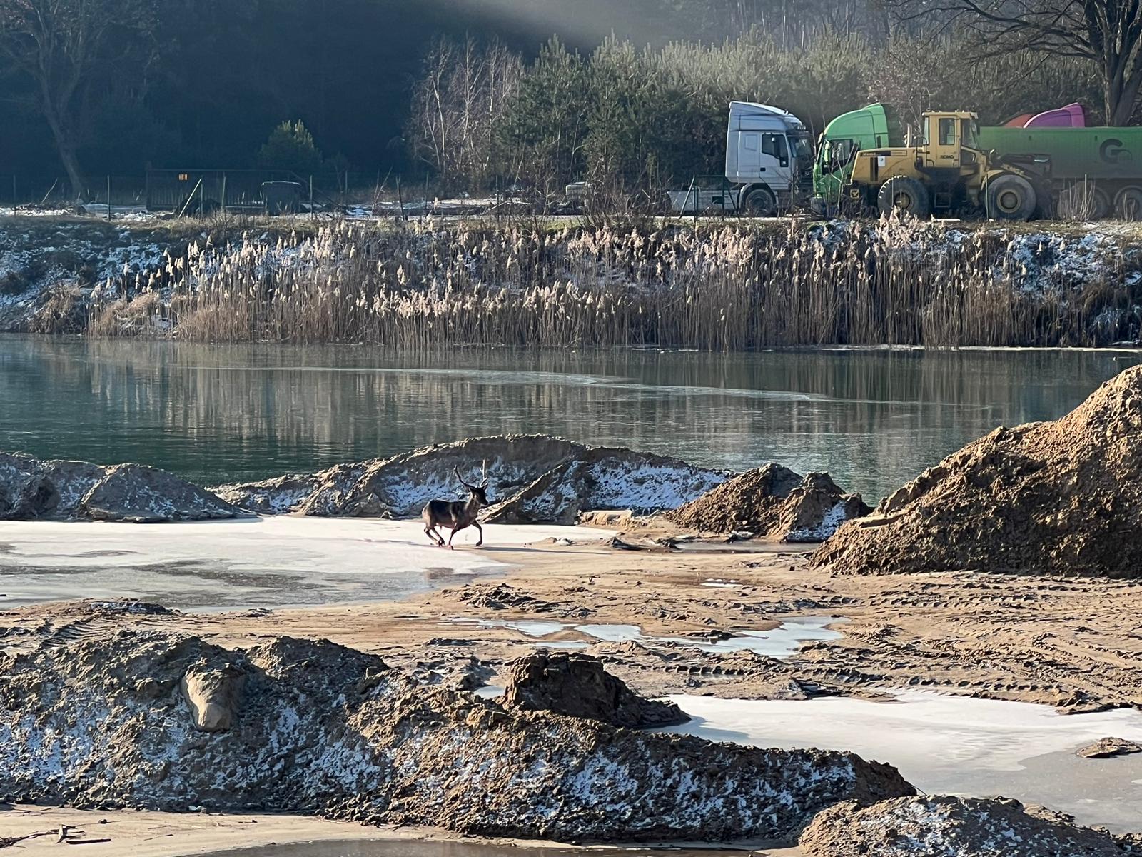 08 lutego 2023 roku około godzin 9:11 Stanowisko Kierowania Komendanta Powiatowego Państwowej Straży Pożarnej w Śremie przyjęło zgłoszenie o zdarzeniu związanym z jeleniem znajdującym się na zamarzniętym zbiorniku wodnym