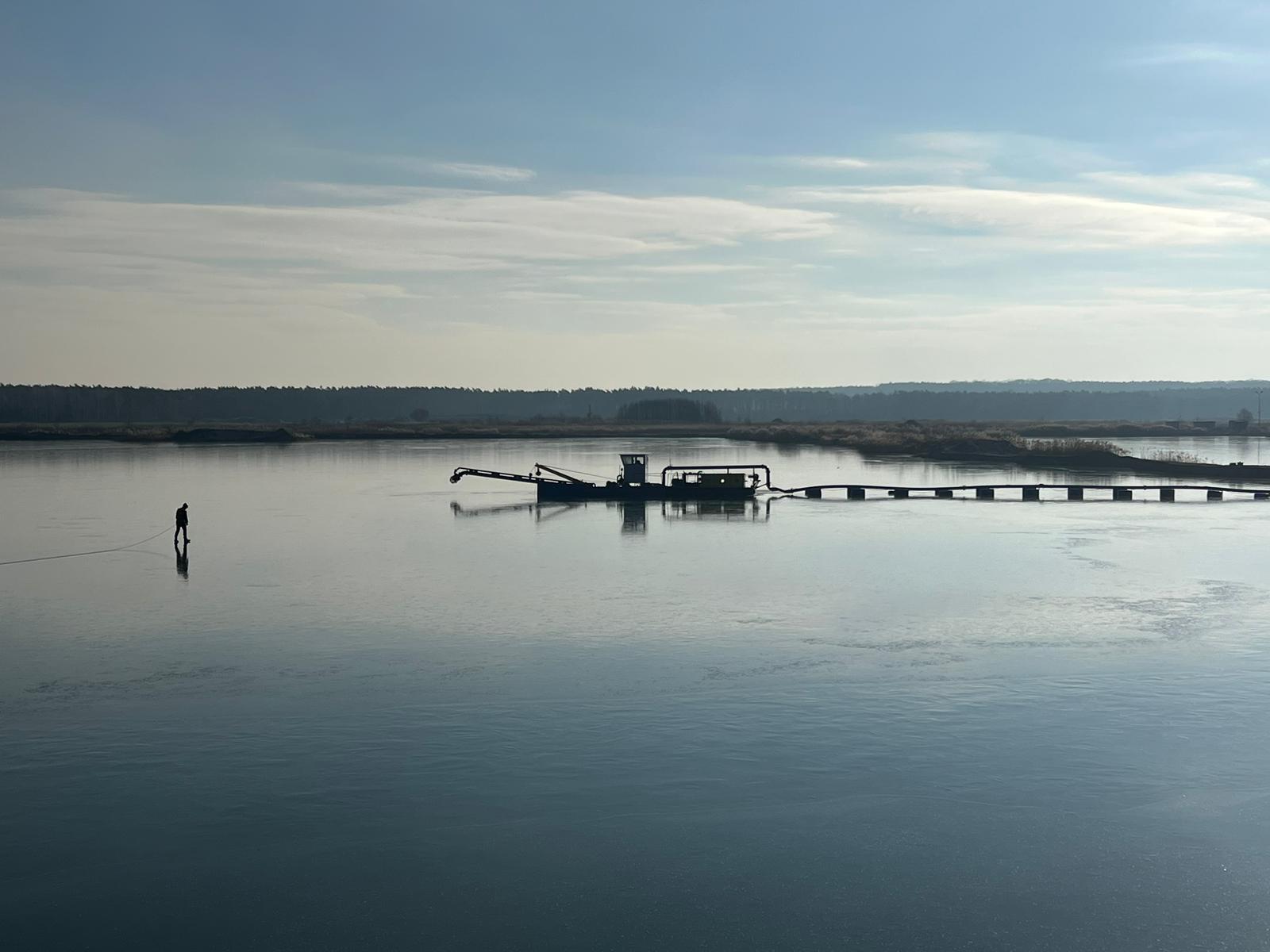 Po przybyciu na miejsce akcji stwierdzono że, jeleń znajduje się ok 15 metrów od brzegu na tafli lodu.