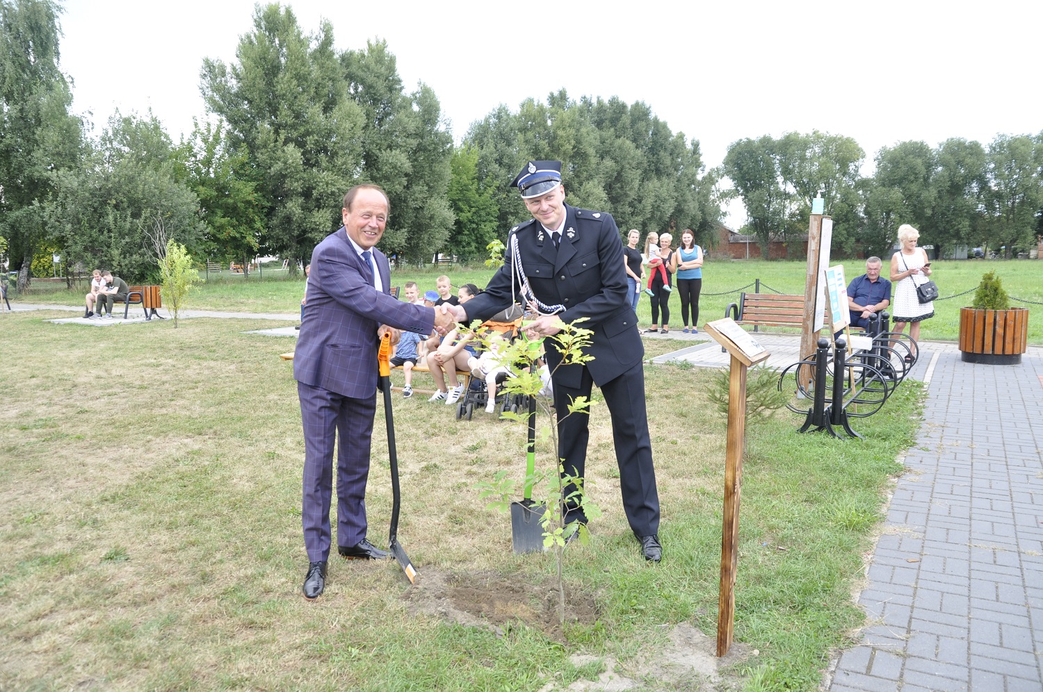 Kolejnym punktem obchodów jubileuszu 100 lecia OSP Mchy było posadzenie dębu, którego nazwano "Florian" Uroczystego wkopania drzewa dokonał Burmistrz Książa Wlkp. wraz z Prezesem OSP Mchy.