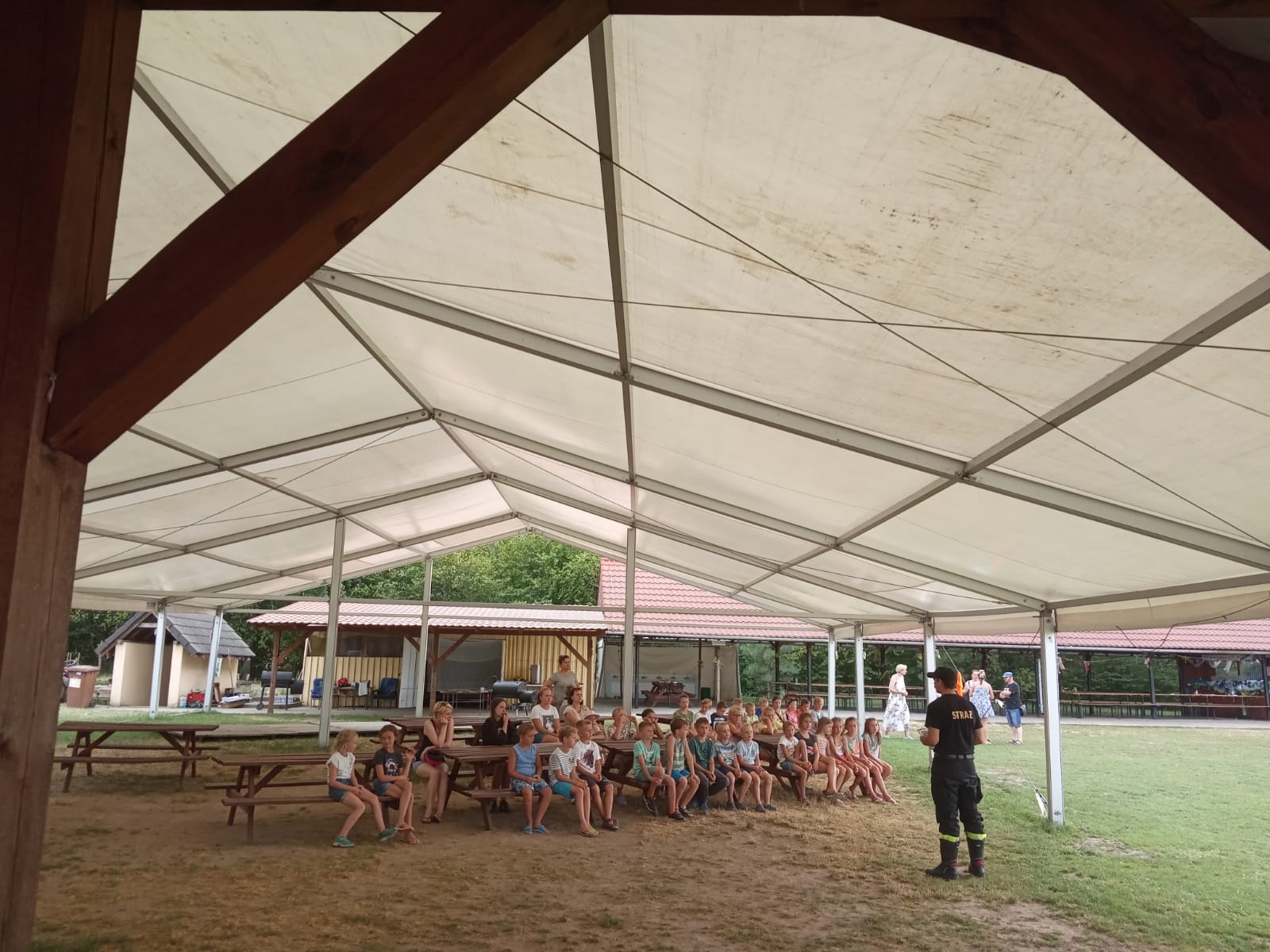 W związku z rozpoczętym okresem wakacyjnym formę obozów młodzieżowych rozpoczęto w Serdecznej Osadzie w miejscowości Mełpin. Cykliczne spotkania i pogadanki w wymiennych turnusach rozpoczął funkcjonariusz KP PSP Śrem mł. kpt. Maciej Smarul, który tego dnia spotkał się z młodzieżą na terenie ośrodka wypoczynku. W trakcie spotkania sprawdzono pod kątem zabezpieczeń przeciwpożarowych obiekty znajdujące się w Serdecznej Osadzie a także drogi ewakuacyjne i miejsca bezpieczne w przypadku wystąpienia zagrożenia. Kolejnym elementem była pogadanka na temat bezpieczeństwa i zachowań w ramach prewencji społecznej oraz bezpiecznych zachowań w trakcie wakacji oraz nad wodą. Cykl spotkań będzie kontynuowany podczas zmiany turnusów wypoczynkowych.