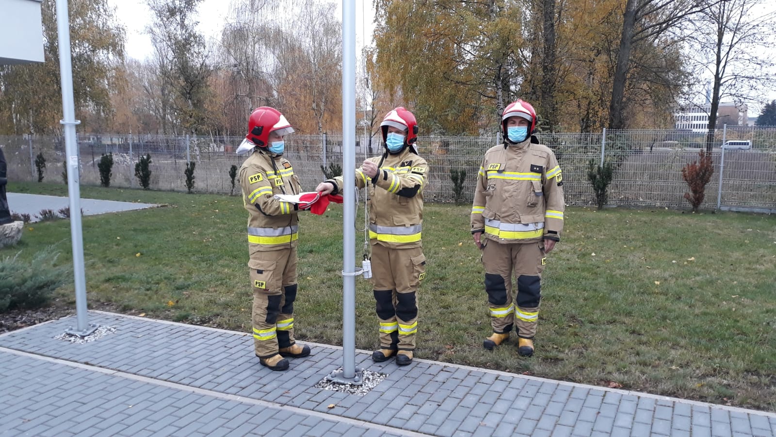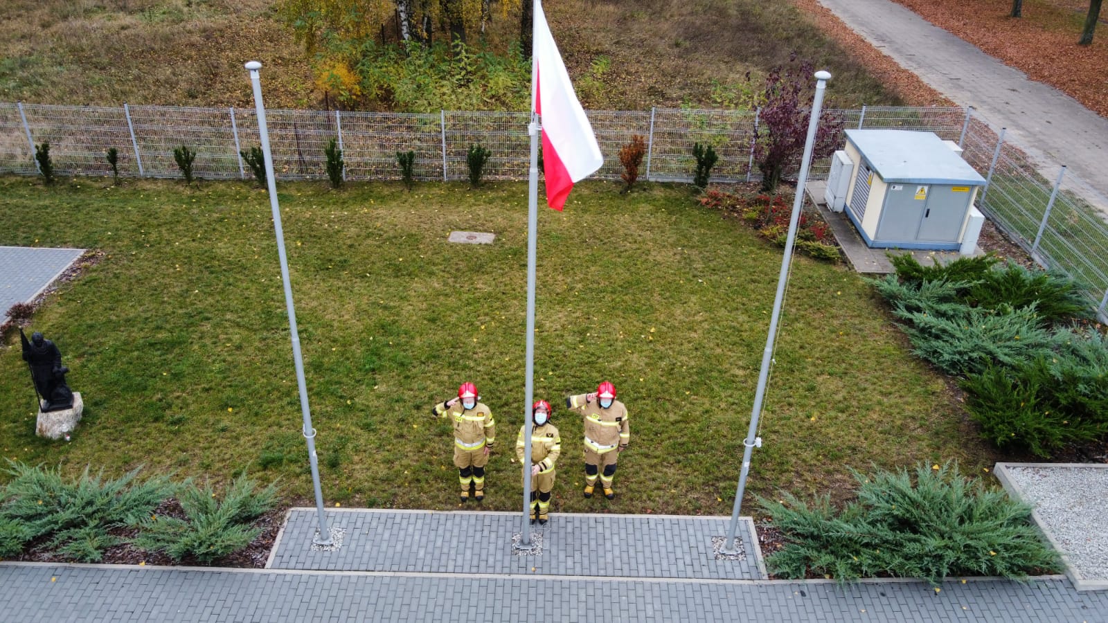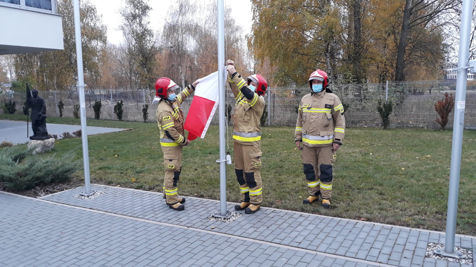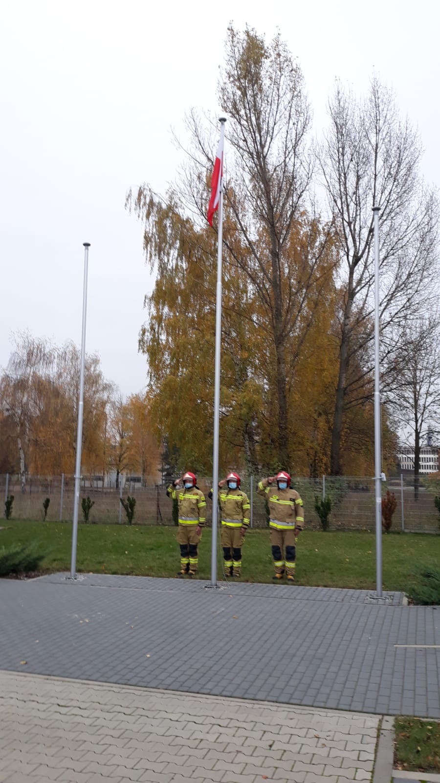 Z okazji Narodowego Święta NIepodległości w Komendzie Powiatowej PSP w Śremie odbyła się uroczysta zbiórka. Wyznaczeni funkcjonariusze zmiany służbowej uroczyście podnieśli Flagę Państwową na maszt oraz wszyscy odśpiewali Mazurka Dąbrowskiego w ramach akcji "Niepodległa do hymnu 2020". Z uwagi na panującą sytuację cała uroczystość odbyła się z zachowaniem reżimu sanitarnego i dystansu społecznego.