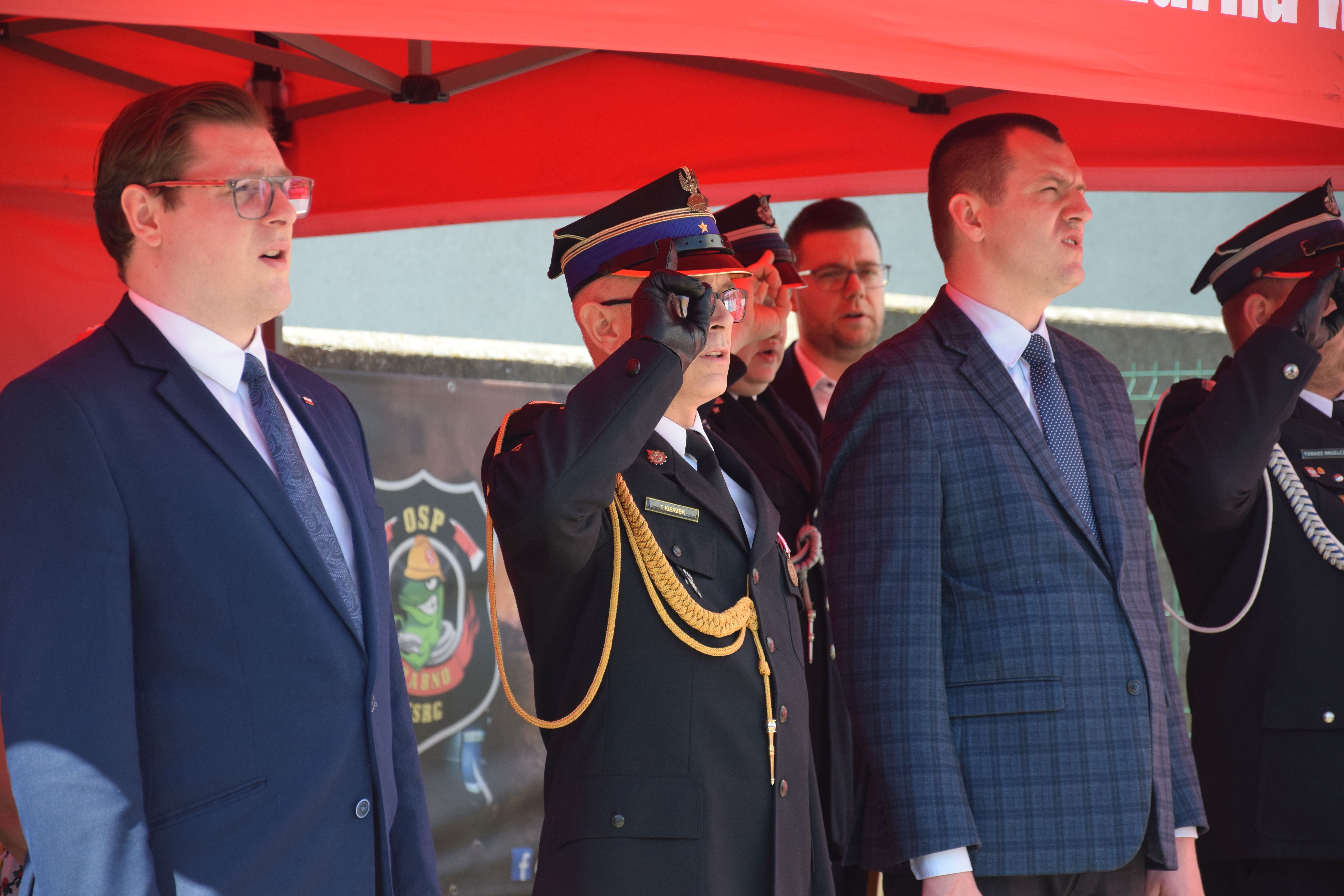 Obchody Dnia Strażaka Ochotniczej Straży Pożarnej w Żabnie rozpoczęły się od złożenia meldunku Komendantowi Powiatowemu Państwowej Straży Pożarnej w Śremie mł.bryg. Tomaszowi Kierzkowi przez dowódcę uroczystości dh Dawida Makosza, który następnie dokonał przeglądu pocztów sztandarowych i pododdziału.