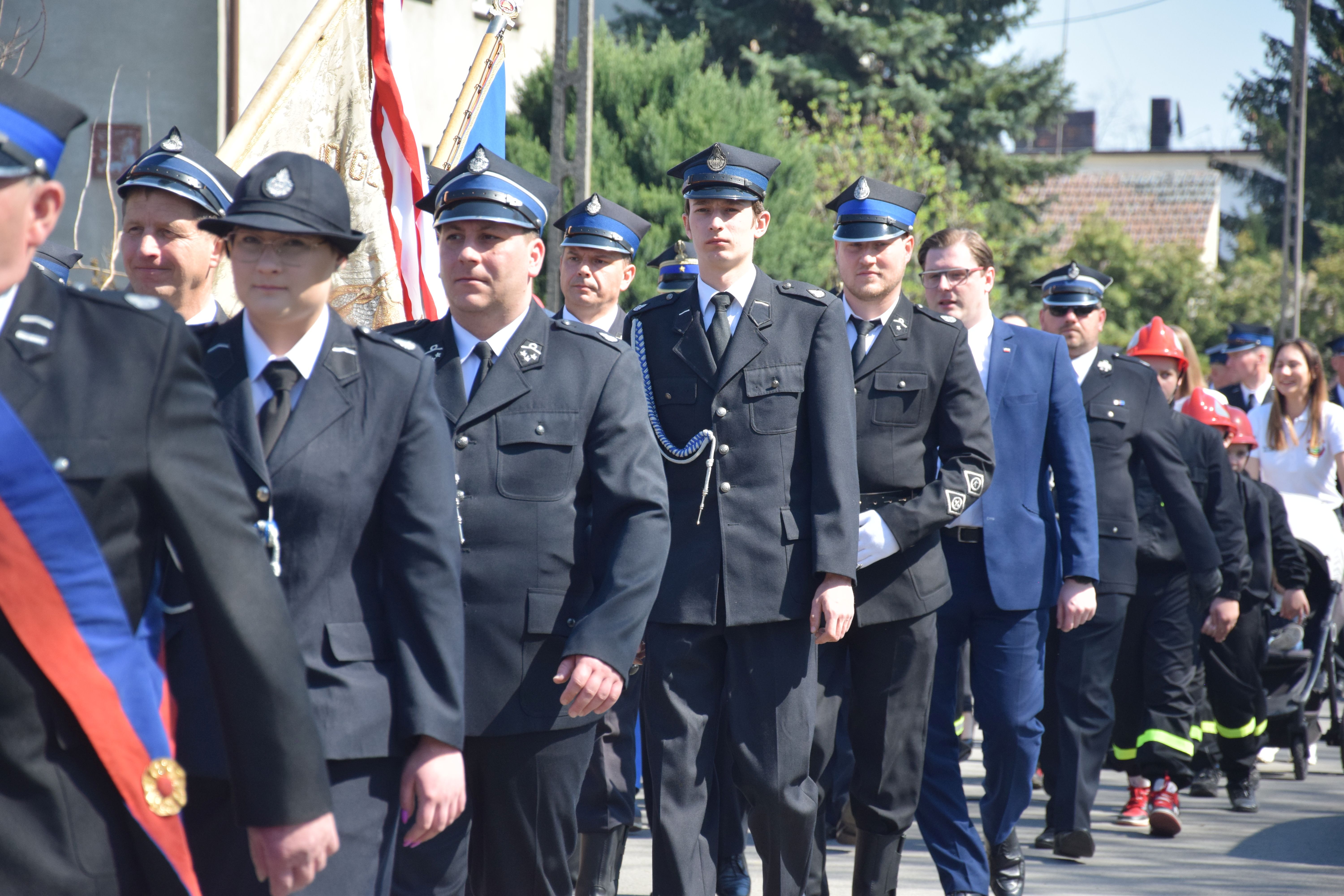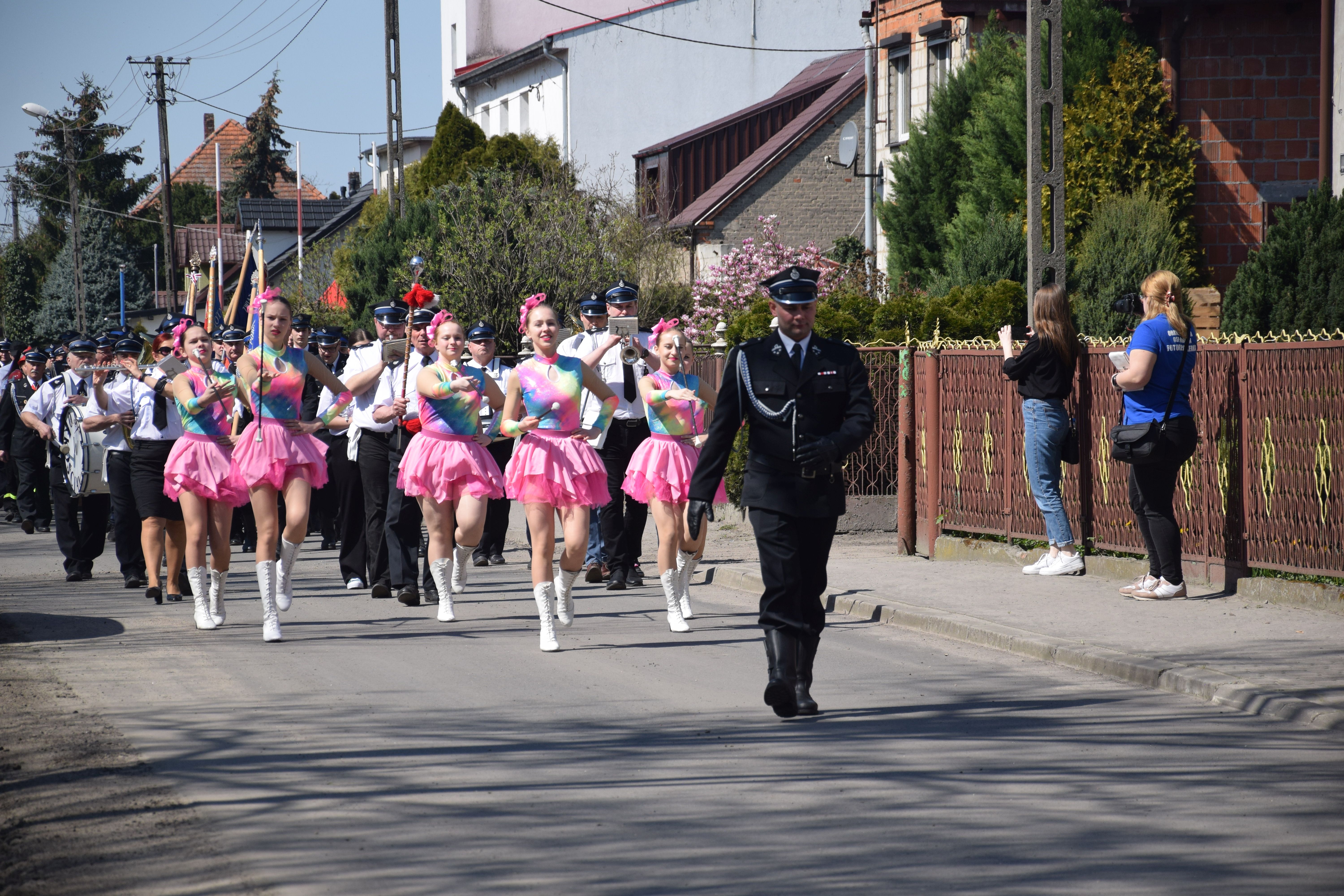 Po zakończeniu mszy świętej, zaproszeni goście, sztandary, druhny i druhowie oraz społeczeństwo pod akompaniamentem orkiestry dętej Ochotniczej Straży Pożarnej w Kościanie przemaszerowali do miejsca uroczystości.