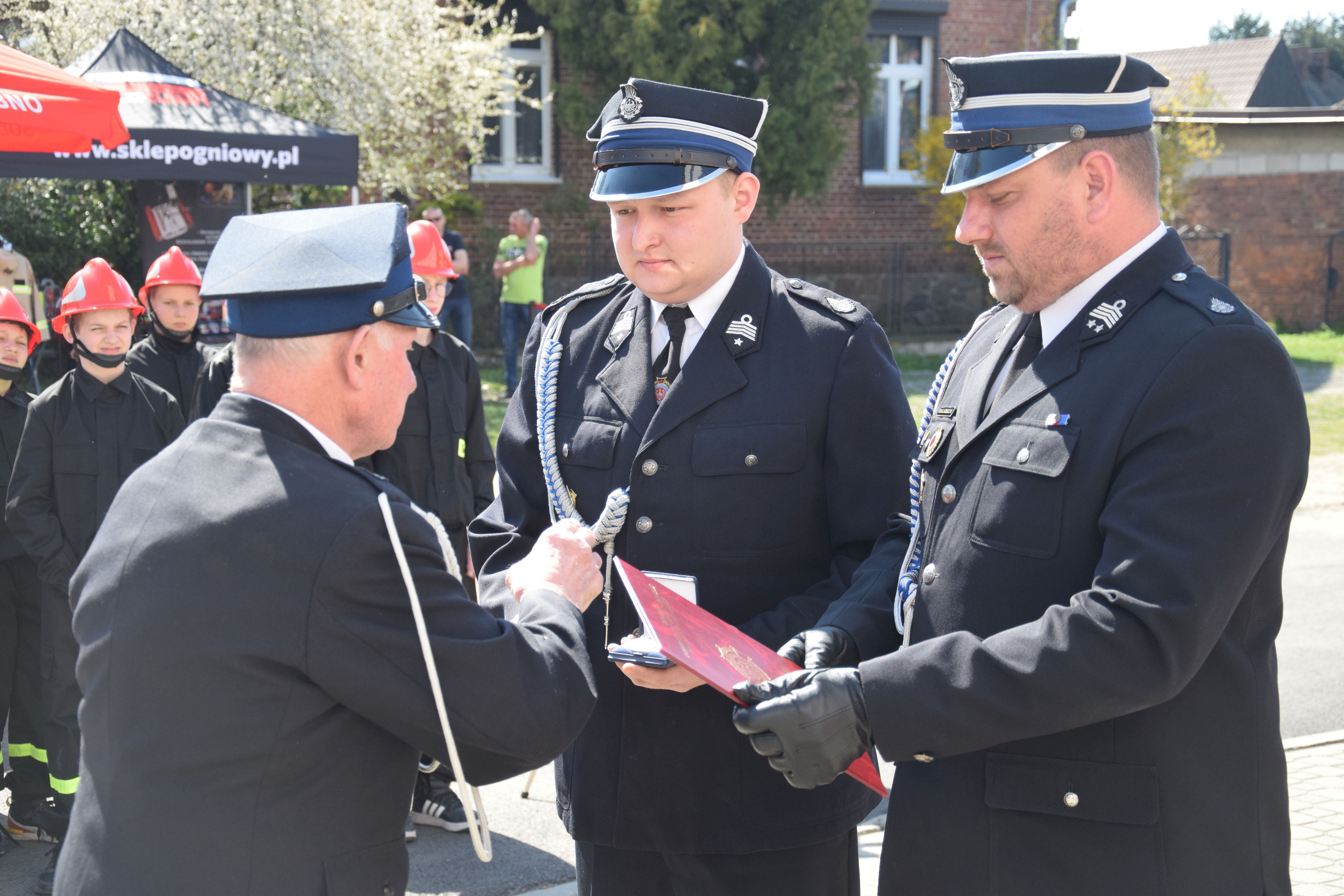 Następnie została odczytana uchwała Prezydium Zarządu Głównego Związku Ochotniczych Straży Pożarnych w związku z przyznaniem medalu honorowego im. Bolesława Chomicza dh Mieczysławowi Małeckiemu. Uroczystego wręczenia dokonali dh Tomasz Grzelczyk – członek Prezydium Zarządu Wojewódzkiego Związku Ochotniczych Straży Pożarnych Rzeczypospolitej Polskiej oraz dh Bartosz Pałcik – Prezes Zarządu Powiatowego Związku Ochotniczych Straży Pożarnych Rzeczypospolitej Polskiej w Śremie