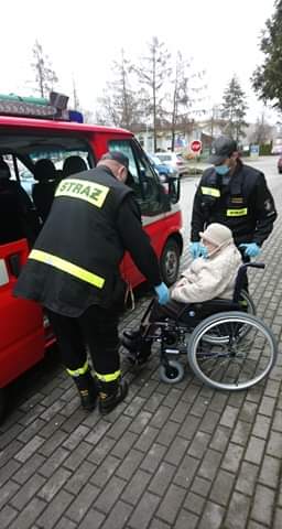 Zadysponowany o godzinie 11:05 zastęp SLRr Ford z OSP Pysząca udał się do miejscowości Zbrudzewo celem pomocy osobie starszej w zaszczepieniu się poprzez transport do punktu szczepiennego - Szpitala Powiatowego. Na miejscu ratownicy zabezpieczeni w środki ochrony indywidualnej ( maseczki oraz rękawiczki nitrylowe) udzielili pomocy osobie starszej przy wejściu do samochodu i zejściu oraz przewiezieniu do miejsca wykonania szczepienia. Po wykonanym szczepieniu osoba została przetransportowana do miejsca zamieszkania.Udział 1 zastęp 3 ratowników.
