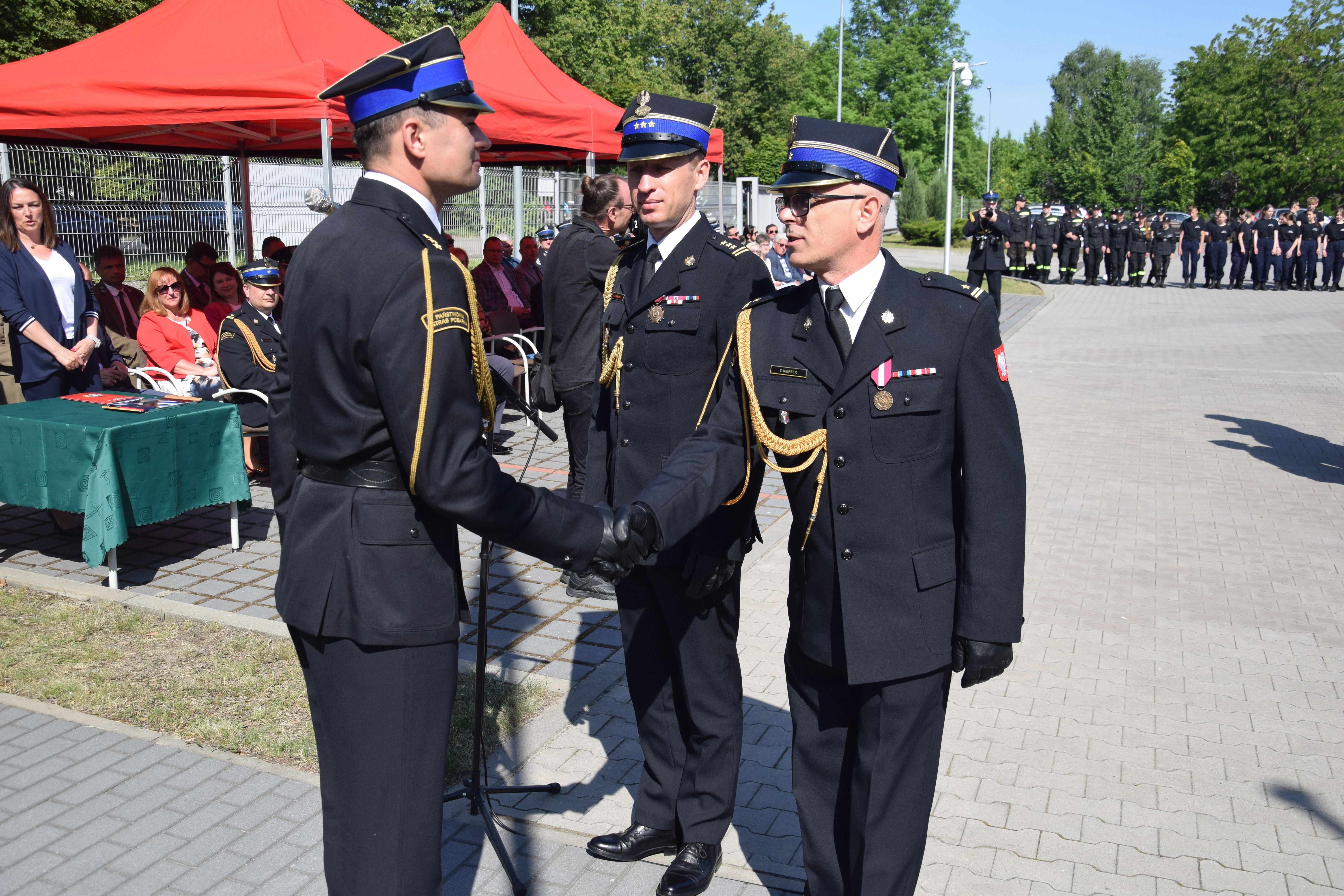 W dalszej części swojego wystąpienia Komendant Powiatowy PSP w Śremie podziękował strażakom za trud włożony w codzienną służbę na rzecz obywateli naszego kraju. W ostatnich latach funkcjonariusze Państwowej Straży Pożarnej oraz druhowie Ochotniczych Straży Pożarnych stawiali czoła wielu wyzwaniom związanym z pandemią koronawirusa COVID-19, jak również działaniom związanym z kryzysem przy wschodniej granicy naszego państwa. Przywołano również działania prowadzone poza granicami Polski przy zwalczaniu pożarów w Szwecji, Francji i Grecji oraz przy usuwaniu skutków trzęsienia ziemi w Turcji. Profesjonalizm polskich strażaków znany jest w całym świecie, a krajowy system ratowniczo-gaśniczy głownie opierający się na Ochotniczych Strażach Pożarnych to bardzo dobrze funkcjonująca maszyna ratownicza, której pozazdroszczą nam koledzy z innych krajów. Nie sposób pominąć wsparcie, jakiego udzielają Straży Pożarnej organy rządowe oraz samorządowe, jak również jednostki sektora prywatnego, bez których tak nowoczesne wyposażenie i wyszkolenie naszej służby nie byłoby możliwe. To wspólny wysiłek na rzecz bezpieczeństwa naszych obywateli.