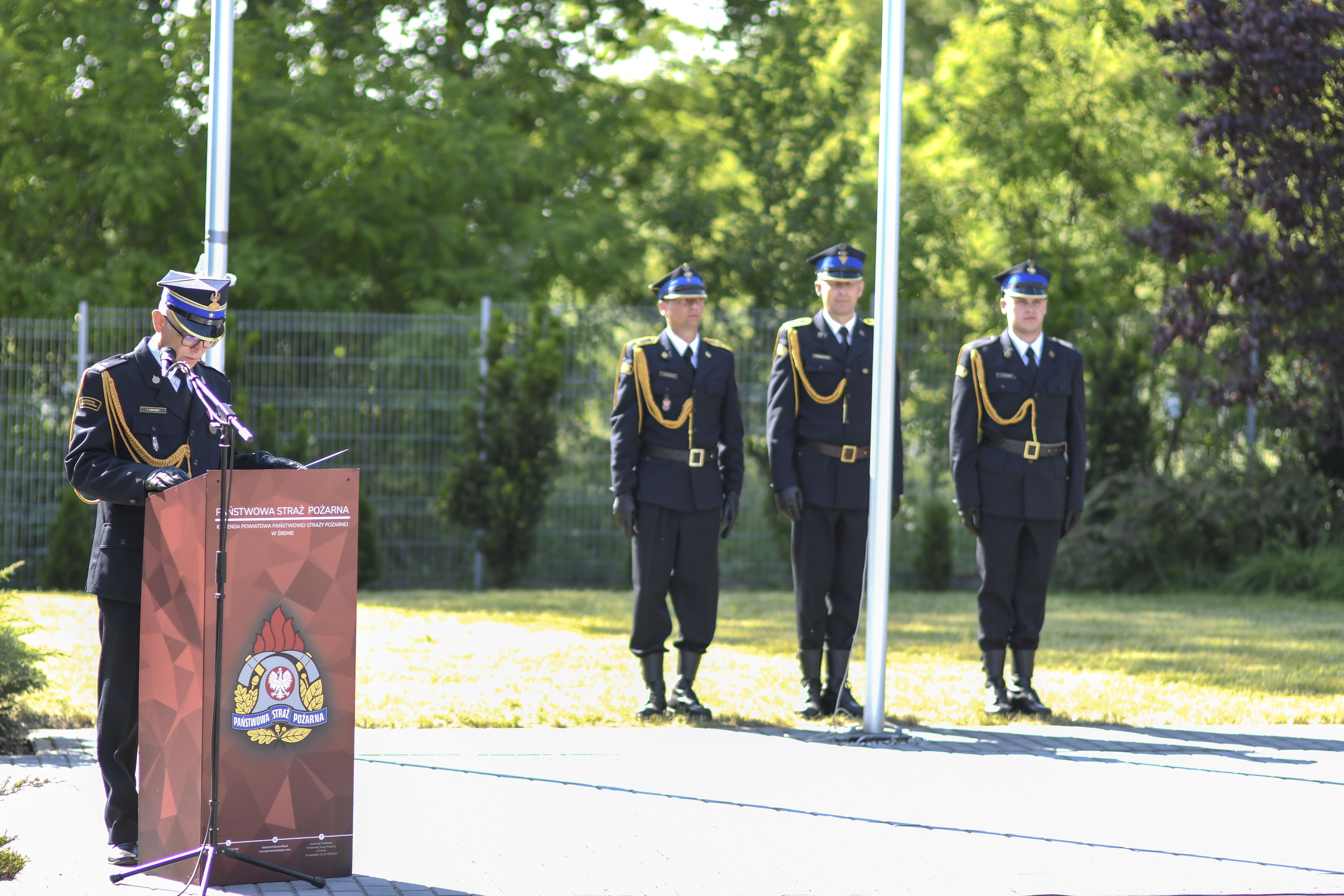 Dowódca uroczystości kpt. Miłosz Zdęga złożył meldunek o gotowości do rozpoczęcia apelu Zastępcy Wielkopolskiego Komendanta Wojewódzkiego Państwowej Straży Pożarnej st. bryg. Tomaszowi Grelakowi. Po przeglądzie pododdziałów poczet flagowy dokonał podniesienia flagi państwowej, któremu towarzyszło wspólne odśpiewanie Hymnu Państwowego. Następnie głos zabrał Komendant Powiatowy PSP w Śremie mł. bryg. Tomasz Kierzek, który powitał licznie przybyłych gości w osobach: