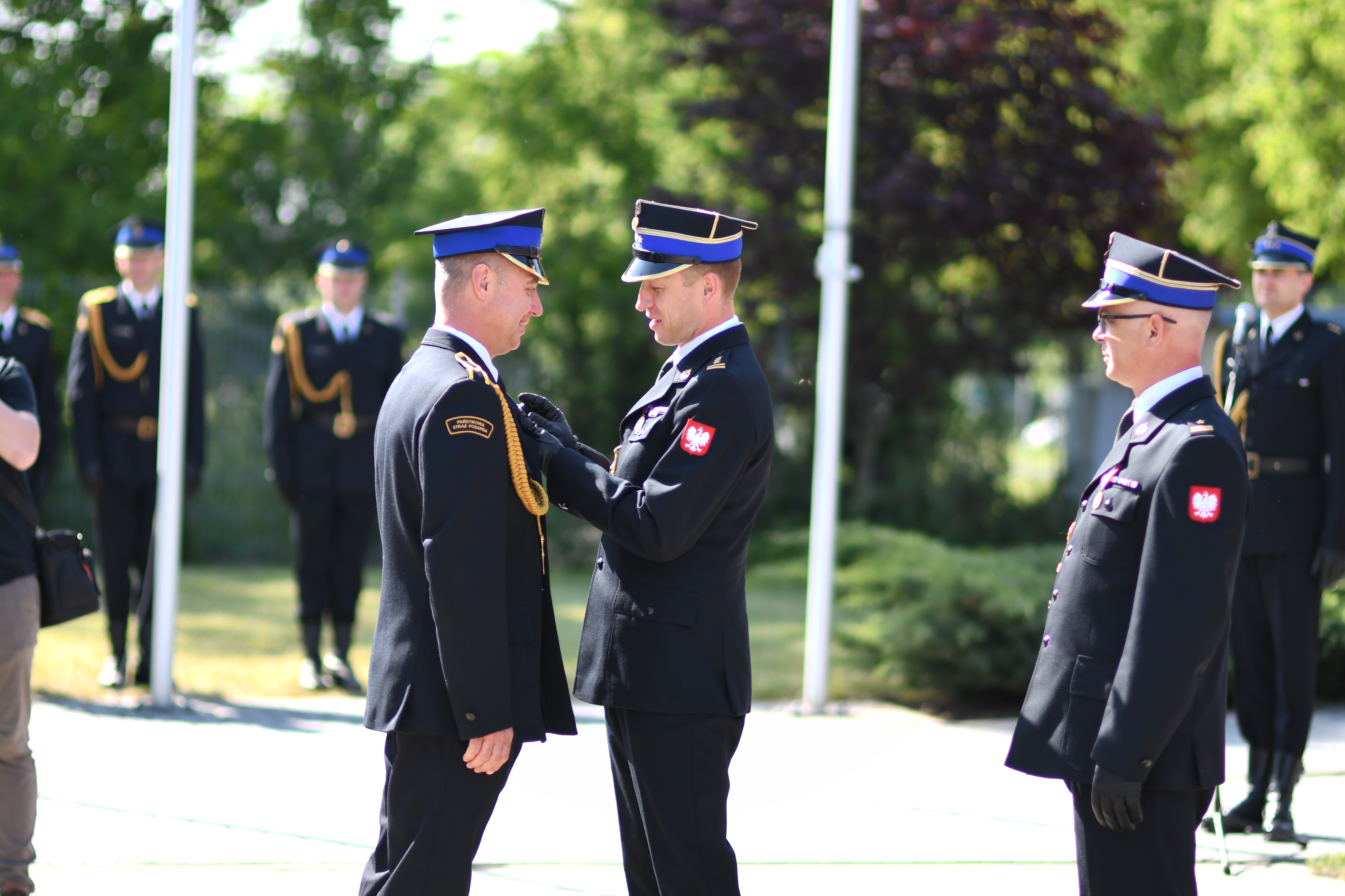 Dodatkowym akcentem dzisiejszej uroczystości było wyróżnienie listami gratulacyjnymi Wielkopolskiego Komendanta Wojewódzkiego PSP oraz Komendanta Powiatowego PSP w Śremie druha Michała Mielcarka z OSP Pysząca, który w dniu 16 maja 2023 roku wykazał się odwagą i pełnym profesjonalizmem ratując 5-cio miesięczne dziecko, które przestało oddychać od śmierci.