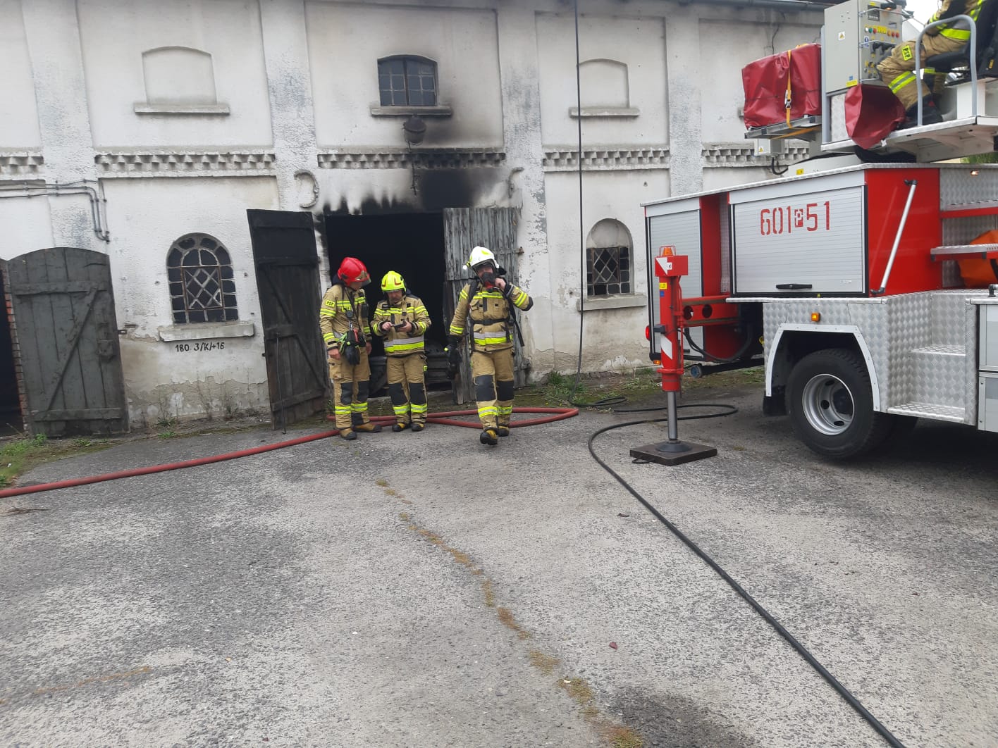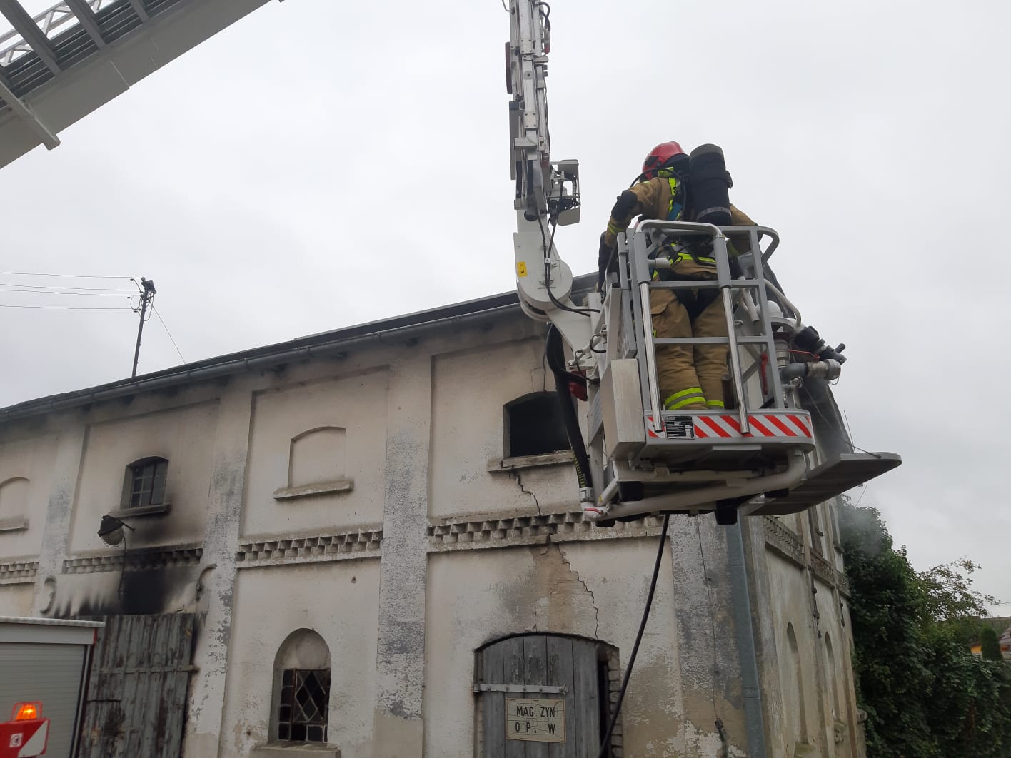 Po przybyciu zadysponowanych sił i środków na miejsce zdarzenia i rozpoznaniu ustalono, że występuje duże zadymienie w opuszczonym budynku po starej gorzelni. Działania JOP polegały na zabezpieczeniu miejsca zdarzenia,podaniu trzech prądów gaśniczych w natarciu przez ratowników zabezpieczonych w OUO oraz wyposażonych w kamerę termowizyjną. Po 19 minutach od przybycia pierwszego zastępu na miejsce zdarzenia pożar został zlokalizowany na I piętrze przy konstrukcji dachu koło komina.Po ugaszeniu pożaru i oddymieniu pomieszczeń przy pomocy wentylatorów oddymiających rozebrano nadpaloną część dachu. Następnie sprawdzono miejsca objęte pożarem przy pomocy kamery termowizyjnej - nie stwierdzono nieprawidłowości. Pomieszczenia zostały sprawdzone pod kątem występowania tlenku węgla przy pomocy mierników - brak wskazań. Udział 6 zastępów 18 ratowników w tym grupa operacyjna KP PSP Śrem, Pogotowie Energetyczne.