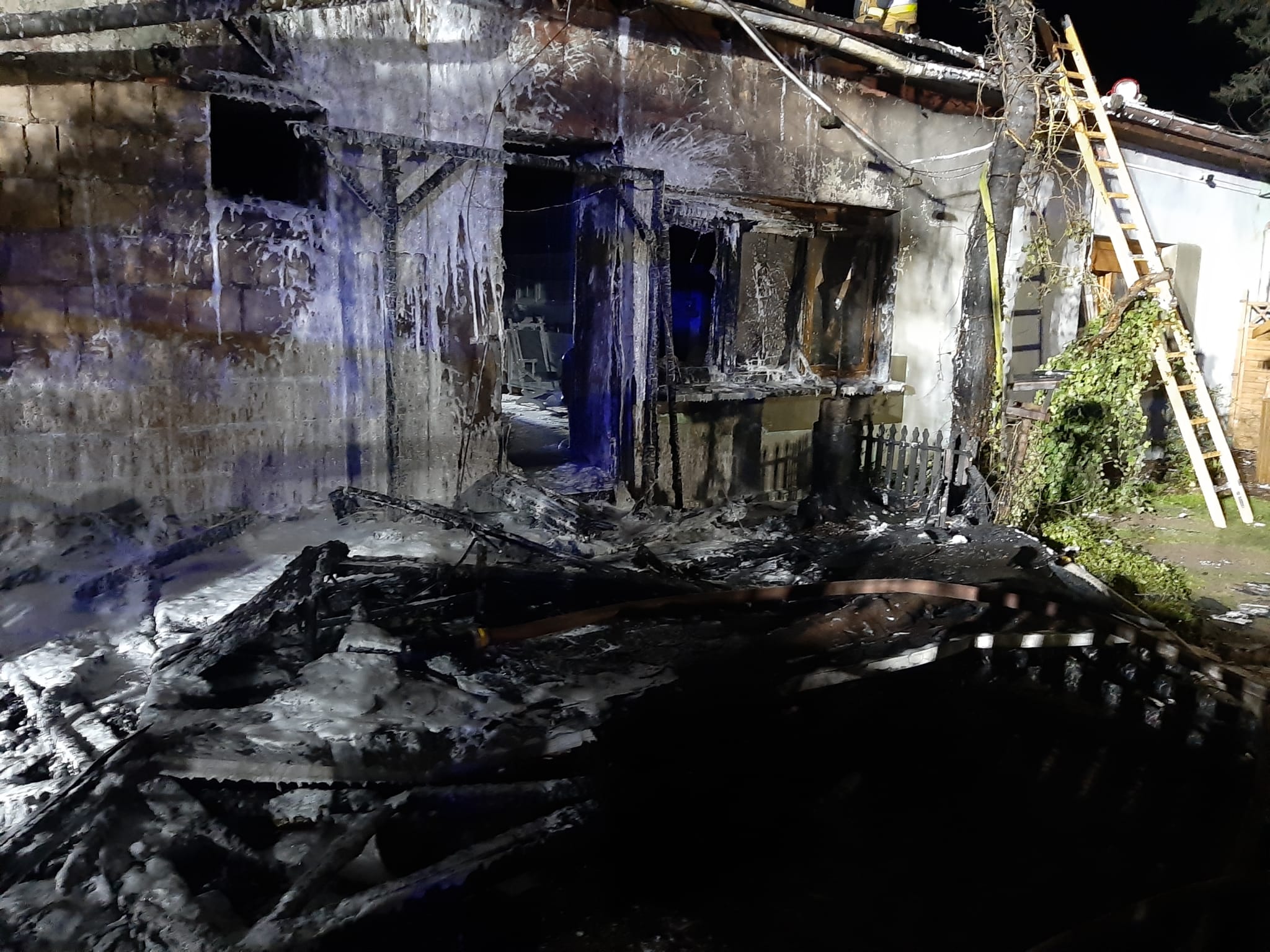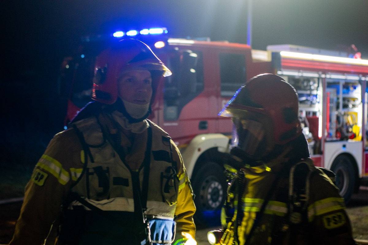 Wskutek pożaru obrażenia odniosła jedna osoba w postaci oparzenia której udzielono KPP. Działania JOP polegały na zabezpieczeniu miejsca zdarzenia, oświetleniu terenu działań. Wskutek pożaru obrażenia odniosła jedna osoba w postaci oparzenia której udzielono KPP. Strażacy zabezpieczeni w OUO wykonali dostęp do wnętrza budynku. Przy pomocy drabiny przenośnej weszli na konstrukcje budynku. Podano 1 prąd gaśniczy w natarciu wewnątrz budynku i 2 prądy gaśnicze z zewnątrz. Przy pomocy piły mechanicznej wykonano otwory w dachu w celu dotarcia do nadpalonych elementów konstrukcji dachu. Po ugaszeniu pożaru przeszukano pomieszczenia budynku oraz przewietrzono i sprawdzono przy pomocy kamery termowizyjnej. Następnie strażacy sprawdzili obiekt przy użyciu detektora wielogazowego - nie stwierdzono nieprawidłowości.