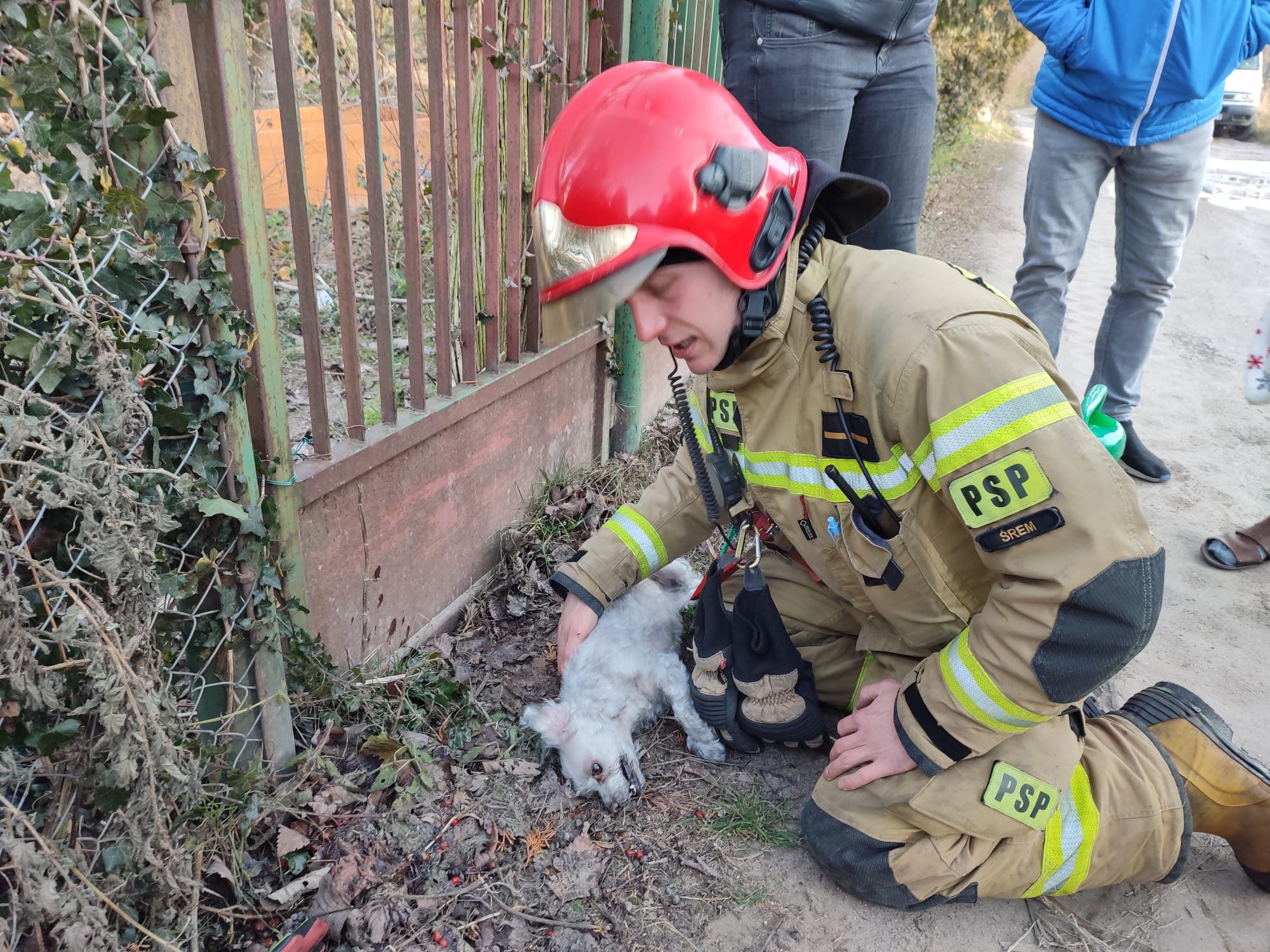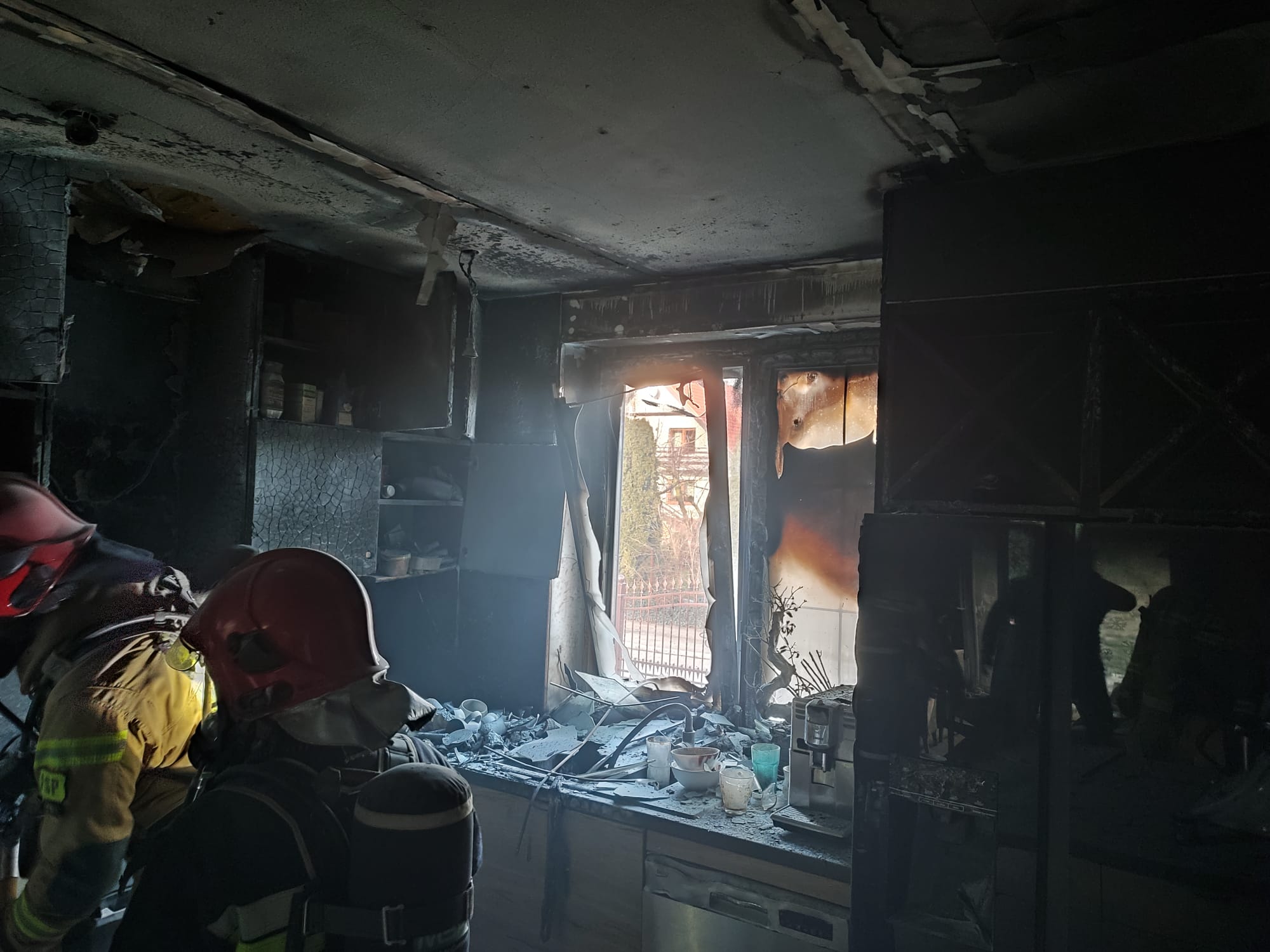 Pod wskazany adres niezwłocznie zadysponowano 3 zastępy z JRG Śrem oraz zastęp OSP Śrem. Po przybyciu na miejsce, w rozpoznaniu ustalono, że pali się wyposażenie w pomieszczeniu kuchni w budynku jednorodzinnym. Do zadań przybyłych na miejsce zastępów należało zabezpieczenie miejsce zdarzenia oraz ugaszenie pożaru przy użyciu gaśnicy proszkowej. Przewietrzono, wszystkie pomieszczenia w budynku. Podczas zdarzenia ucierpiał pies, który uległ zatruciu dymami pożarowymi. Załoga JRG Śrem udzieliła mu pomocy przedmedycznej a następnie zwierzę przekazano weterynarzowi. Na miejsce przybyły i brały udział w działaniach zastępy GBARt, GCBARt, SH24 JRG Śrem, GCBA OSP Śrem, Pogotowie Energetyczne, Pogotowie Gazowe