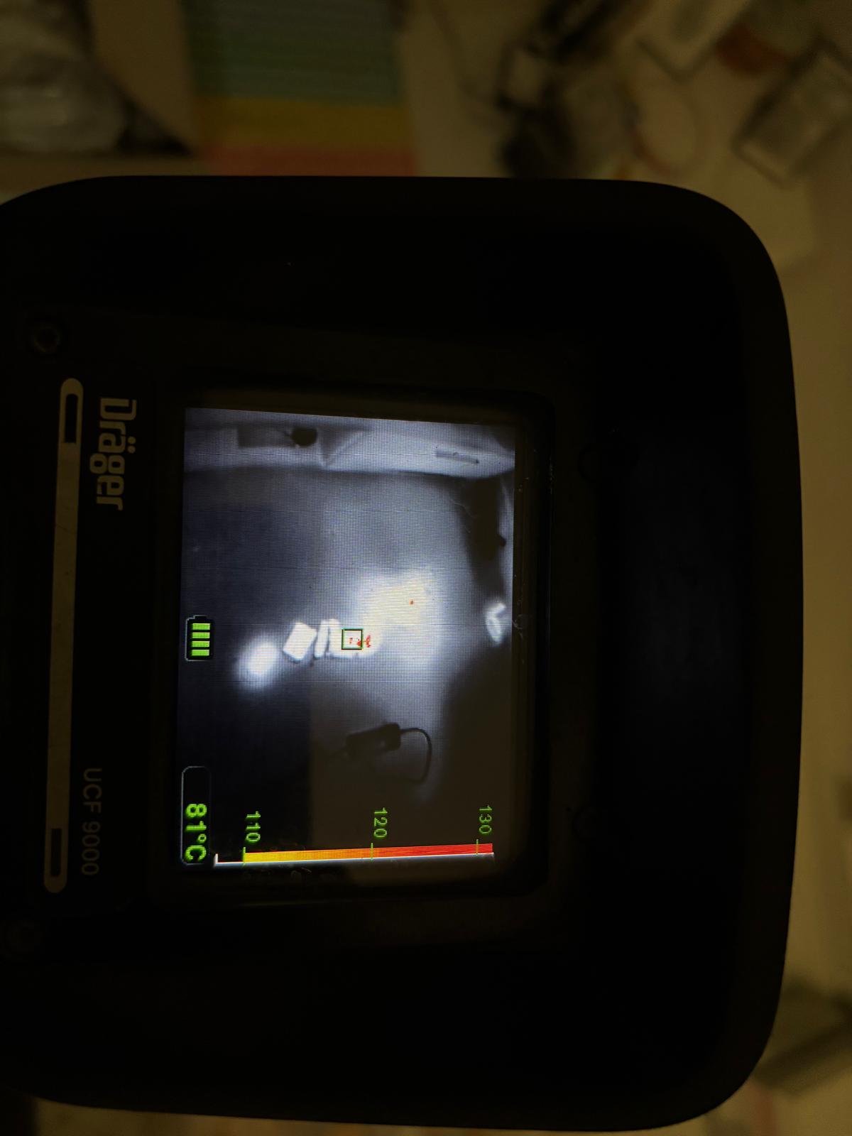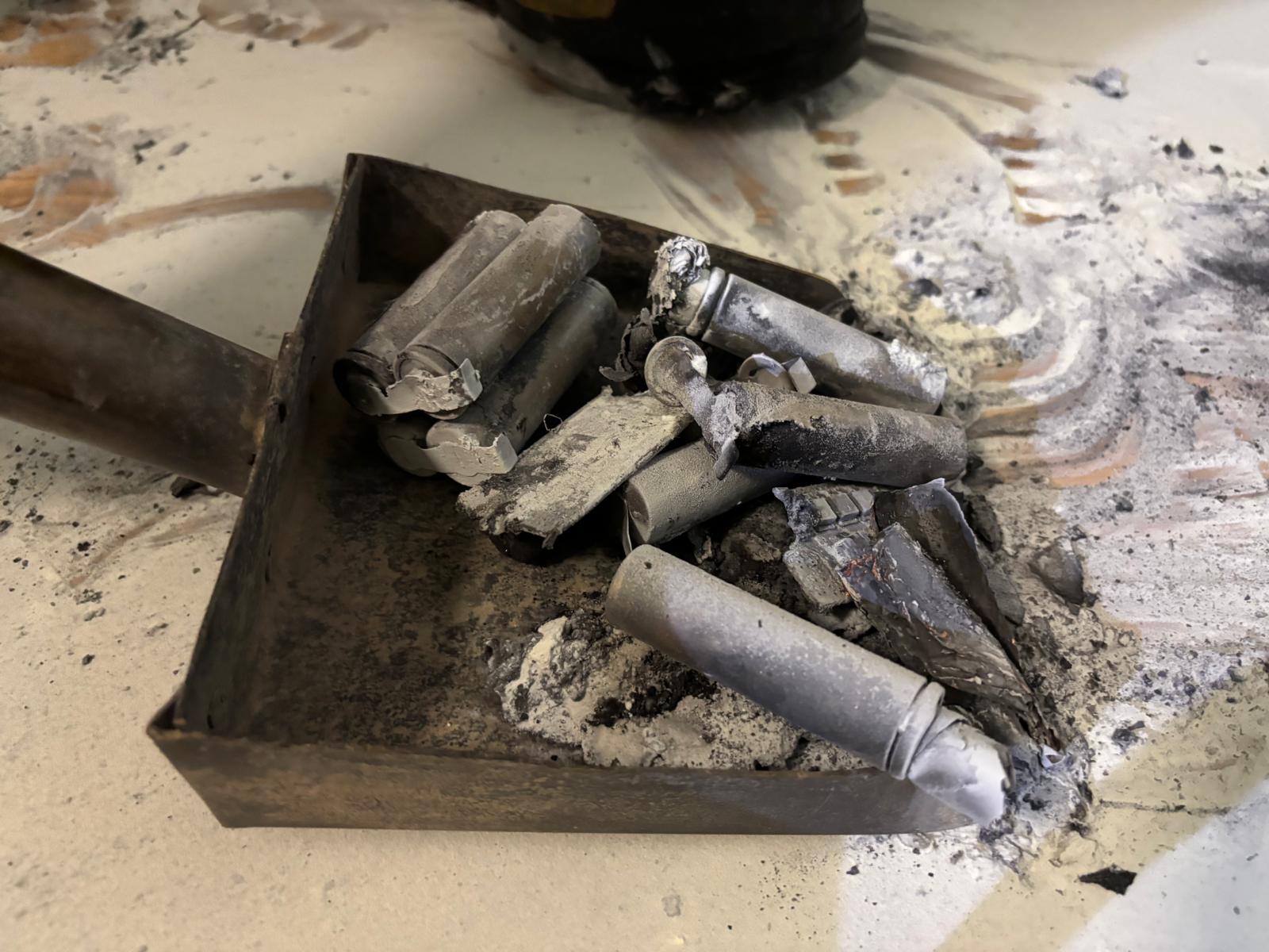 Strażacy ugasili pożar przy użyciu gaśnicy proszkowej i wynieśli sprzęt poza budynek. Dalsze działania polegały na kontroli temperatury baterii przy użyciu kamery termowizyjnej.