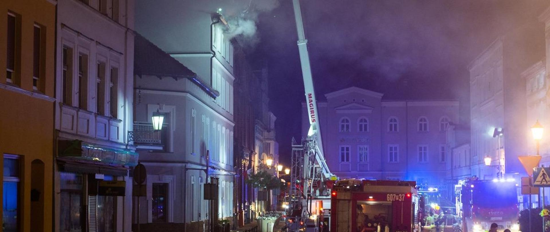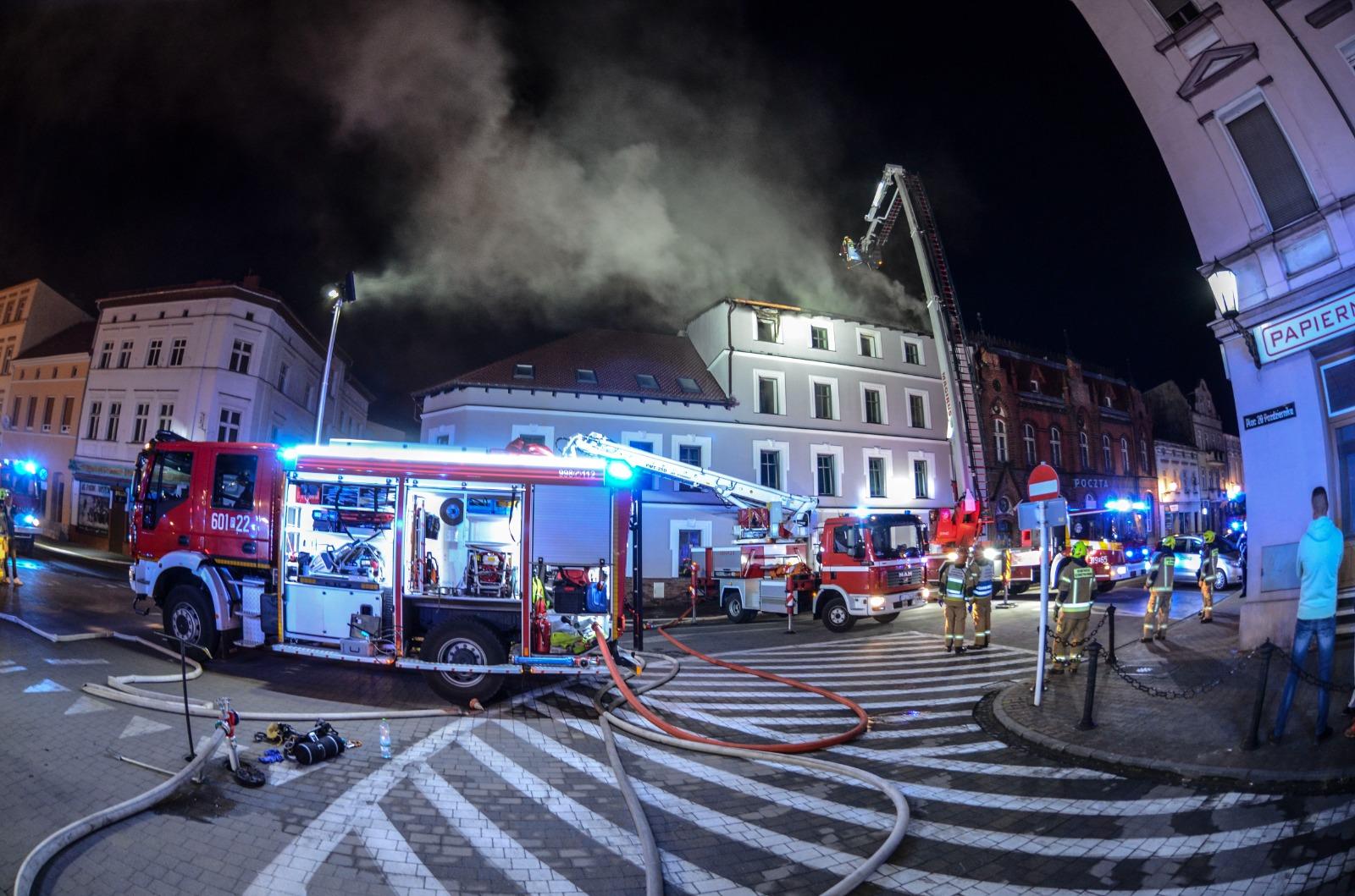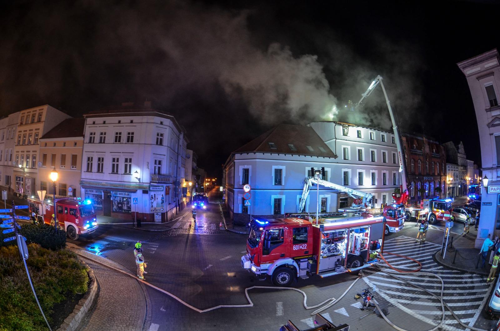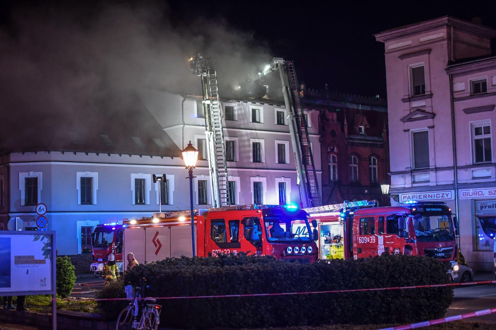 Kilkunastu godzinna akcja straży pożarnej i zaangażowane liczne siły i środki w pożarze hotelu Metropol w Śremie.