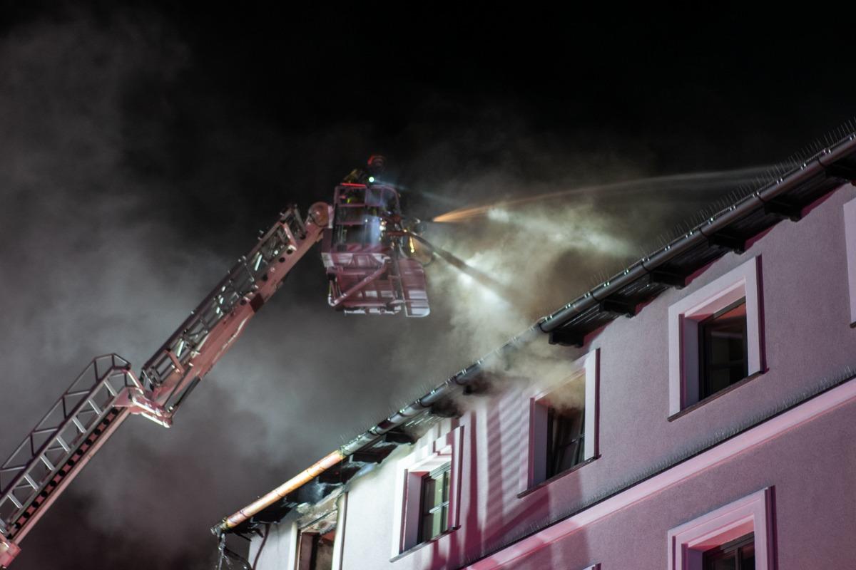 Działania polegały na zabezpieczeniu miejsca zdarzenia oraz próbie zlokalizowania pożaru. Rota strażaków wyposażona w sprzęt ochrony układu oddechowego weszła do budynku i ewakuowała mężczyznę znajdującego się na pierwszym piętrze w pokoju hotelowym. W pierwszej fazie pożaru podano dwa prądy gaśnicze w natarciu na palący się dach. Przeszukano wszystkie pokoje pod kątem przebywania w nich lokatorów. Nie znaleziono w nich żadnych osób. Przed przybyciem jednostek ochrony przeciwpożarowej z hotelu ewakuowało się 5 osób.