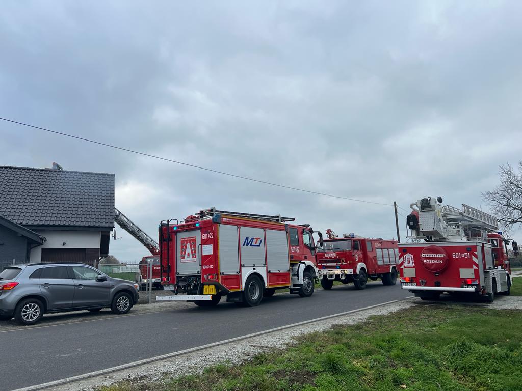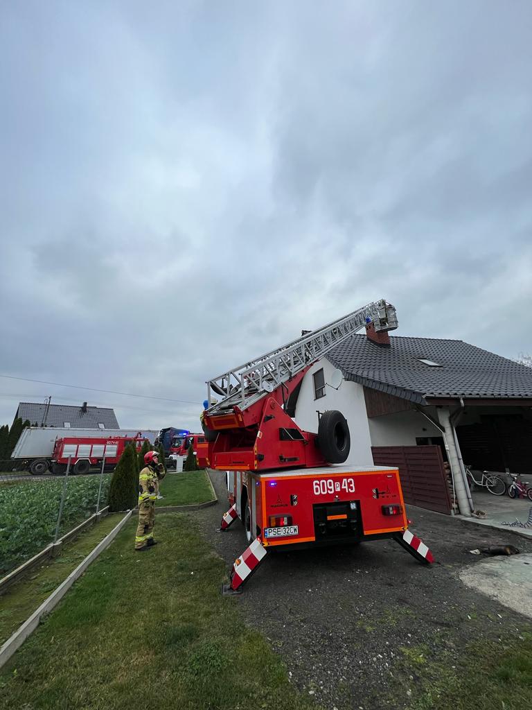 Po przybyciu na miejsce zadysponowanych sił i środków oraz rozpoznaniu ustalono, że z komina budynku jednorodzinnego występuje silne zadymienie oraz ogień a mieszkaniec budynku znajduje się na zewnątrz. Działania JOP polegały na zabezpieczeniu miejsca zdarzenia, ratownicy zabezpieczeni w OUO oraz sprzęt do ratownictwa wysokościowewgo z kosza drabiny mechanicznej przystapili do gaszenia pożaru sadzy w kominie a nastepnie komin został przeczyszczony z zalegającej wewnątrz sadzy. Po zakończonych działaniach gaśniczych sprawdzono pomieszczenia przy pomocy detektora wielogazowego - nieprawidłowości nie stwierdzono. Kolejną czynnością było sprawdzenie pomieszczeń przy pomocy kamery termowizyjnej a szczególnie okolic przewodu kominowego - nie stwierdzono nieprawidłowości. Udział: 5 zastępów 15 ratowników.