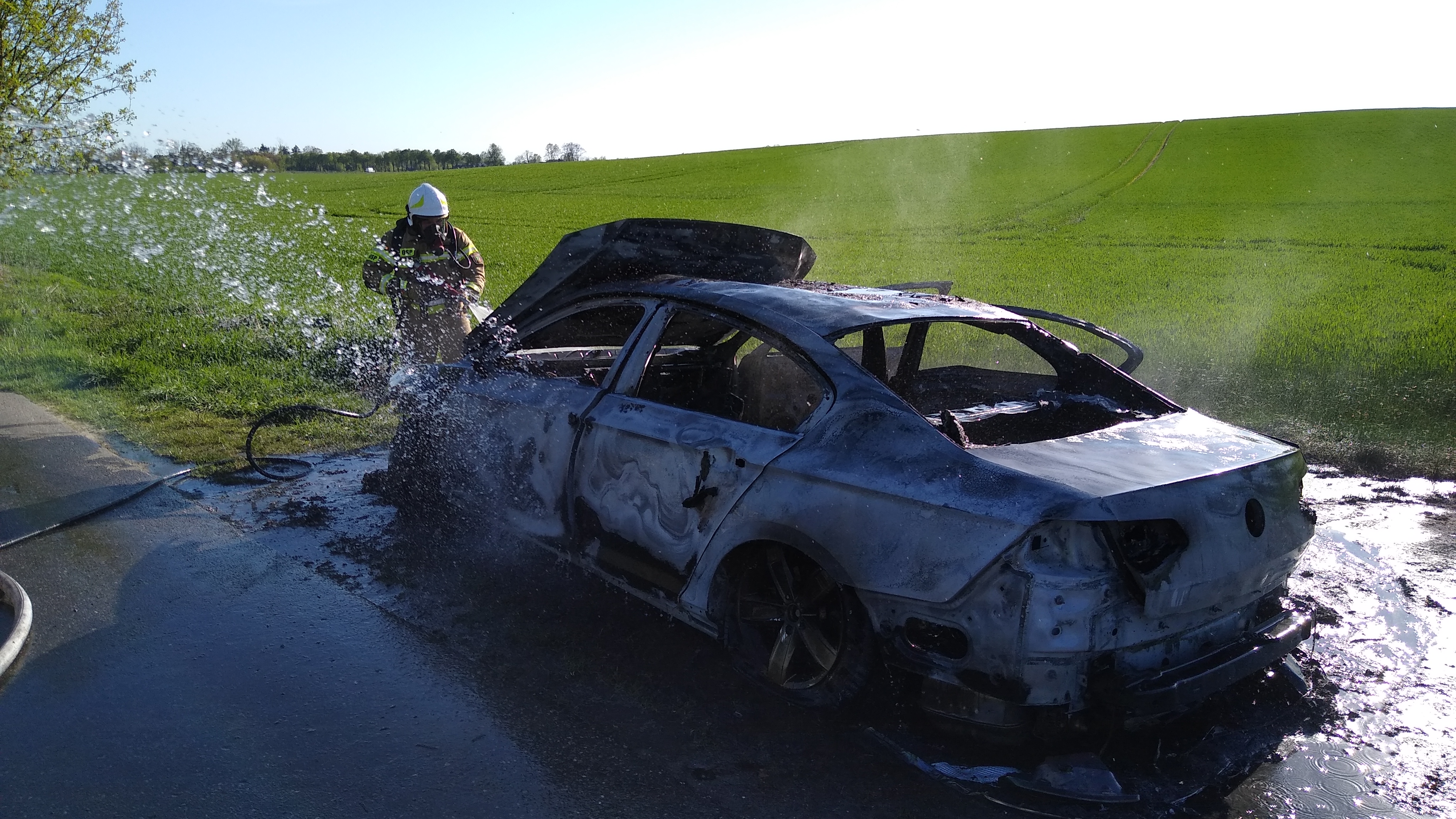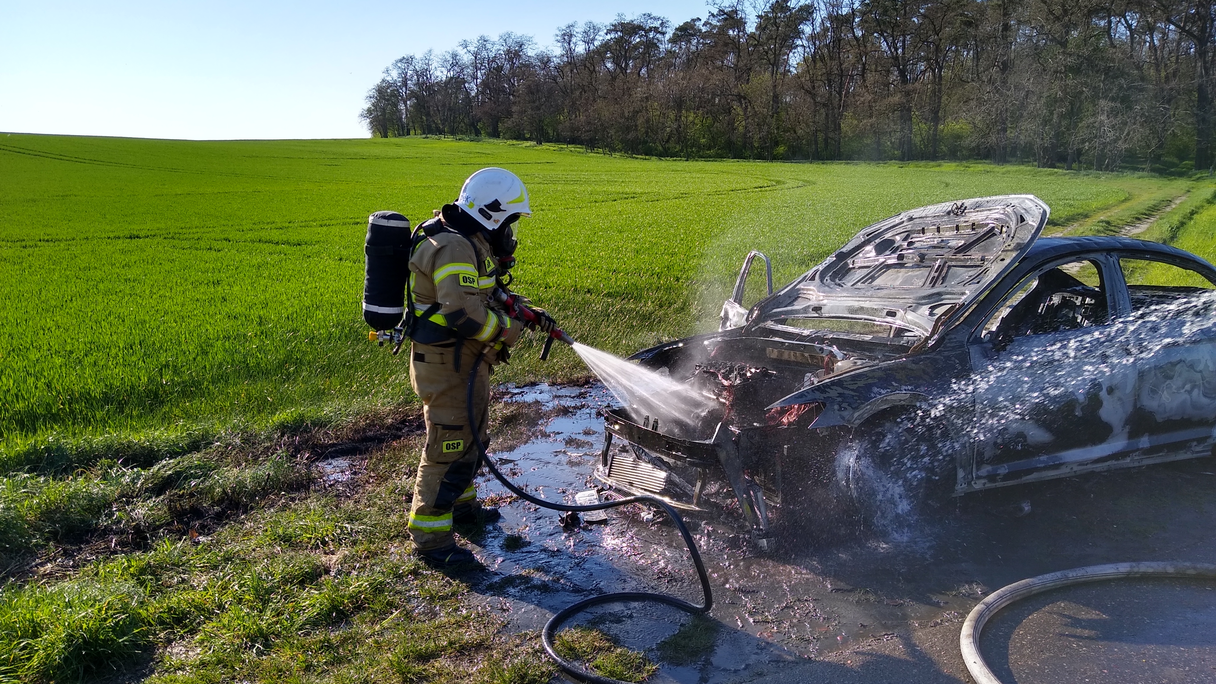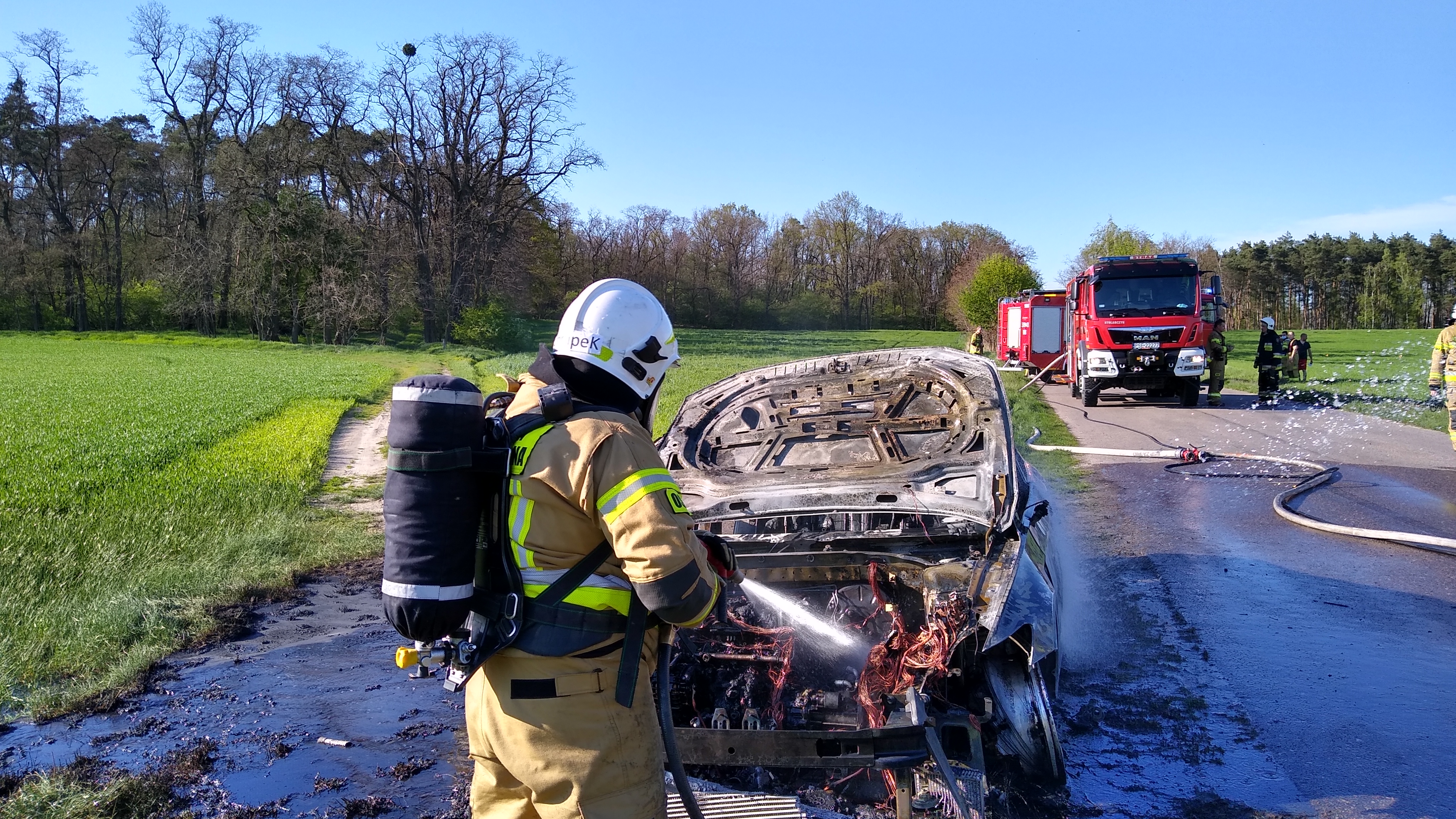 Po przybyciu zadysponowanych zastępów i rozpoznaniu ustalono, że pali się samochód w miejscowości Ludwikowo, pojazd poza jezdnią, brak osób poszkodowanych, kierowca podjął próbę gaszenia pojazdu gaśnicą przed przybyciem straży pożarnej. Działania JOP polegały na podaniu jednego prądy gaśniczego wody przez ratownika zabezpieczonego w sprzęt OUO na palący się samochód osobowy. Po ugaszeniu palacego się pojazdu ratownicy sprawdzili przy pomocy kamery termowizyjnej celem sprawdzenia ewentualnych podwyższonych temperatur w spalonym pojeździe - nie stwierdzono zagrożenia. Udział 4 zastępy 21 ratowników.