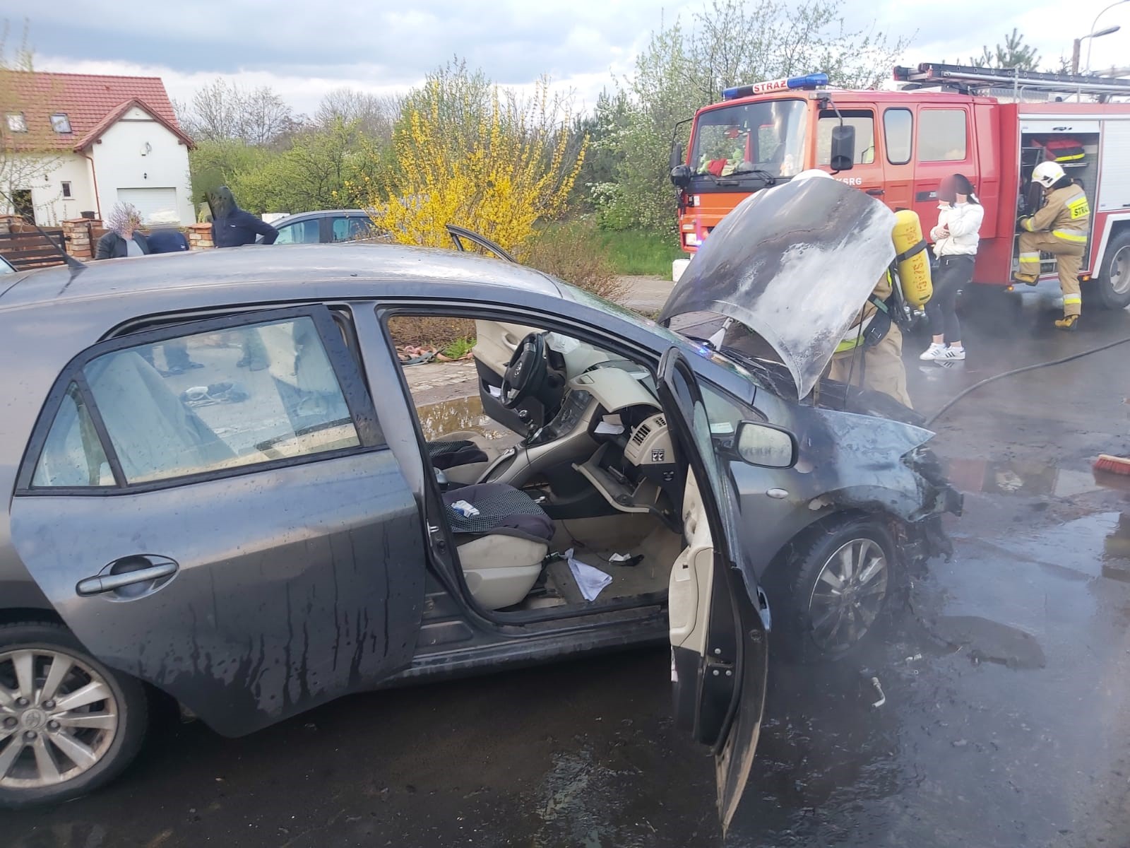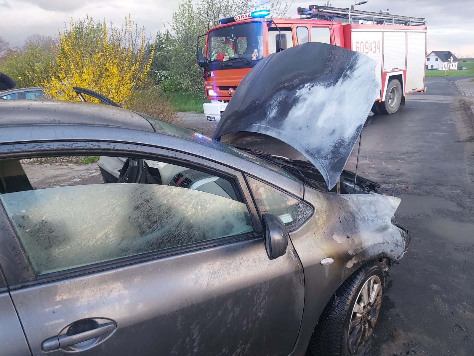 Po przybyciu na miejsce zdarzenia zadysponowanych sił i środków w wyniku rozpoznania ustalono, że pali się samochód osobowy. Działania JOP polegały na zabezpieczeniu miejsca zdarzenia oraz podaniu jednego prądu wody na palący się samochód przez ratowników zabezpieczonych w sprzęt OUO. Przed przybyciem straży pożarnej kierowca podjął próbę gaszenia pojadu przy pomocy gaśnicy proszkowej. Po ugaszeniu pojazdu sprawdzono miejsce pożaru kamerą termowizyjną - brak podwyższonej temperatury. Udział 2 zastępy 11 ratowników.