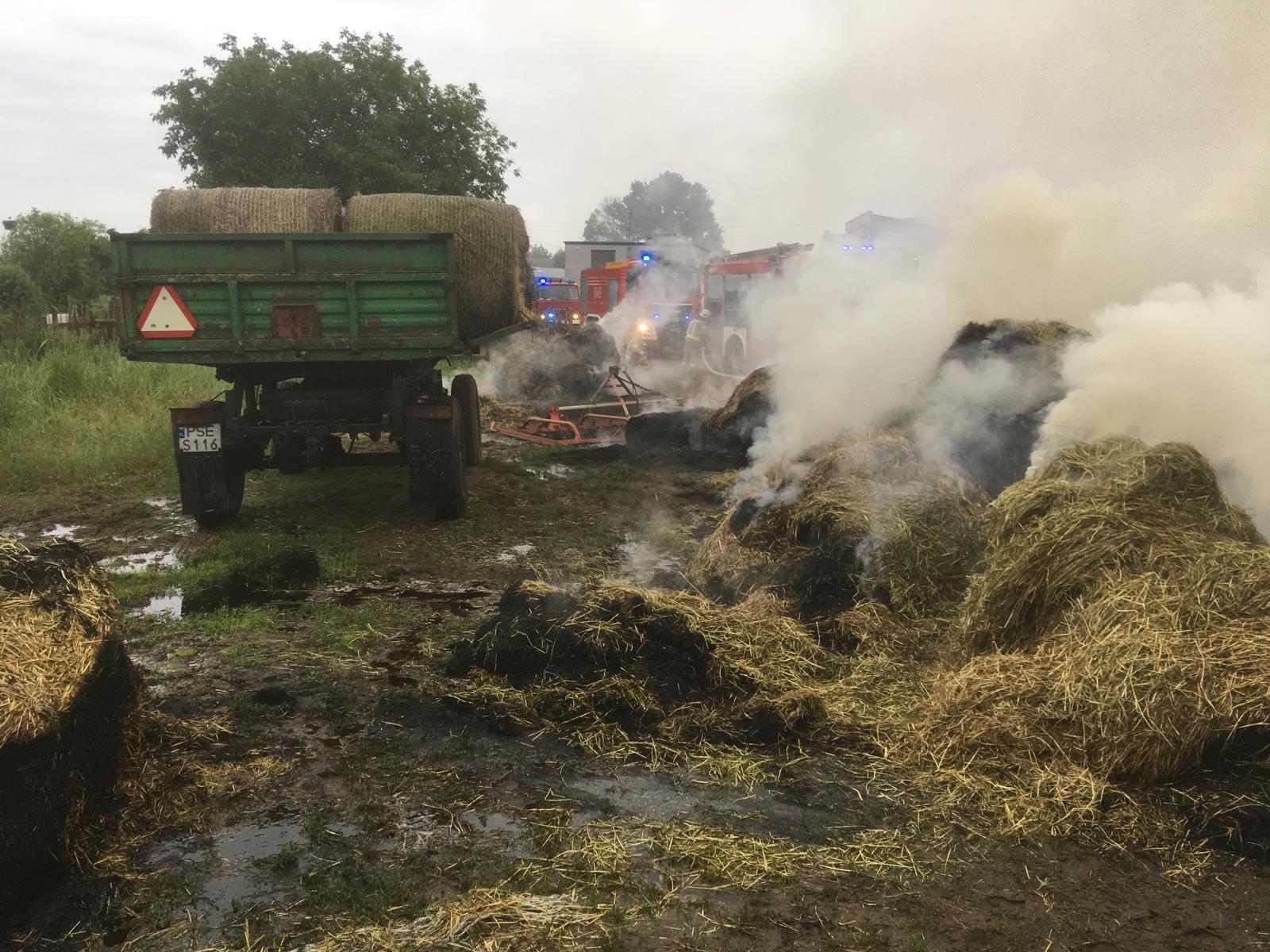 Pod wskazany adres niezwłocznie zadysponowano zastęp z JRG Śrem oraz 3 zastępy OSP z gminy Śrem. Po przybyciu na miejsce ustalono, że doszło do pożaru kilkudziesięciu balotów słomy w hali zadaszonej plandeką. Strażacy podali 3 prądy gaśnicze w natarciu na pożar. Dogaszanie trwało kilka godzin a ostateczne straty to 40 szt. spalonych balotów słomy.