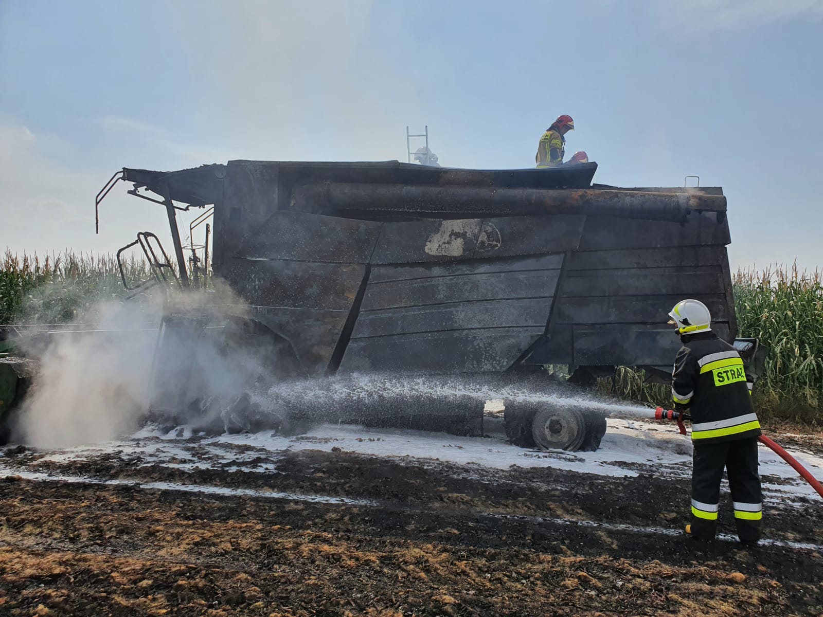 O godzinie 15:17 Stanowisko Kierowania Komendanta Powiatowego Państwowej Straży Pożarnej w Śremie przyjęło zgłoszenie o pożarze kombajnu znajdującego się na polu w miejscowości Mełpin.