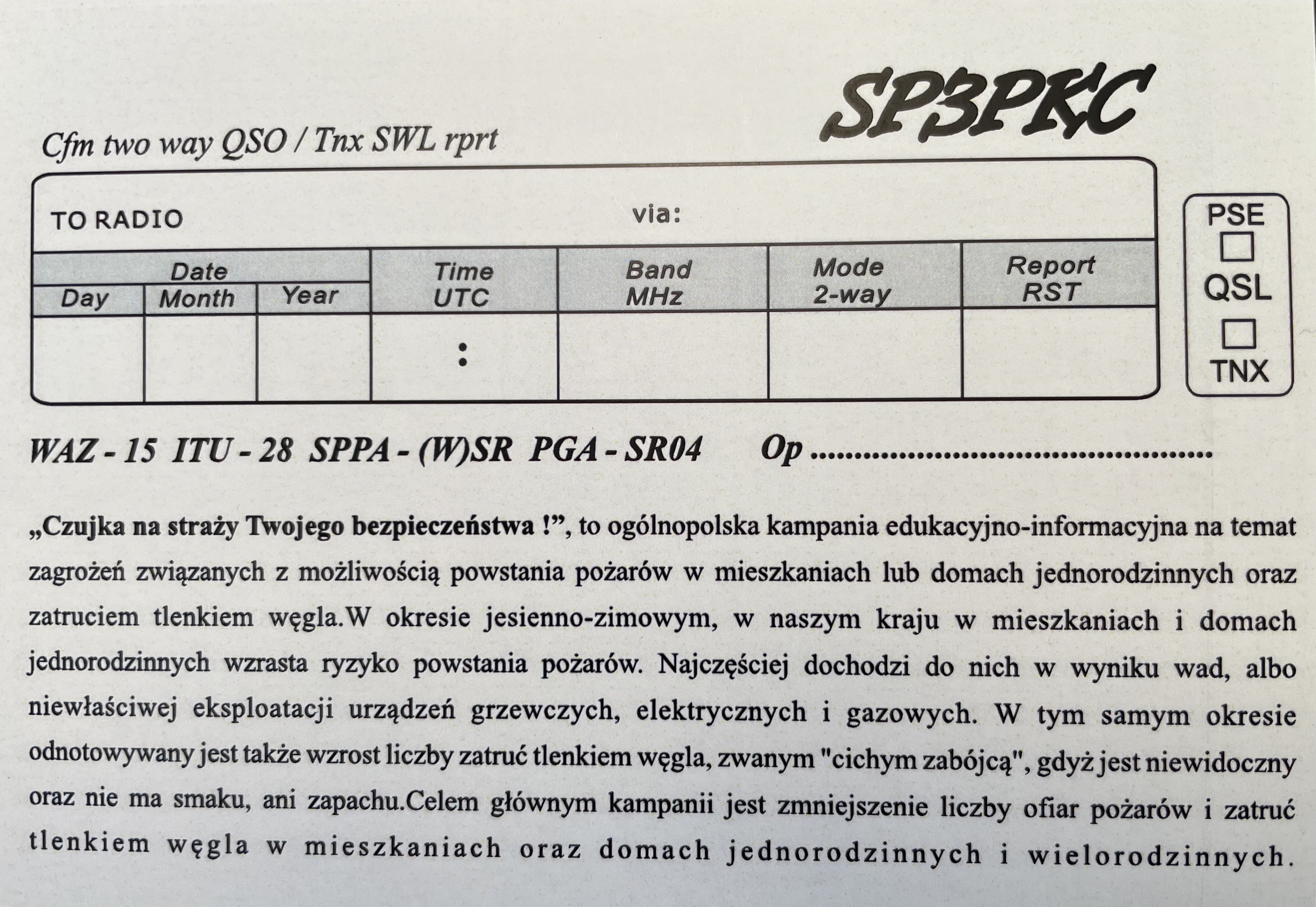 Czynności opisane wyżej oraz inne dane potwierdzające łączność nanoszone są na kartę QSL. Wszystkie komunikaty przekazywane są fonią i co ciekawe i wyjątkowe również alfabetem Morse’a, więc są również odczytywane przez krótkofalowców nie znających języka polskiego.