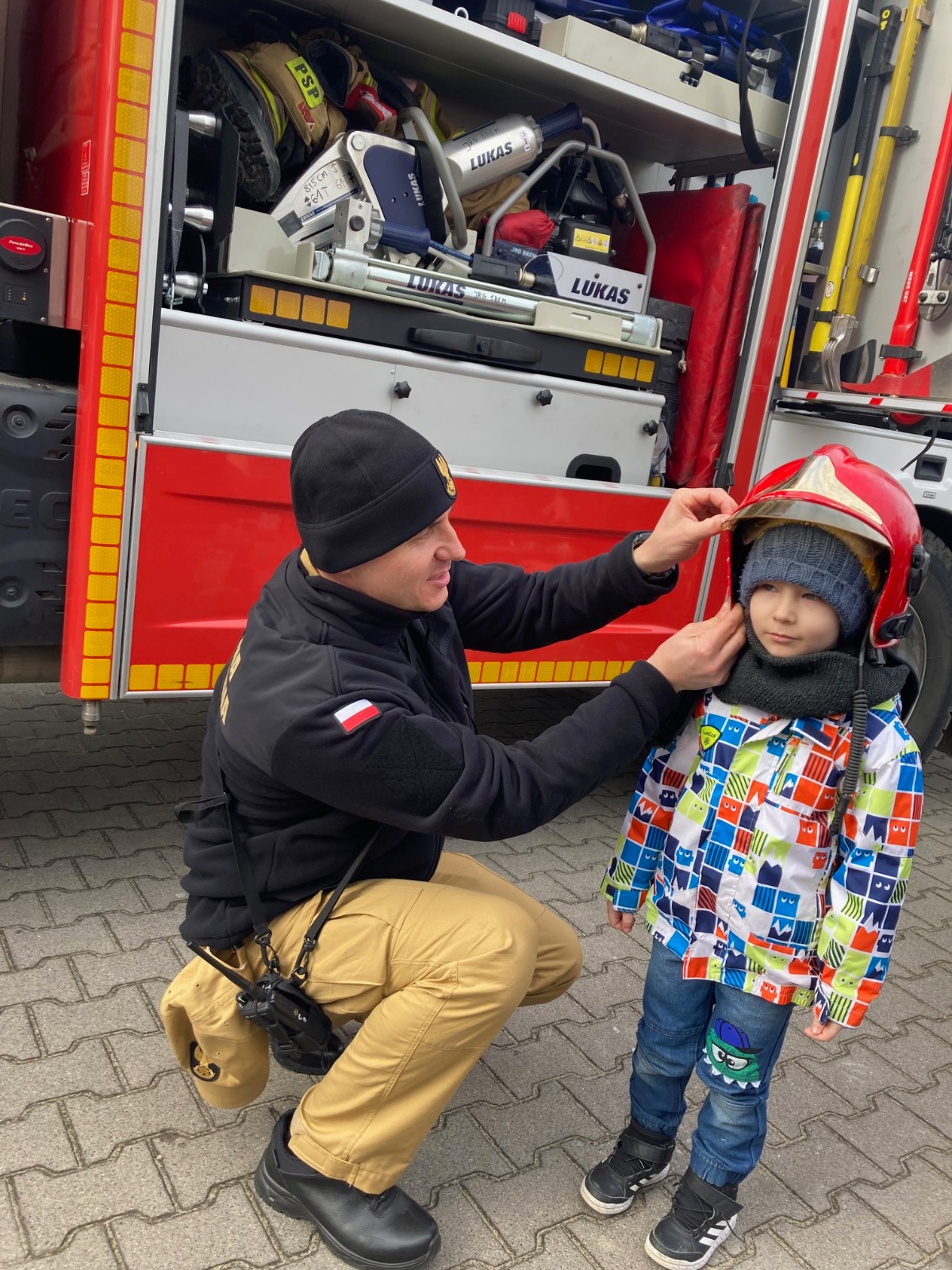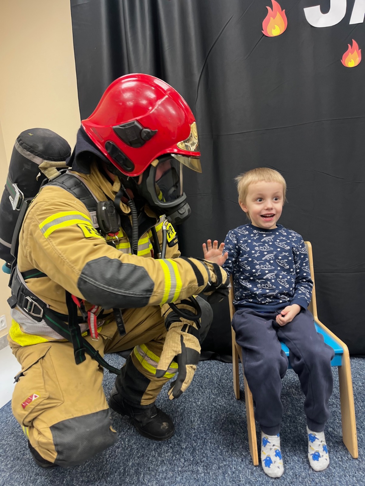 Do tego terapeutycznego oddziału uczęszczają dzieci z autyzmem, dla których spotkanie ze strażakiem było ogromnym marzeniem. Podczas naszej wizyty mogły one porozmawiać o pracy i codziennych obowiązkach funkcjonariuszy. Bardzo ciekawym doświadczeniem była dla nich rozmowa przez prawdziwą radiostację , przy pomocy której strażacy na co dzień porozumiewają się podczas akcji ratowniczo-gaśniczych. Była również okazja, aby dzieci przymierzyły prawdziwy hełm strażacki i zrobiły sobie pamiątkowe zdjęcie z funkcjonariuszami. Na koniec mogły one usiąść w aucie bojowym, zaznajomić się ze sprzętem znajdującym się na nim i użyć „na sucho” prądownicy do pożarów.