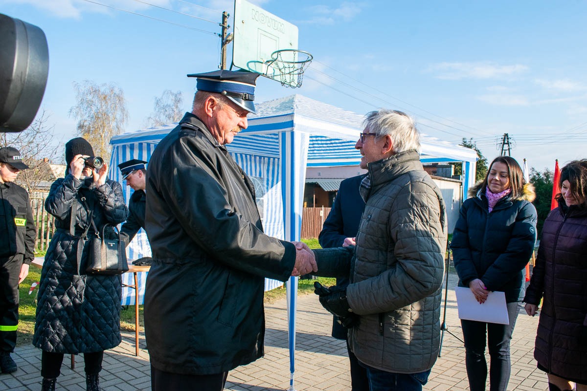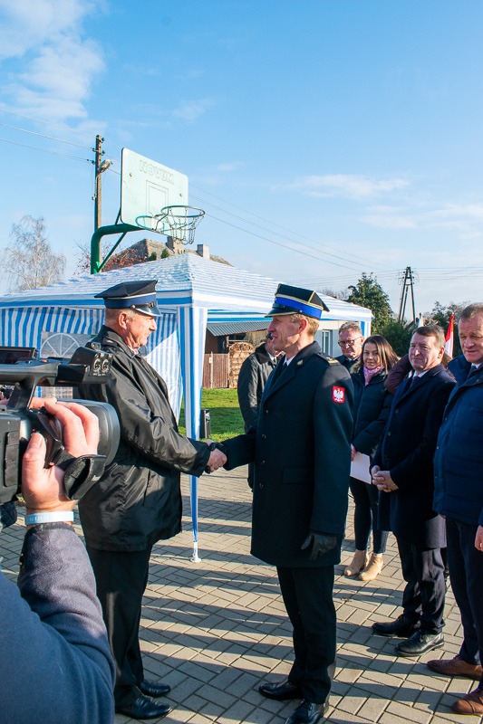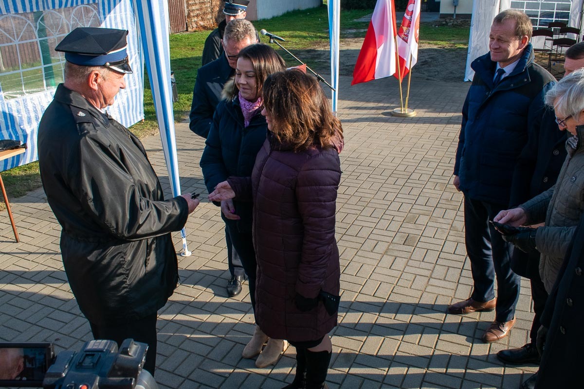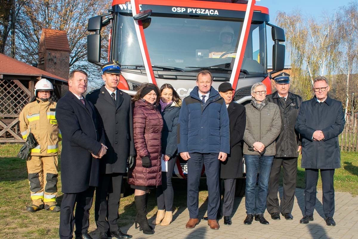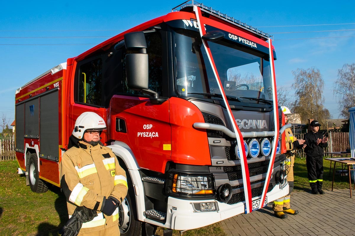 W kolejnej części uroczystości parlamentarzyści oraz zaproszeni gości uroczyście wręczyli kluczyki i dokumenty pojazdu Prezesowi Ochotniczej Straży Pożarnej w Pyszącej dh Markowi Pietrzakowi. Poświecenia pojazdu dokonał ks. Marian Binka.