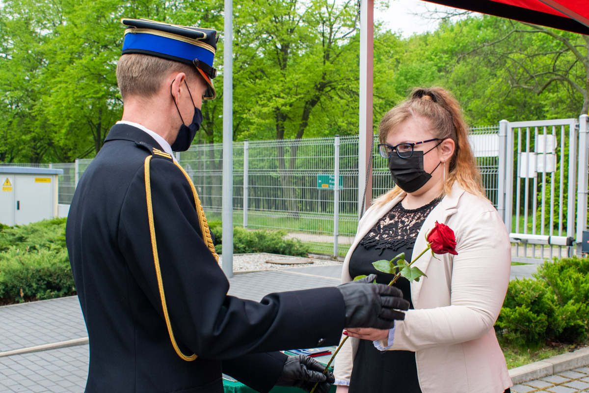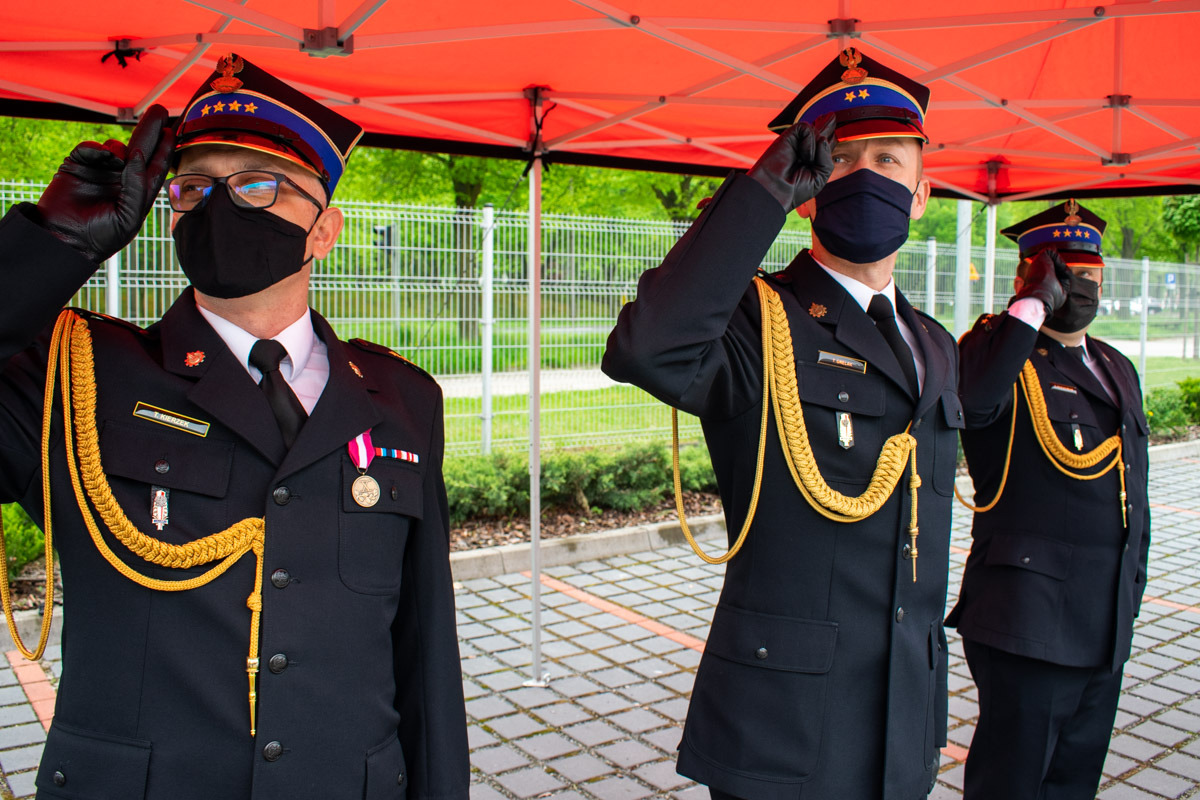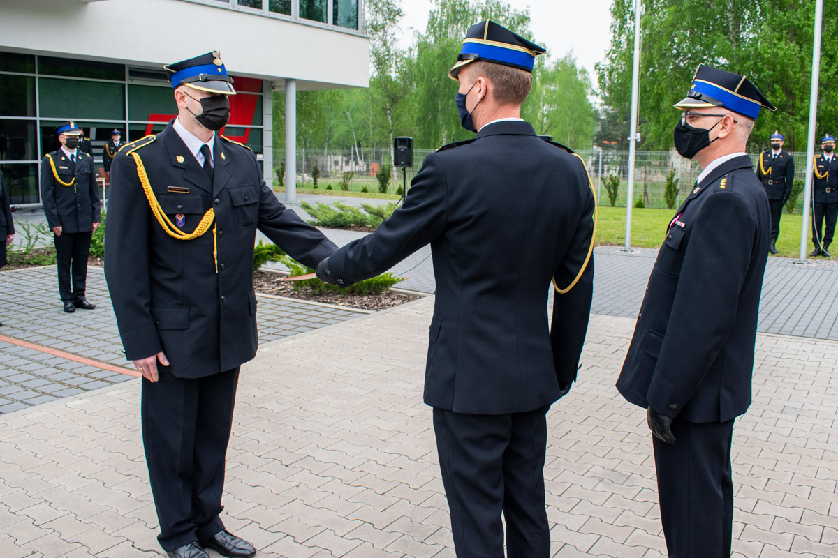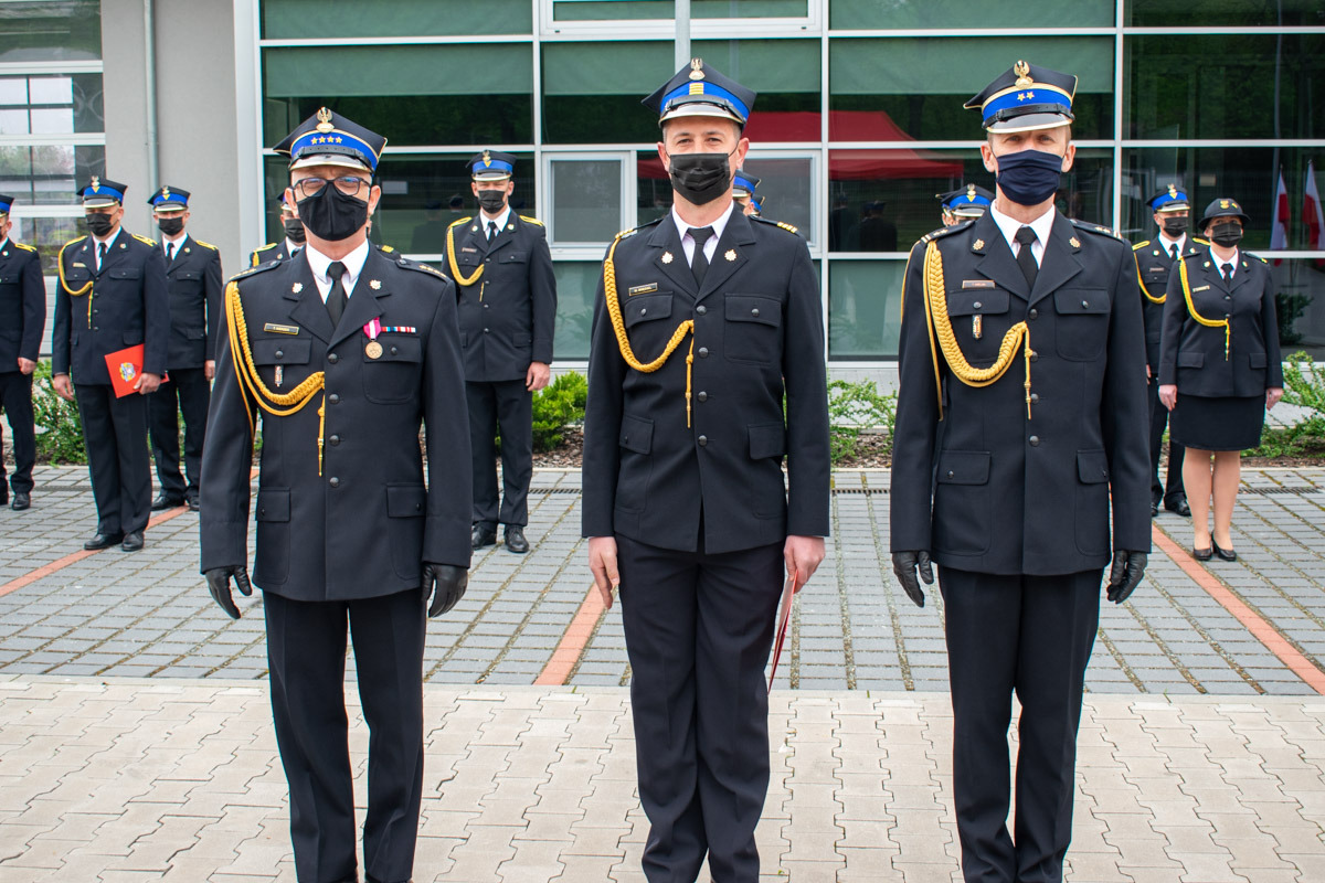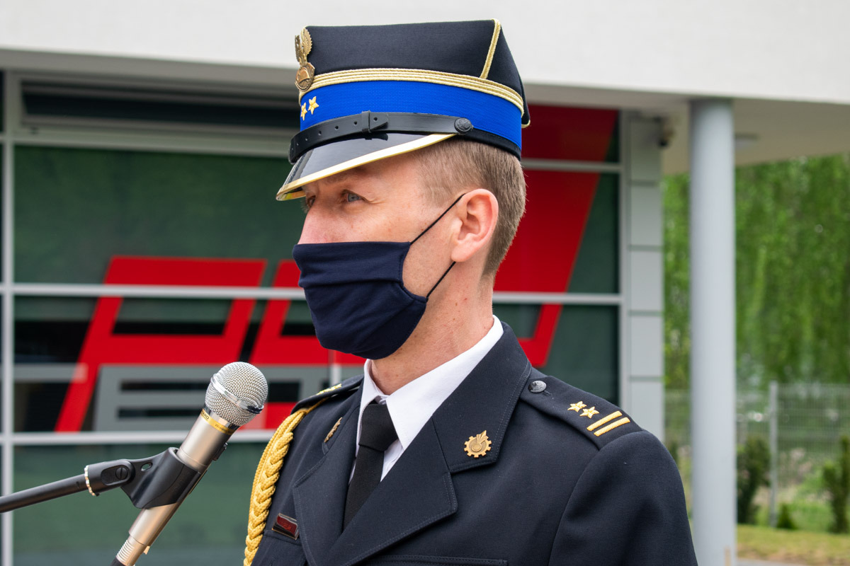 W kolejnej części uroczystości głos zabrał przedstawiciel Wielkopolskiego Komendanta Wojewódzkiego Państwowej Straży Pożarnej bryg. Tomasz Grelak. Na wstępie pogratulował odznaczonym, awansowanym i wyróżnionym funkcjonariuszom. Podkreślił jak ważną rolę spełniamy w walce z pandemią kierując słowa uznania i podziękowania w imieniu Wielkopolskiego Komendanta Wojewódzkiego nadbryg. Dariusza Matczaka jak również własnym dla strażaków i pracowników śremskiej komendy oraz druhów ochotników z terenu powiatu śremskiego. W swoim wystąpieniu zaznaczył jak dużo zadań realizujemy na tej płaszczyźnie i jaki to ma wpływ na bezpieczeństwo obywateli.
