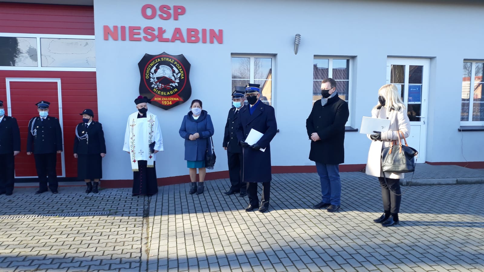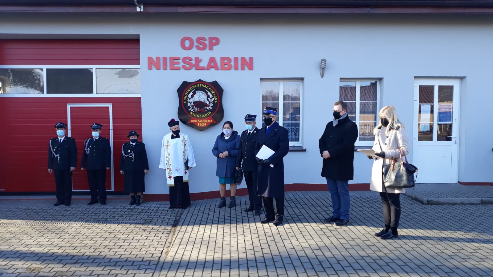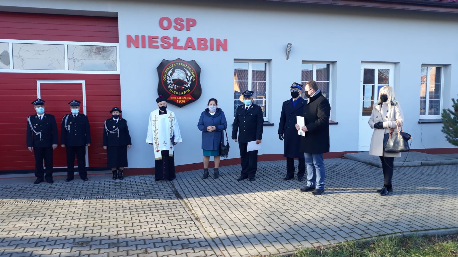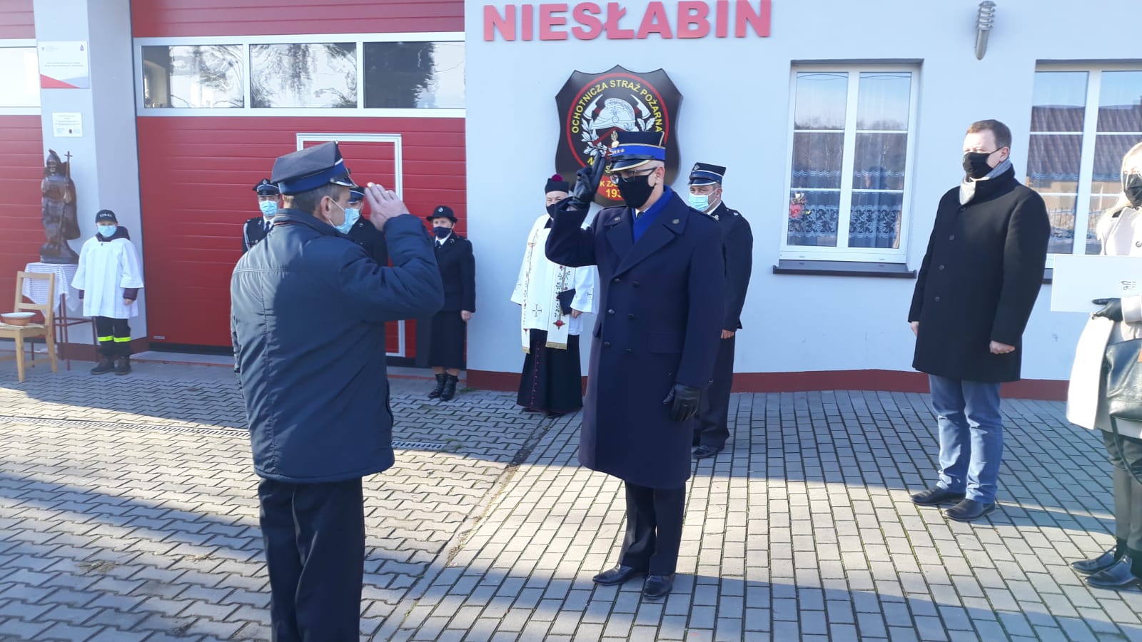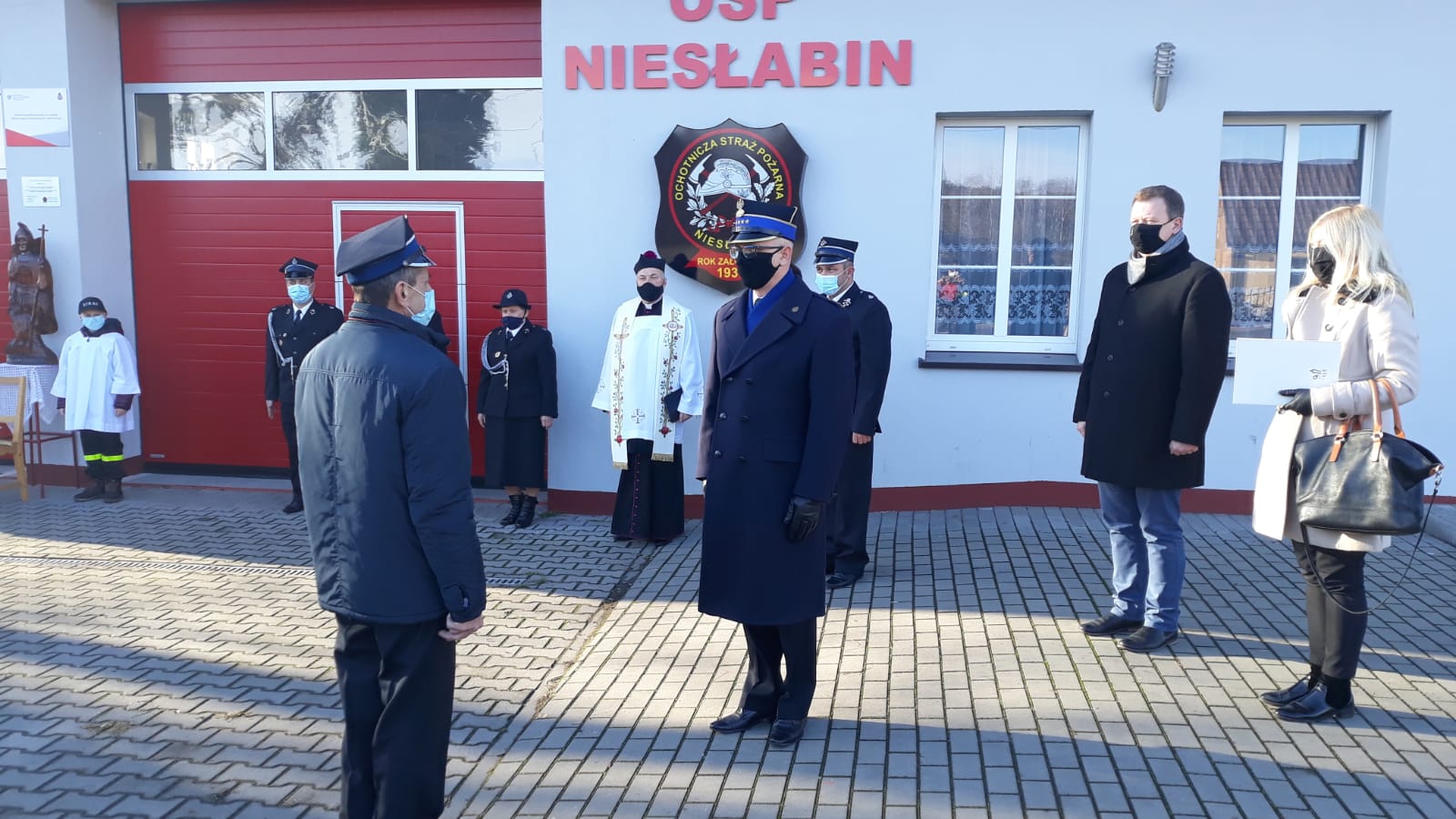 Przy okazji tego uroczystego apelu został poświęcony średni samochód ratowniczo gaśniczy przez księdza prałata Mariana Bruckiego, który podkreślił jak ważna jest społeczność strażacka, na której w każdej sytuacji można polegać. Uroczysty apel odbył się z zachowaniem reżimu sanitarnego z uwagi na panującą pandemię. Jednostce Ochotniczej Straży Pożarnej w Niesłabinie, życzymy samych pomyślności w strukturach krajowego systemu ratowniczo – gaśniczego.