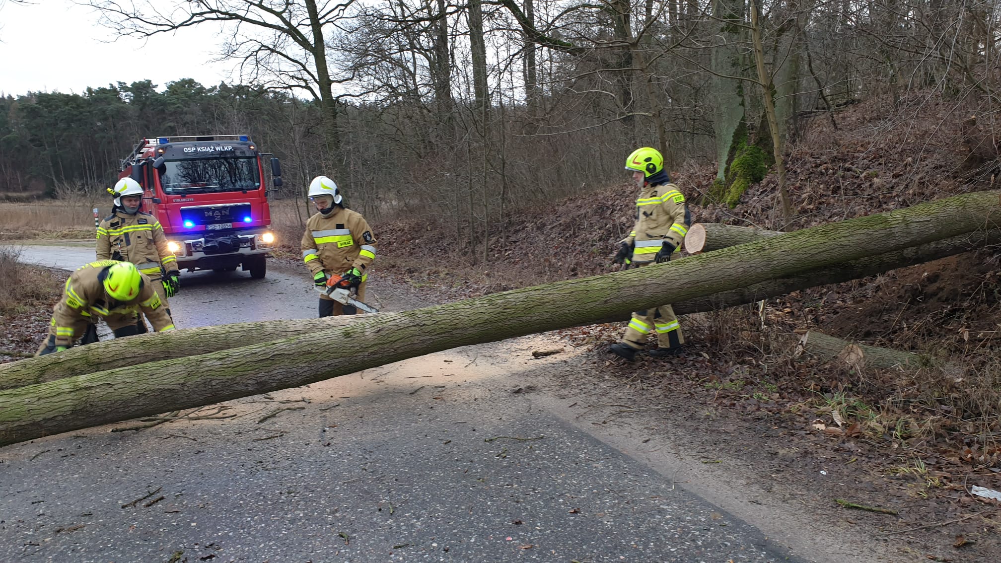 W te dni do wszystkich zdarzeń mających związek z porywistym wiatrem interweniowały jednostki z JRG w Śremie, OSP w Brodnicy, OSP w Chrząstowie, OSP w Dolsku, OSP w Ksiażu Wlkp., OSP w Niesłabinie, OSP w Pyszącej, OSP w Żabnie, OSP w Lubiatowie, OSP w Manieczkach, OSP w Mchach, OSP w Orkowie, OSP w Szołdrach, OSP w Śremie, OSP we Włościejewicach-Ługi OSP w Wyrzece.